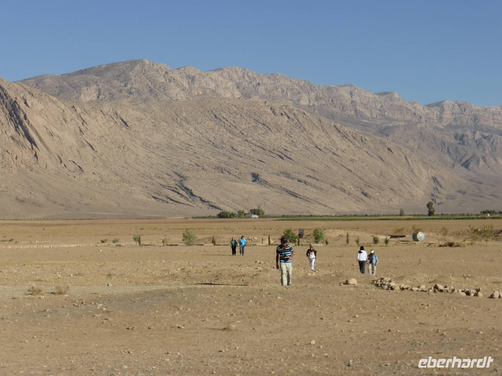 Von Yazd aus ging es anschließend in Richtung Kerman und wir hielten an einem Qanat, welches die Wasserversorgung über hunderte Kilometer sicherstellen kann. Viele dieser Anlagen werden auch heute noch genutzt, obwohl Wasserpumpen und moderne Wasserleitungen immer mehr die historischen Anlagen ersetzen. Bei unserer Besichtigung verteilten unser Reiseleiter Ali und unser Fahrer frisch gepressten Granatapfel-Saft, eine Delikatesse inmitten der Steinwüste. Am frühen Abend kamen wir dann in unserem Hotel in Kerman an und fuhren anschließend noch einmal zum Abendessen zum „Akhavan"- Hotel.