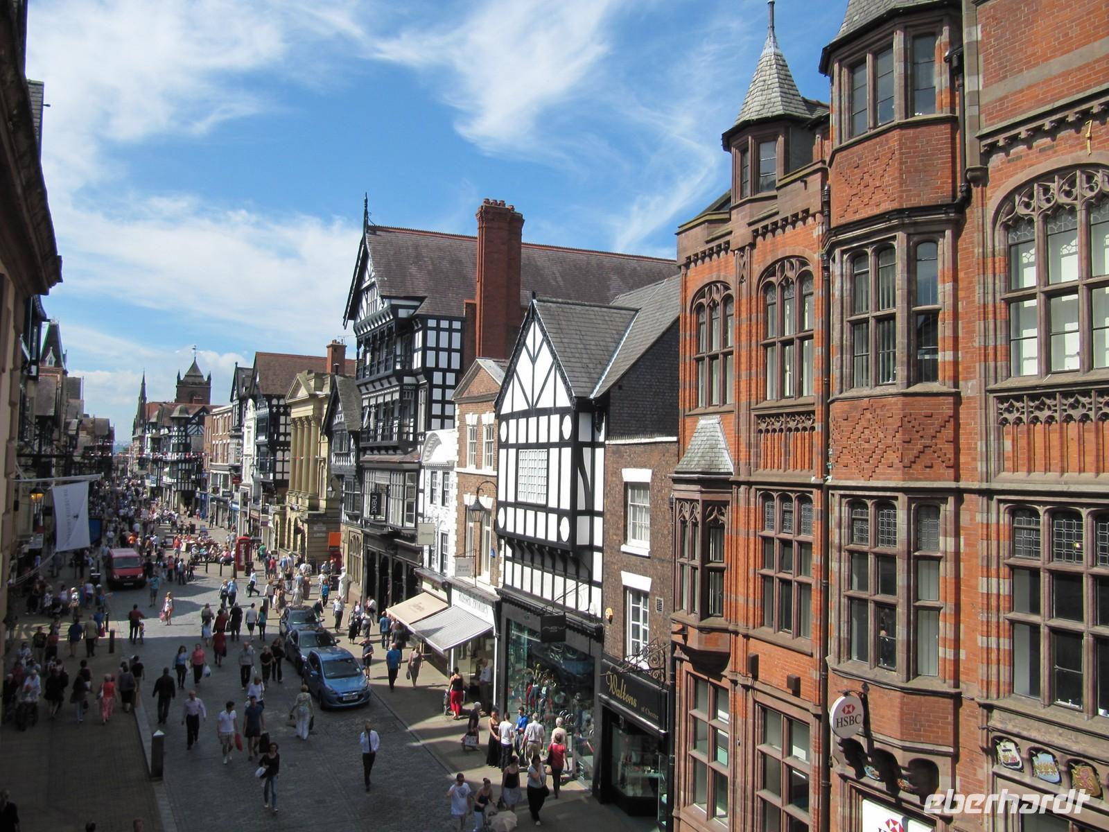 Wir bummelten durch die Stadt, bewunderten die für Chester typischen Rows, besuchten die Kathedrale und spazierten auf der Stadtmauer zurück zum Parkplatz.