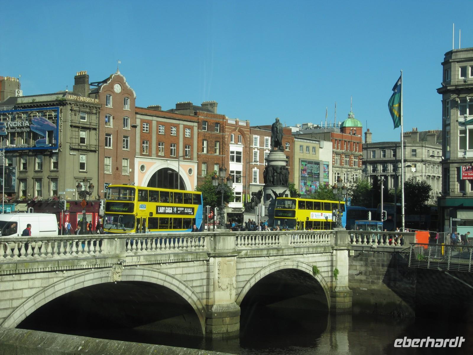 Auf der Insel Anglsey hatten wir noch Zeit, dem Ort Llanfairpwllgwyngyllgogerychwyrndrobwllllantysiliogogogoch mit dem längsten Namen der Welt einen Kurzbesuch abzustatten. Eine nette Dame hat uns den Namen vorgesagt, aber wiederholen kann man das wohl erst nach monatelangem Üben! Mit der Schnellfähre ging es zum Hafen Dublin und in wenigen Minuten hatten wir unser Hotel Custom House am Ufer der Liffey erreicht. Dort erwarteten uns schon die Fluggäste, die am Nachmittag aus Dresden und Leipzig über Frankfurt angekommen waren.