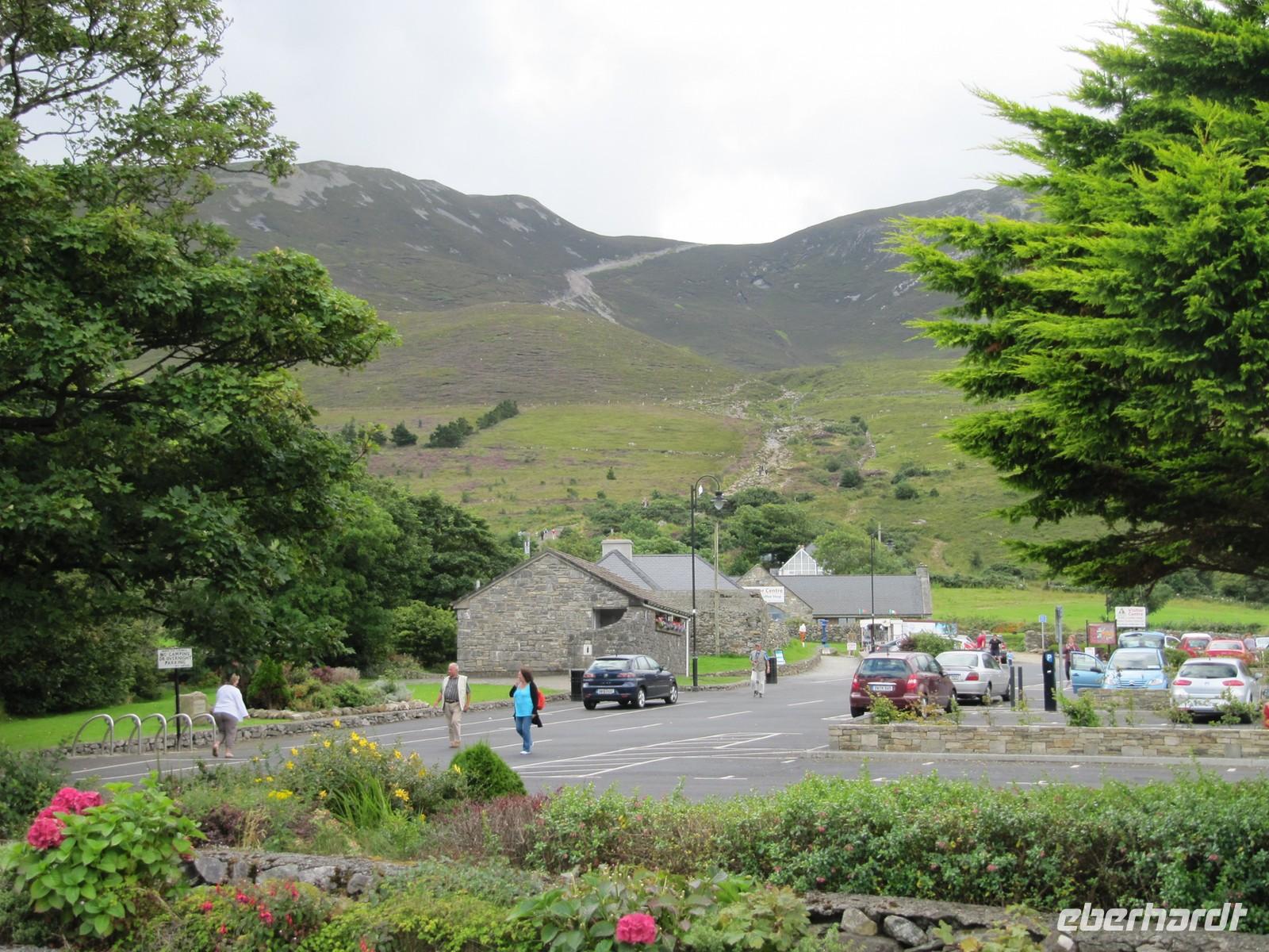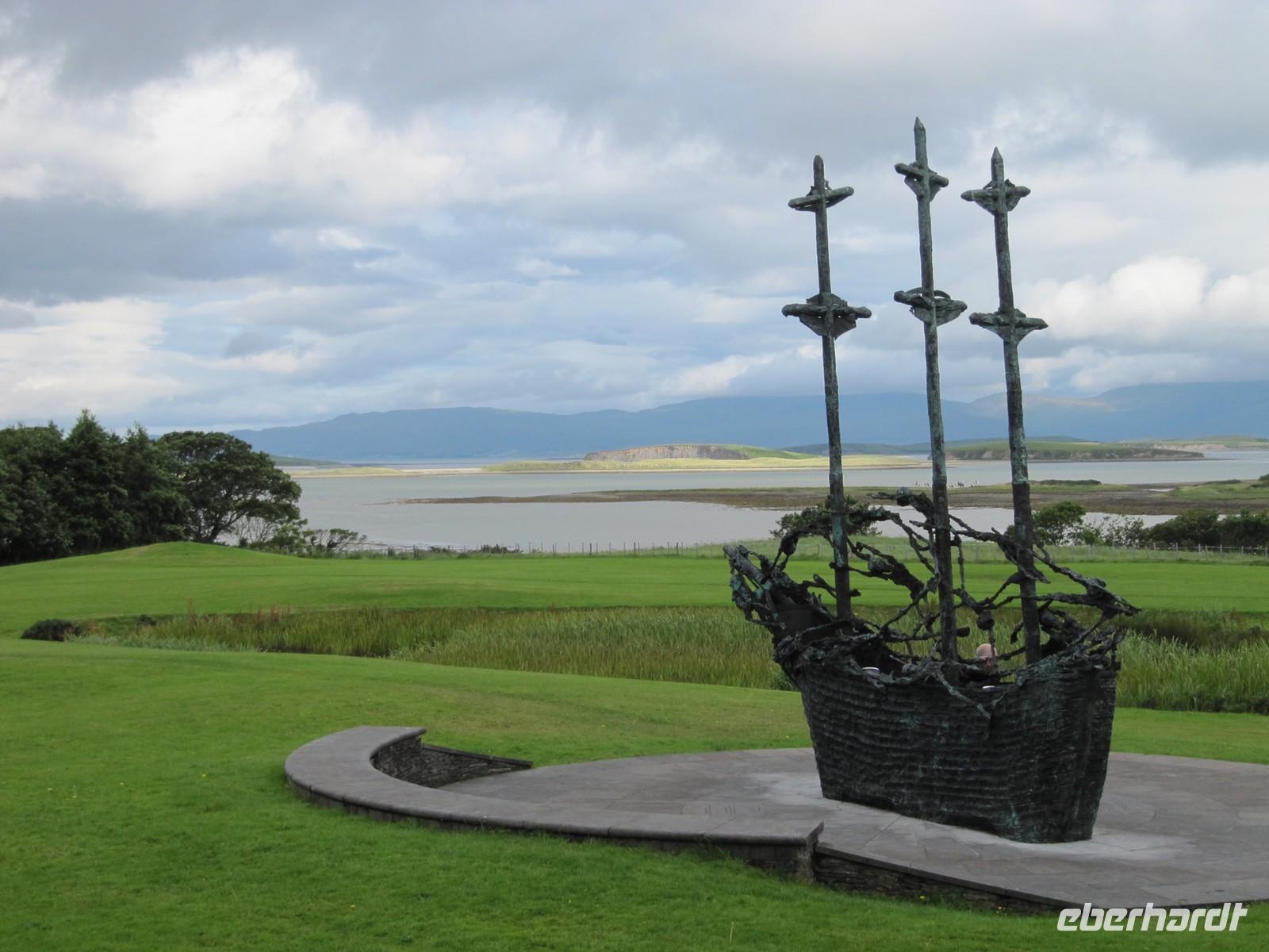 Tag 5 Heute führte uns die Fahrt weiter südlich durch Connacht zur Halbinsel Connemara. Zuerst besuchten wir Westport, eine der wenigen planmäßig angelegten Städte des Landes. Wir legten einen Fotostopp am Croagh Patrick, Irlands Heiligen Berg ein, wo sich auch das National Famine Memorial in Form eines Sargschiffes befindet. Dann ging es durch das Doo Lough Valley, auch Tal von Delphi genannt, vorbei an den Mwellrea Mountains. Hier halten sich in der Einsamkeit immer Angler auf, zum Angeln von Lachsen und Forellen. Auch Prinz Charles hat das schon getan.