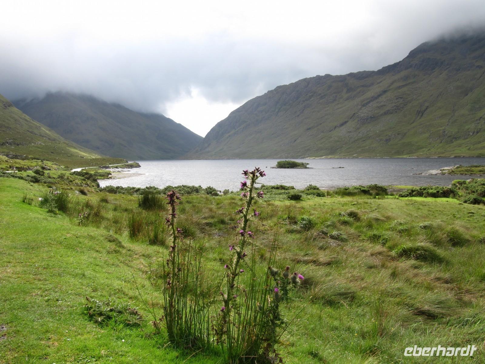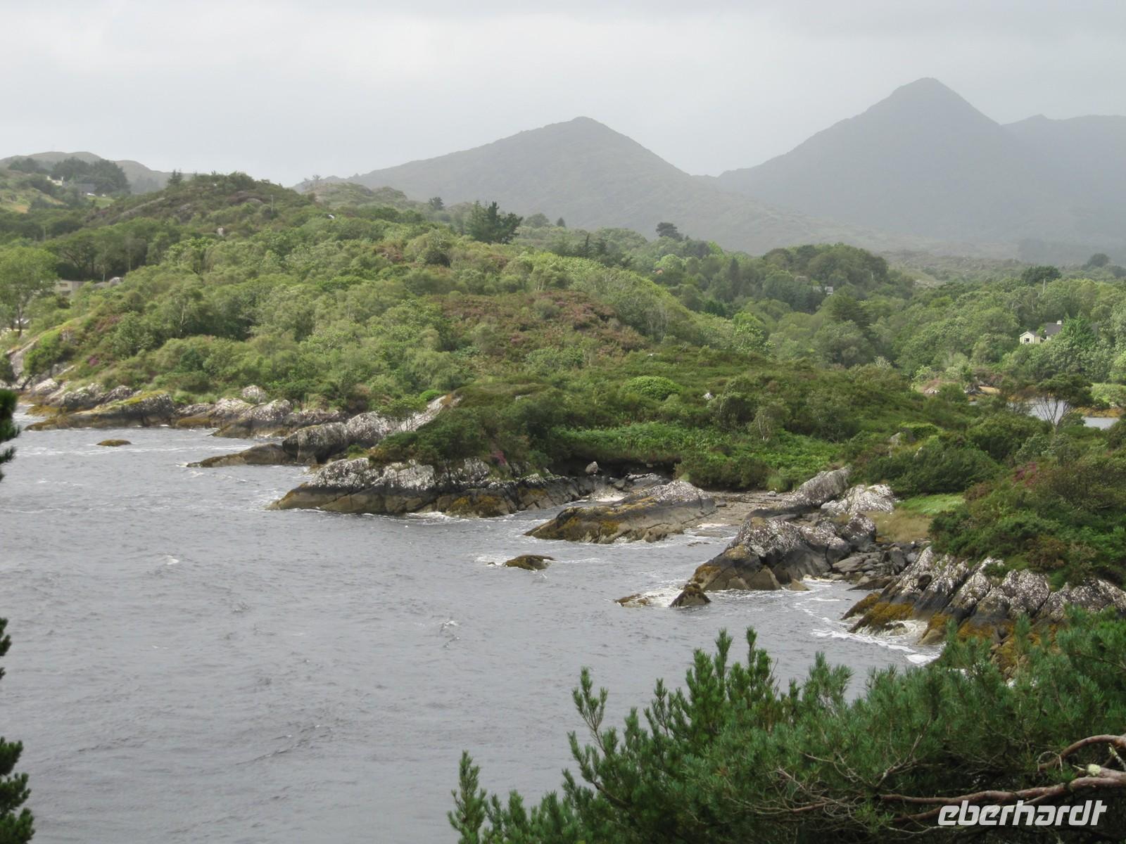 Nur die possierlichen Robben hatten sich auf höheren Felseninselchen etwas in Sicherheit gebracht. Ein Spaziergang führte uns durch den Garten mit seiner mediterran anmutenden Vegetation, die man hier sicher nicht erwartet hätte. Im Frühjahr ist es natürlich noch schöner, wenn es überall blüht, aber auch so zeigte sich eine bunte Blütenvielfalt. Wir hatten noch Zeit, dass kleine Örtchen Glengariff zu erkunden, Souvenirs zu kaufen oder ein Sandwich als Mittagsmahl zu verspeisen, ehe wir auf der Küstenstraße über den Ring of Beara zurück nach Killarney gefahren sind.