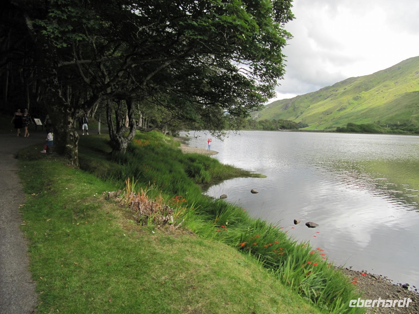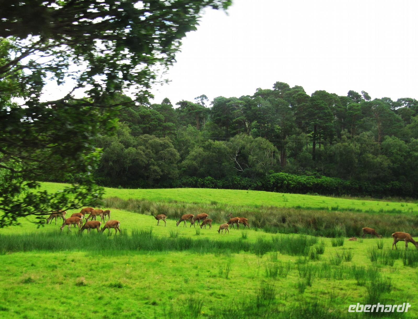 Wir statteten dem Muckross House & Garden einen Besuch ab. Auf den Wiesen vor dem Park äste eine Rotwildherde. Eigentlich bekommt man die Hirsche sehr selten zu Gesicht. Normalerweise sind die Tiere in den Bergen, aber hier schmeckt es nun mal besser.