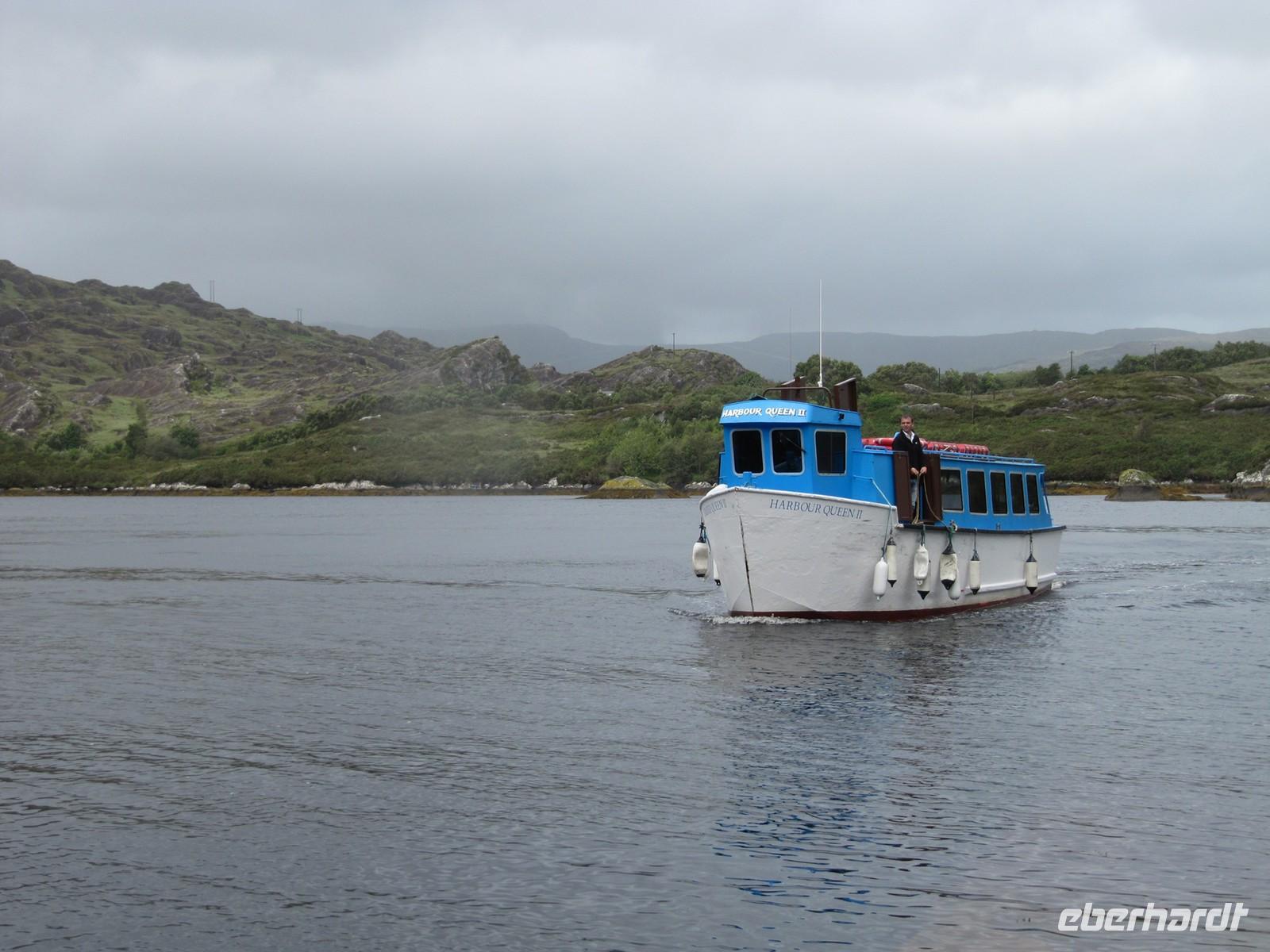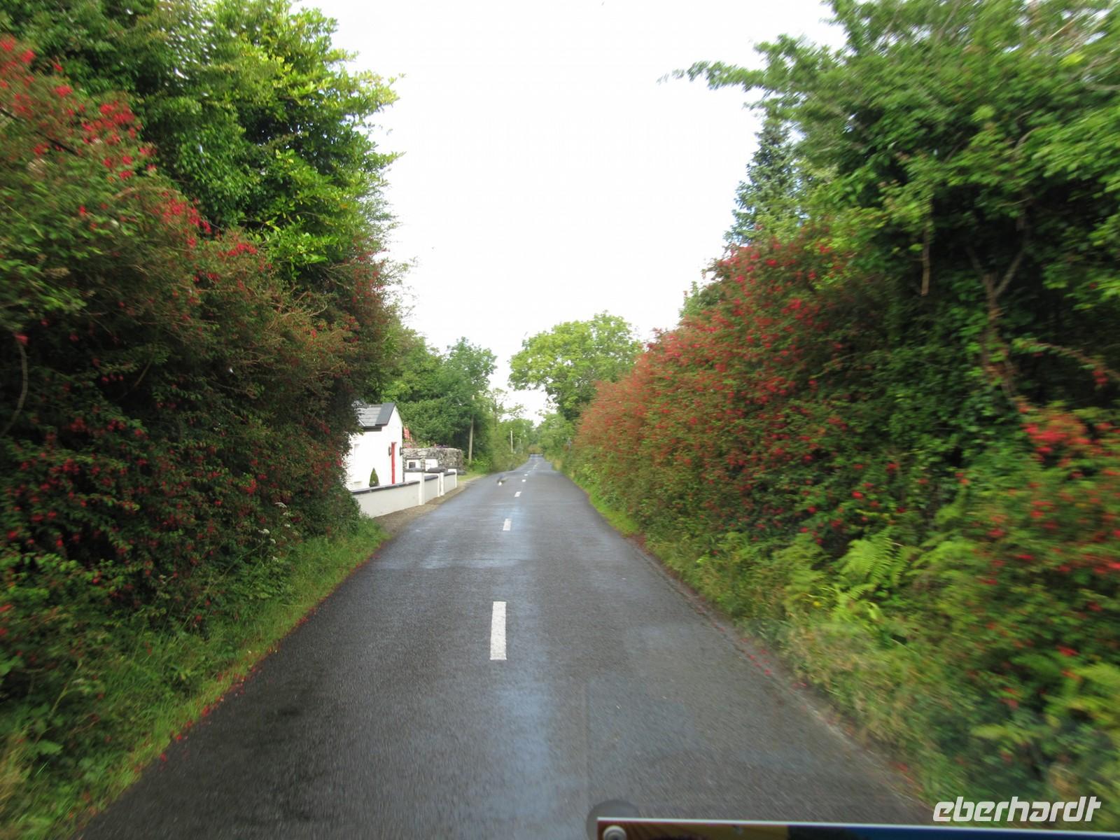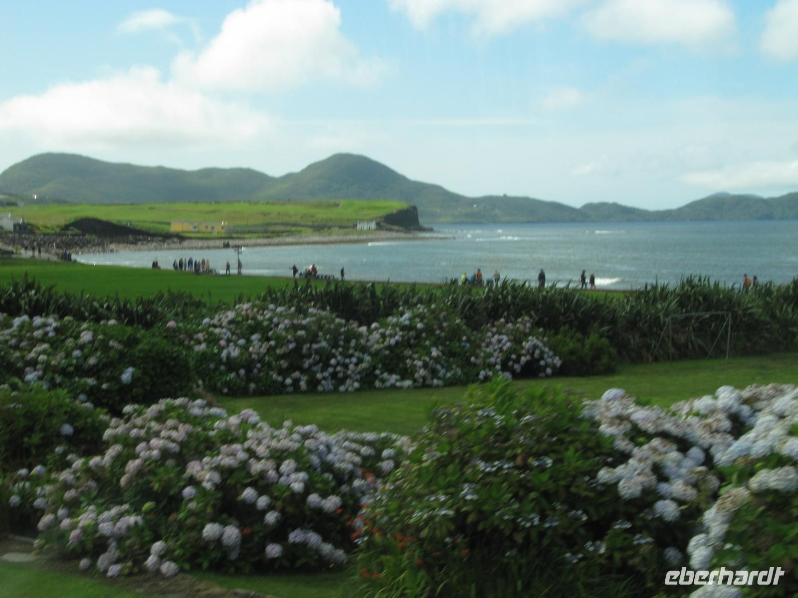 Tag 8 Wir wollten heute zu unserem fakultativen Ausflug zur Garinish Island, einer kleinen Insel in der Bantry Bay mit herrlicher Vegetation, starten. Doch es ist Hurrikanwarnung für Irland herausgegeben worden! Rücksprache mit der Agentur, Absprache mit den Gästen, aber alle wollen, dass wir fahren! Also starten wir, und der Regen hört doch tatsächlich auf.