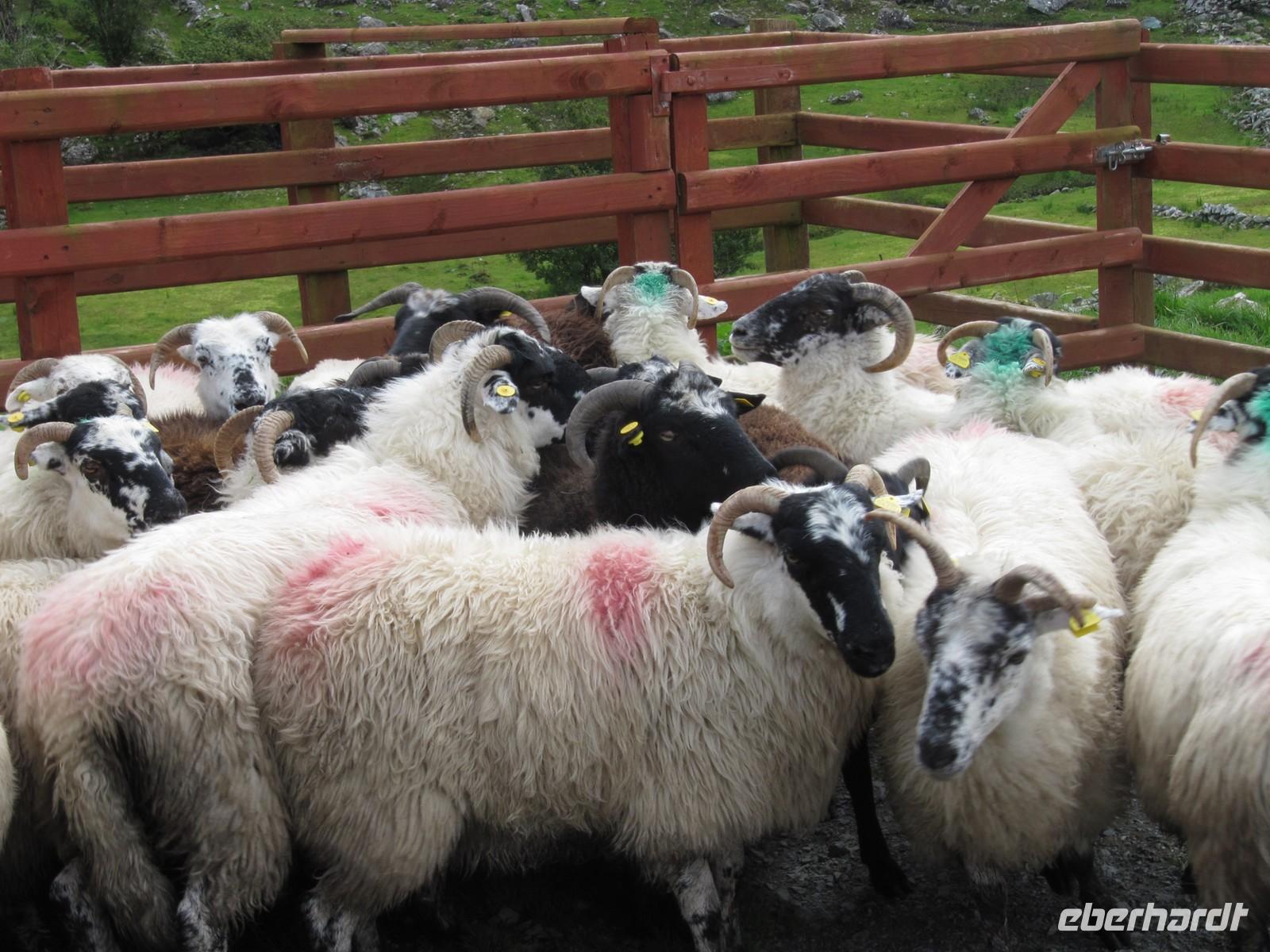 Dann ging es hinauf zum Pass und zu einem Restaurant mit traumhaften Küstenblick. Dort konnten wir Irlands Nationalgericht Irish Stew probieren. Wir legten einen Bummel im hübschen Örtchen Sneem ein, wo man gut Souvenirs kaufen kann. Beim Schäfer Kissane staunten wir, wie begeistert seine Boardercollies die Schafe von den Bergen herab trieben und wie schwer die Arbeit des Schafe Scherens ist.