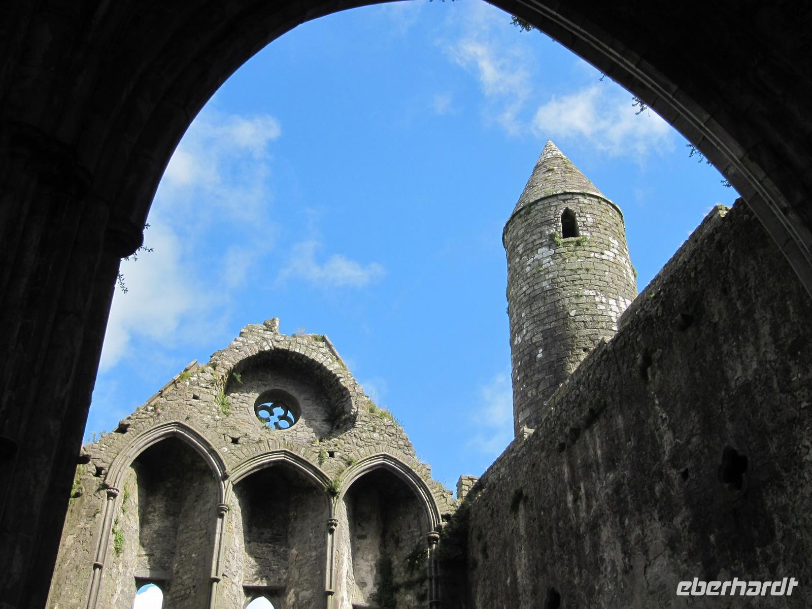 Tag 9 Es ging zurück nach Dublin. Uns erwartete noch ein Höhepunkt der Reise, der Rock of Cashel, eines der bedeutendsten Kulturdenkmäler von Irland. Hier fanden wir u.a. Cormac’s Chapel, die interessanteste romanische Kirche von Irland, an der wahrscheinlich Regensburger Baumeister mitgearbeitet haben. Leider wird zur Zeit gerade gebaut und ein Teil der Anlage ist eingerüstet. Nach dem wir uns den deutschen Film angesehen hatten fuhren wir nach Kilkenny, um noch einen letzten Besuch in einer irischen Kleinstadt abzustatten. Wir hätten auch Kilkenny Castle besuchen können, aber lieber bummeln!