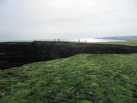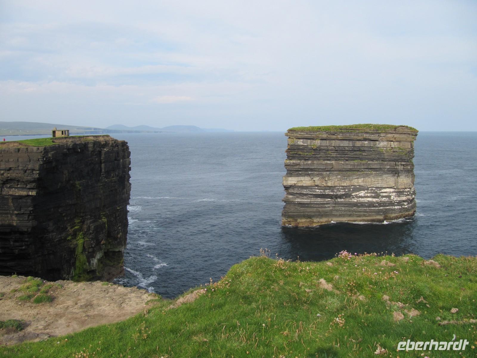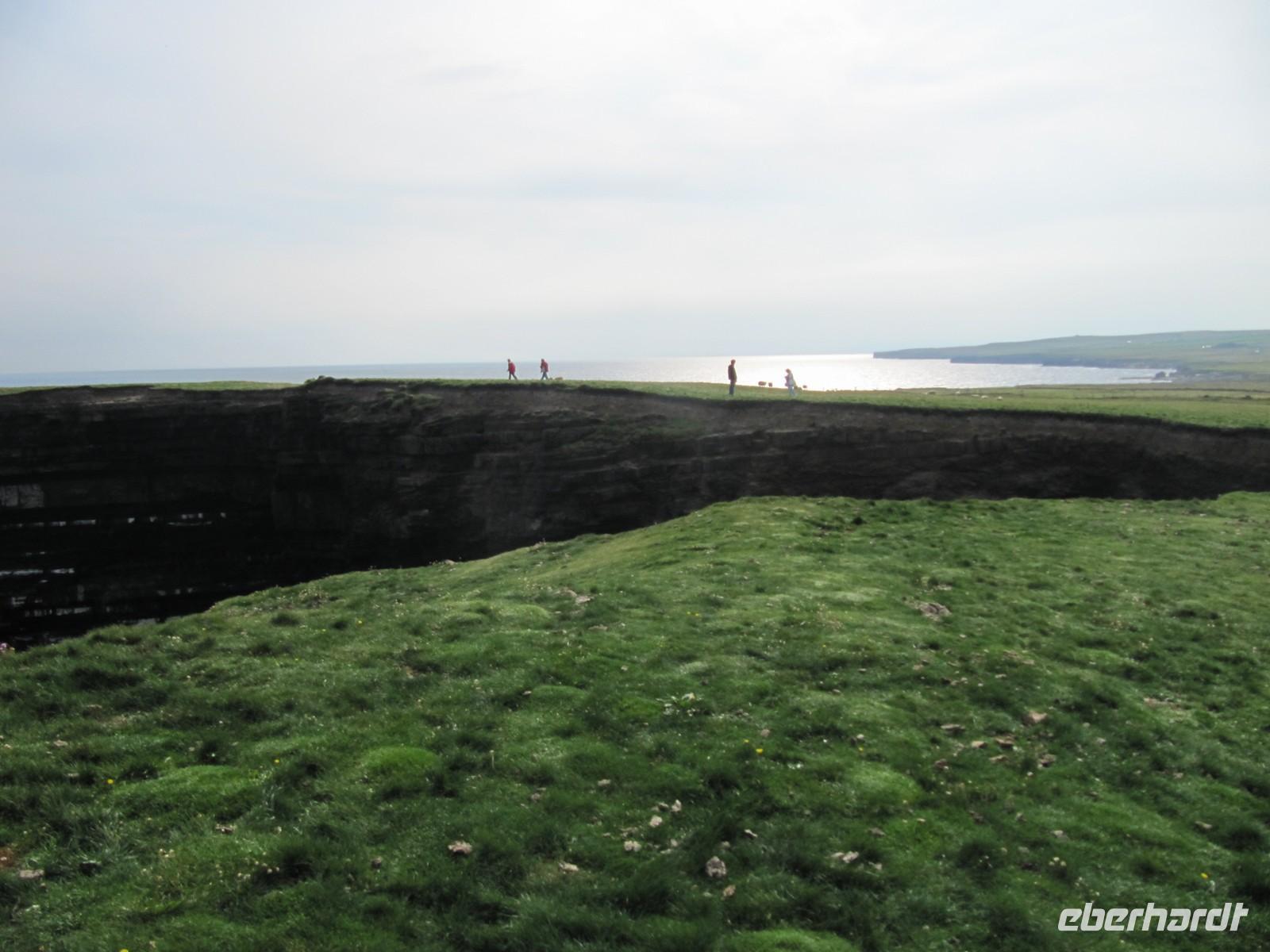 Das Wetter war gut und so hatte sich unser Team noch ein besonderes Erlebnis ausgedacht. Lutz chauffierte uns über enge Straßen und Koppeln zu den Klippen von Downpatrick Head. Traumhafte Aussichten auf das Meer, nur unsere Gruppe und die Schafe! Wir konnten auch zwei Blowholes bestaunen, große Löcher mitten in den Wiesen, in denen das Meer bei entsprechendem Wellengang Fontänen herausbläst.