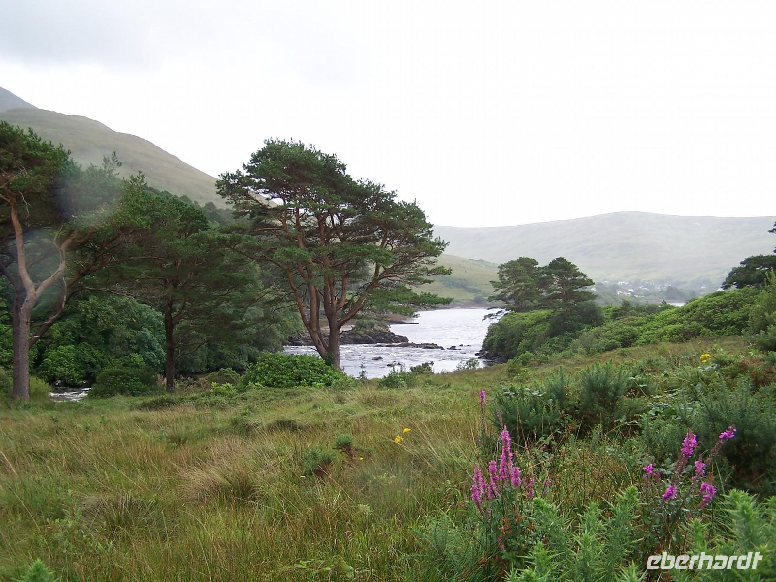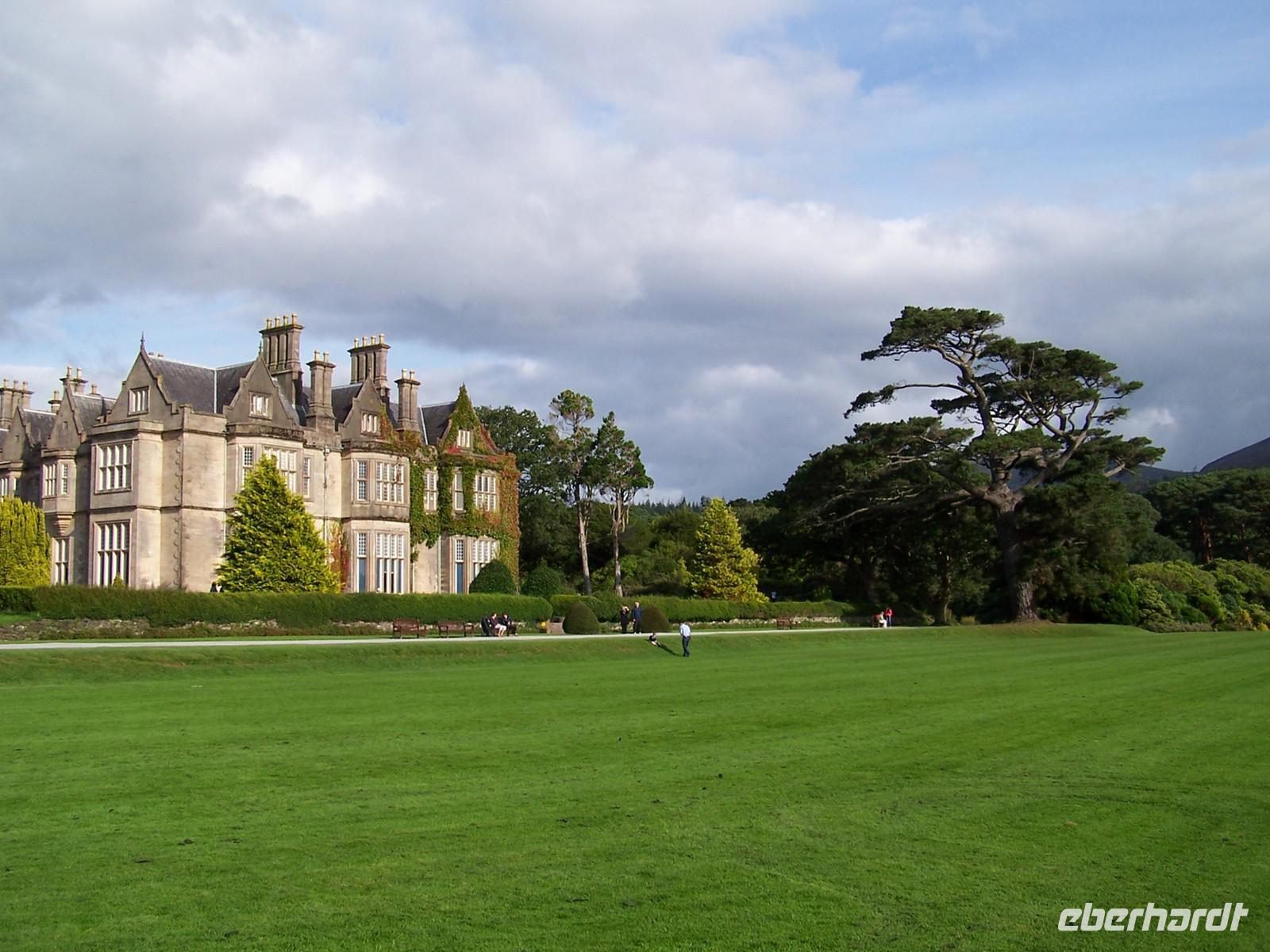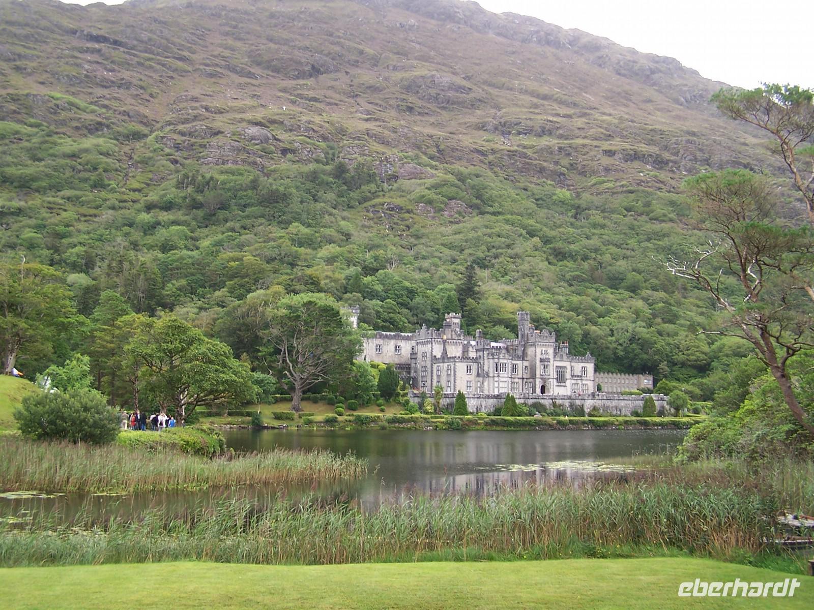 Am Morgen hieß es Abschied nehmen von unserem Hotel in Ballina und Weiterfahrt in Richtung Connemara. An der Pontoon Bridge, zwischen den beiden Seen Lough Conn und Lough Cullin, legten wir einen ersten Fotostopp ein. Anschließend fuhren wir in die schöne Stadt Westport zu Füßen des Croagh Patrick, Irlands heiligen Berg. Die Stadt Westport wurde planmäßig auf dem Reißbrett entworfen, basierend auf einem Achteck im Zentrum. Inmitten dieses Achteckes steht auf einer Säule die Statue des Heiligen St. Patrick. Von Westport aus ging es über den Doo Lough Pass zu unserem nächsten Fotostopp den Aasleagh Falls, am River Errift. Nach einem weiteren Stopp am Killary Harbour fuhren wir zur Kylemore Abbey. Das Schloss wurde in der 2.Hälfte des 19. Jahrhunderts vom wohlhabenden Prominentenarzt Henry als Landsitz für seine Frau erbaut. Heute befindet sich das Anwesen im Besitz von Benediktinerinnen. Zur herrlichen Parkanlage mit dem ehemaligen Schloss, dem See und der Kirche gehören auch die nahen Gartenanlagen und Gewächshäuser.