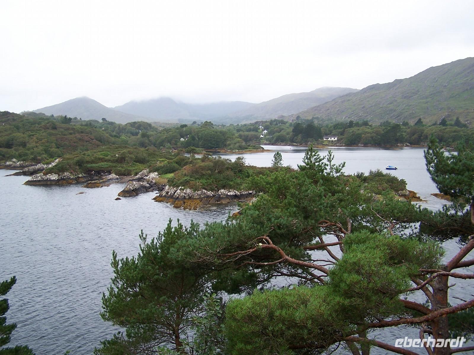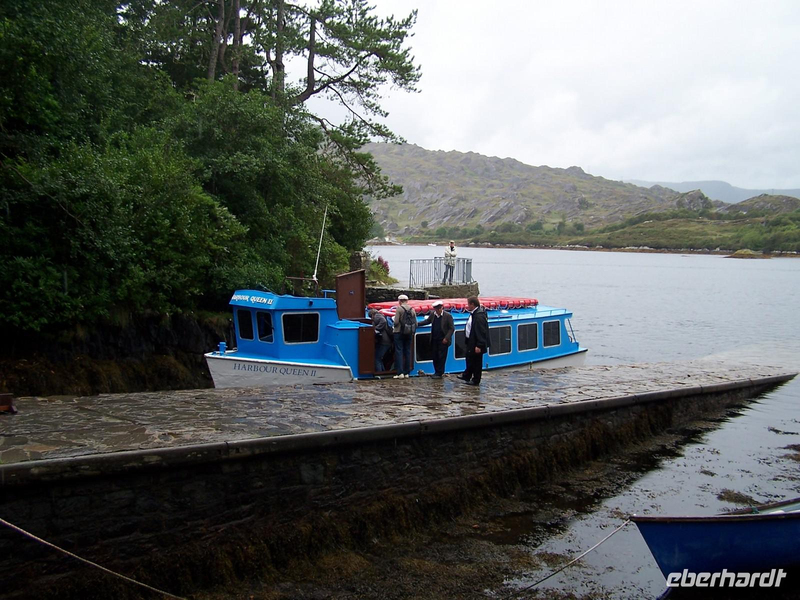 Nach dem Frühstück begann unser fakultativer Ausflug nach Garinish Island, an dem der größte Teil unserer Gruppe teilnahm. Den ersten Besichtigungsstopp legten wir bei Molly Callivan's Cottage ein. Molly war bekannt für das Brennen ihres XXXX- Whyskey. Anschließend ging es in den Hafen von Glengarriff zum Fährboot Harbour Queen. Auf unserer Fahrt zu der Insel Garinish Island fuhr der Kapitän langsam an den Felsbänken vorbei, damit wir die Seehunde gut sehen und fotografieren konnten. Nach unserer Ankunft auf Garinish Island fing es wieder an zu regnen und alle waren ein wenig traurig, die schöne Gartenanlage nun bei Regen besichtigen zu müssen. Wir spazierten durch ein tropisches Pflanzenparadies mit römischer Villa, griechischem Tempel und einem kleinen Abschnitt, welcher Dschungel genannt wird. Glücklicherweise liegt Garinish Island in Irland und so dauerte es nicht lange, bis der Regen nachließ und sich später sogar wieder die Sonne zeigte. In Glengarriff legten wir unsere Mittagspause ein und nutzten die Zeit für einen individuellen Bummel durch die Stadt. Über den Ring of Beara gelangten wir zum Healy Pass (330 m). Hier hielten wir gleich zweimal für Fotostopps. Die Aussicht über die spektakuläre Landschaft war einfach zu schön! Vom Pass aus fuhren wir wieder hinunter zum Ring of Beara und weiter über Kenmare zur Muckross traditional farm. Auf dem Gelände gibt es mehrere Bauernhäuser verschiedenster Größe zu sehen, vollgestopft mit nostalgischem Arbeitsgerät. Für diejenigen, denen der Spaziergang zu den einzelnen Gehöften zu anstrengend war, stand ein Bus-shuttle bereit.