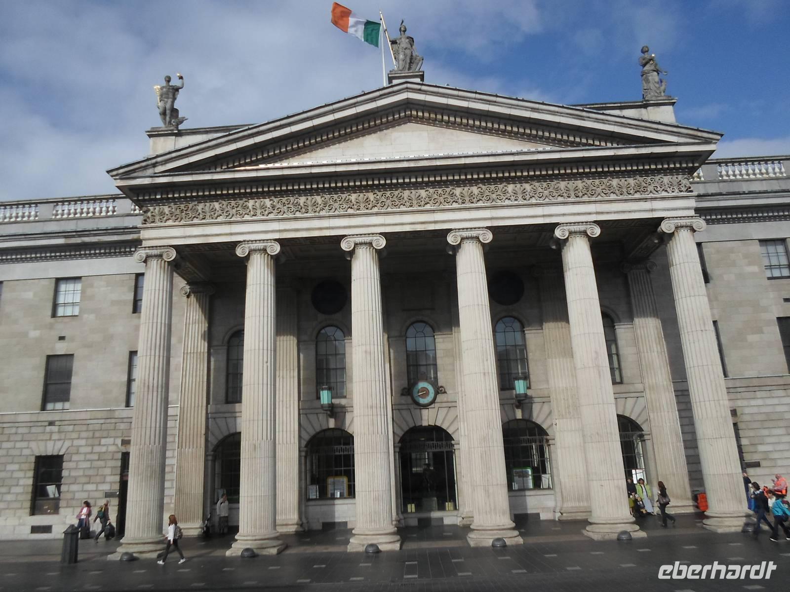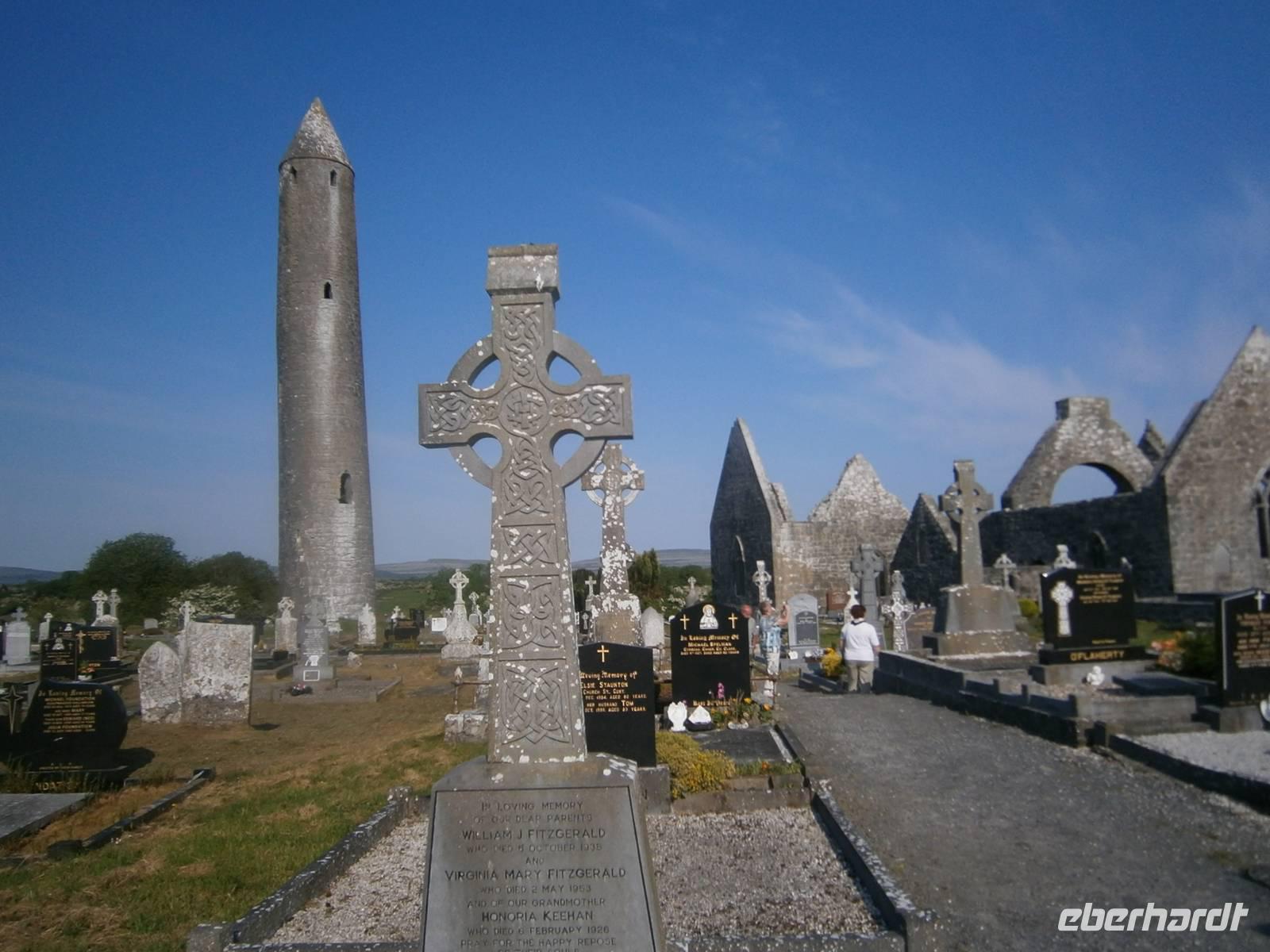 Heute führt uns die Route nach Dublin vorbei an Cashel. Dort besuchen wir den berühmten Rock of Cashel, berühmt als ehemaliger Krönungsort und Sitz der Hochkönige von Munster, als Sitz von Bischöfen u.a. des Heiligen Patrick und Erzbischöfen. Wir laufen um die Ruine Kathedrale, die romanische Kapelle und machen viele Fotos von der herrlichen Landschaft, die den Rock of Cashel umgibt. Der deutschsprachige Film über die Geschichte und Bedeutung des Gebietes ist für jeden Besucher von Cashel nur zu empfehlen. Nach dem Besuch dieser historischen Stätte machen wir noch einen kleinen Spaziergang in dem Städtchen Cashel, besuchen den einen oder anderen typischen irischen Pub bevor wir unsere Reise nach Kilkenny fortsetzen. Hier angekommen sehen wir schon von weitem die Kathedrale mit ihrem Rundturm, das Schloss und das hübsche Stadtzentrum laden uns zum Besuch ein. Wir laufen zuerst zum Rathaus mit seinem achteckigen Turm, biegen in die kleine Kieran´s Street ein und trinken ein Kilkenny im „Kyteler's Inn". Etwas komisch ist das schon, in dem Haus Bier zu trinken, wo einst die Wirtin ihre vier Ehemänner ermordet hat. Auf der Fahrt nach Dublin und hören wir irische olksmusik. Manch einer wird ein bisschen wehmütig, wenn er an den bevorstehenden Abschied von den anderen Gästen und Irland denkt. Vielleicht haben wir in der Zukunft nochmal die Möglichkeit, gemeinsam eine Eberhardt Reise zu unternehmen. Unsere Reiseleiterin stellt uns deshalb verschieden Reisen vor. Als wir in Dublin ankommen, haben sich schon einzelne Gäste für eine weitere Reise entschieden. Nach dem Abendessen gehen dann alle gemeinsam zur Temple Bar, um den letzten Abend auf typisch irische Weise zu begehen - bei Guinness, Live Musik und Stepp Dance. Der geplante Abendausflug endet am frühen Morgen.