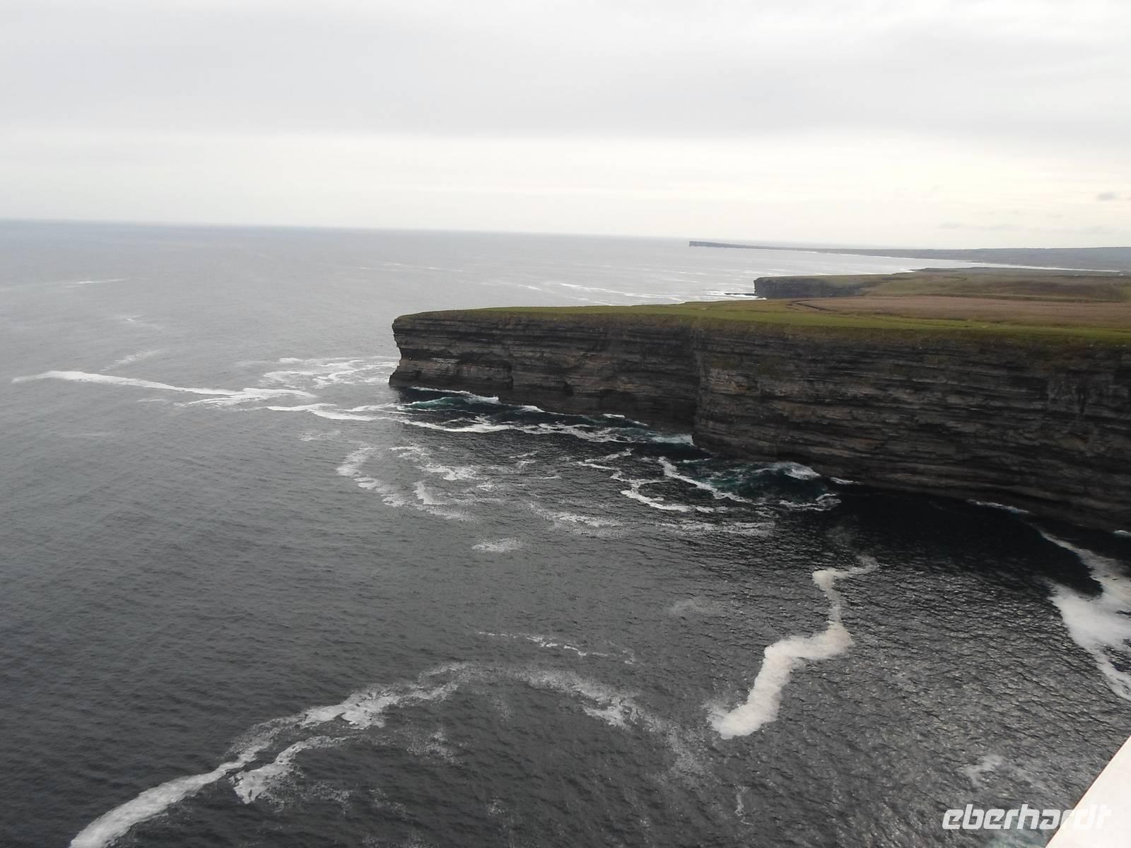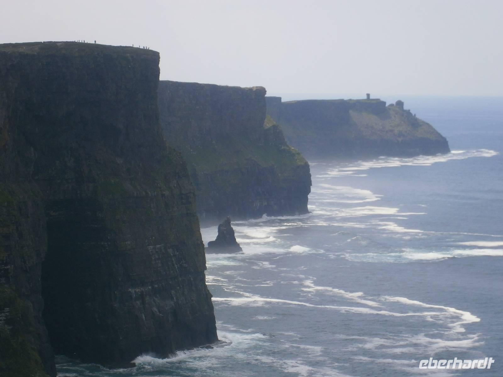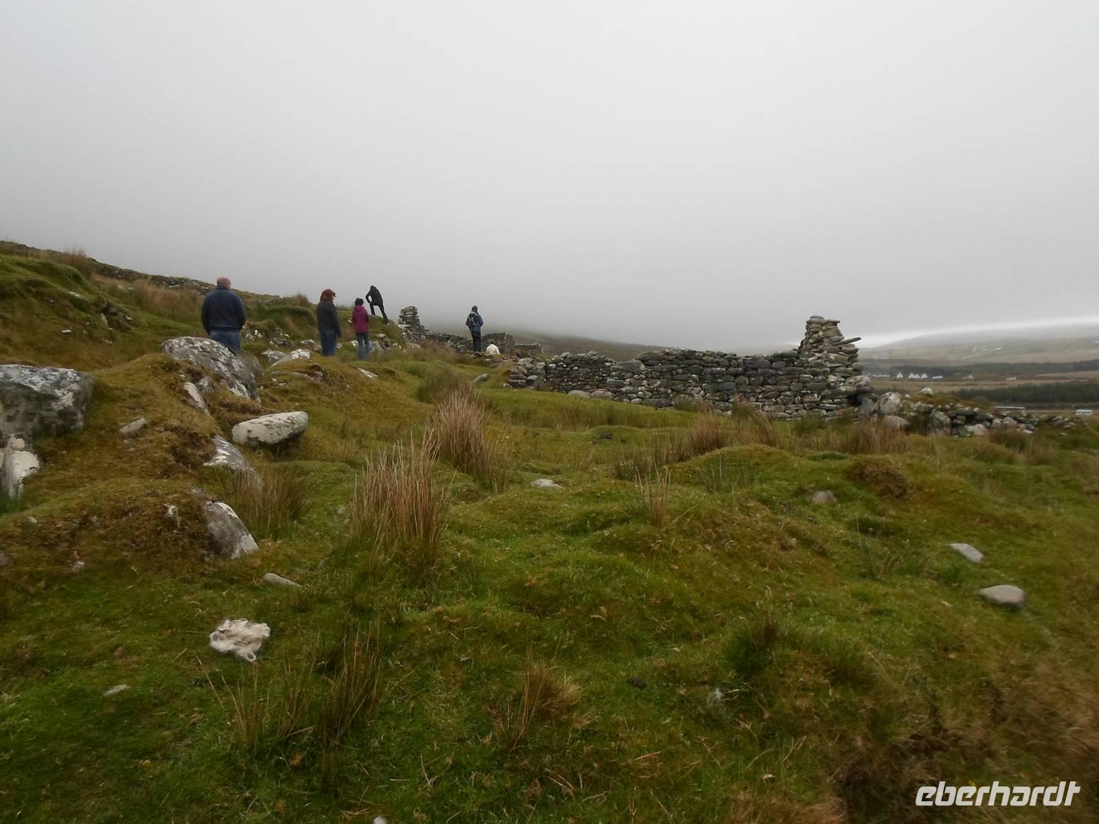 Heute werden wir die Grafschaft Mayo erkunden. Die meiste Zeit fahren wir also entlang der Westküste mit den felsigen Klippen, doch schon beeindruckend. Wir sehen viele kleine Inseln, die der Küste vorgelagert sind. wild und romantisch erscheint uns die Natur hier. In Connacht, einer Provinz mit vielen Traditionen und Mythen, ist die Natur besonders schön - das Land und das Meer - so nah beieinander. Etwas später besuchen wir die Ausgrabungsstätten in den Céide Fields, wo eine 5000 Jahre alte Bauernsiedlung uns das Leben der Menschen jener Zeit näher bringt. Schließlich fahren wir noch zur größten irischen Insel, Achill Island. Hier finden wir in Doogart das Ferienhaus von Heinrich Böll, das jetzt von Künstlern genutzt wird. Dann laufen wir durch das „Deserted Village" mit seinen 70 verlassenen Häusern, die verfallen am Berghang stehen und vor diesen ahnen wir noch die Zeilen, die für den Anbau von Kartoffeln genutzt wurden. Viele Missernten führten im 19. Jahrhundert zur Hungersnot und zum Verlassen der Häuser. In welcher Not müssen diese Menschen gewesen sein, dass sie mit den Familien ihr Zuhause zurücklassen mussten? Jetzt wollten wir eigentlich am Strand von Keel schwimmen gehen, aber es ist zu kalt. Nur eine ganz mutige Frau wagt sich mit den Füßen ins Wasser. Wir verlassen Keel und fahren noch auf dem Atlantic Drive Richtung Süden zum Turm der Piratenkönigin Grace O'Malley, die hier das Meer im 16. Jahrhundert kontrollierte. Dann geht es zurück in unser Hotel in Ballina und wir beenden den Tag bei einem Glas Guinness.