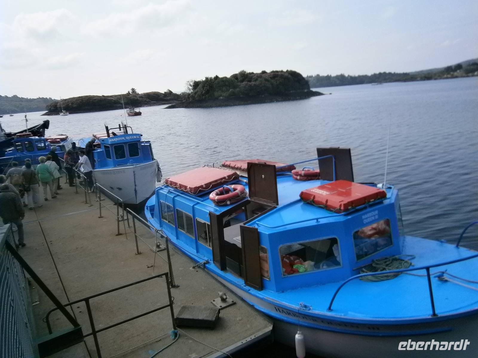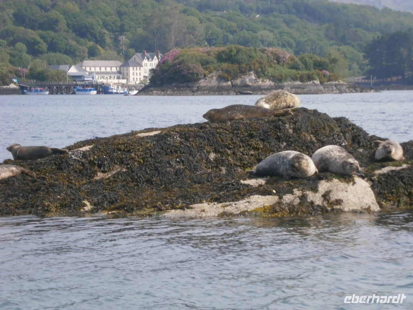 Alle Gäste wollen heute an dem fakultativen Ausflug zu der Garnish Island teilnehmen. Wir fahren gleich nach dem Frühstück los. Wie sollte es auch anders sein, die Sonne bleibt unsere Reisebegleiterin. Über Kenmare geht es direkt nach Glengarriff an der Mündung des gleichnamgen Flusses die Bay of Bantry. Von hier aus nehmen wir ein kleines Boot zum Übersetzen nach Garnish Isle. Überglücklich sind wir als wir Seerobben entdecken, die sich auf kleinen Inseln entlang unserer Fahrstrecke sonnen. Dann gelangen wir zu den berühmten Gärten von Garnish Island. Es ist eine Ansammlung herrlicher blühender Gewächse aus vielen Gebieten der Welt, die hier - zwischen römischer Villa und griechischem Tempel- aufgrund des nahen Golfstromes hervorragend gedeihen. Wir lassen uns Zeit beim Betrachten der vielen unterschiedlichen Arten von Pflanzen und Blumen. Im Sonnenschein spazieren wir durch den herrlichen Park und können uns auch auf den Parkbänken ausruhen. Heute nehmen wir uns viel Zeit für die Natur. Zurück geht es wieder mit dem Boot. Die Seerobben haben sich inzwischen kaum bewegt, sie liegen immer noch auf ihren kleinen Felsen und aalen sich in der Mittagssonne. Natürlich zücken wir wieder die Fotoapparate und knipsen wiederholt das gleiche Motiv. Nach unserer Mittagsverpflegung aus der Bordküche fahren wir weiter über die Halbinsel, dann geht es eine Serpentinenstraße hinauf über den Healy Pass, der 1931 nach langer Bauzeit eröffnet wurde. Er ist gar nicht so hoch - nur 320 m. Aber er erscheint uns wie ein Pass in den Alpen. Von hier oben eröffnet sich ein wundervoller Blick über das weite Land. Der Healy Pass ist die Verbindung zwischen dem County Cork und dem County Kerry. Weiter geht es wieder nach Kenmare, das Städtchen haben wir ja schon am Morgen passiert. Dieses Mal machen wir jedoch einen kleinen Halt, um Kaffee und Kuchen in einem der vielen kleinen Straßencafès einzunehmen. Jetzt erwartet uns noch ein weiterer Höhepunkt der Reise. Wir besuchen die Traditional Farm von Muckross House und freuen uns darüber, dass wir in den einzelnen Farmhäusern von Frauen und Männern herzlich begrüßt werden, die uns Brot und Butter, alles hier hergestellt, anbieten. Sie erzählen uns, wie die Menschen einst lebten und ihren Hof bewirtschafteten. Die Zeit reicht heute gar nicht, um alles näher kennenzulernen. Wir laufen noch hinüber zu Muckross House und Gardens, nehmen uns eine Pferdekutschen und fahren durch den Park zum Torc- Wasserfall, wo wir gleich ein paar Fotos machen. Nun ist es aber an der Zeit, ins Hotel zurückzukehren. Nach dem Abendessen sitzt unsere Gruppe wieder bei einem Glas Guinness zusammen. Wie bisher war dieser Tag auch ein ganz besonderer Urlaubstag.