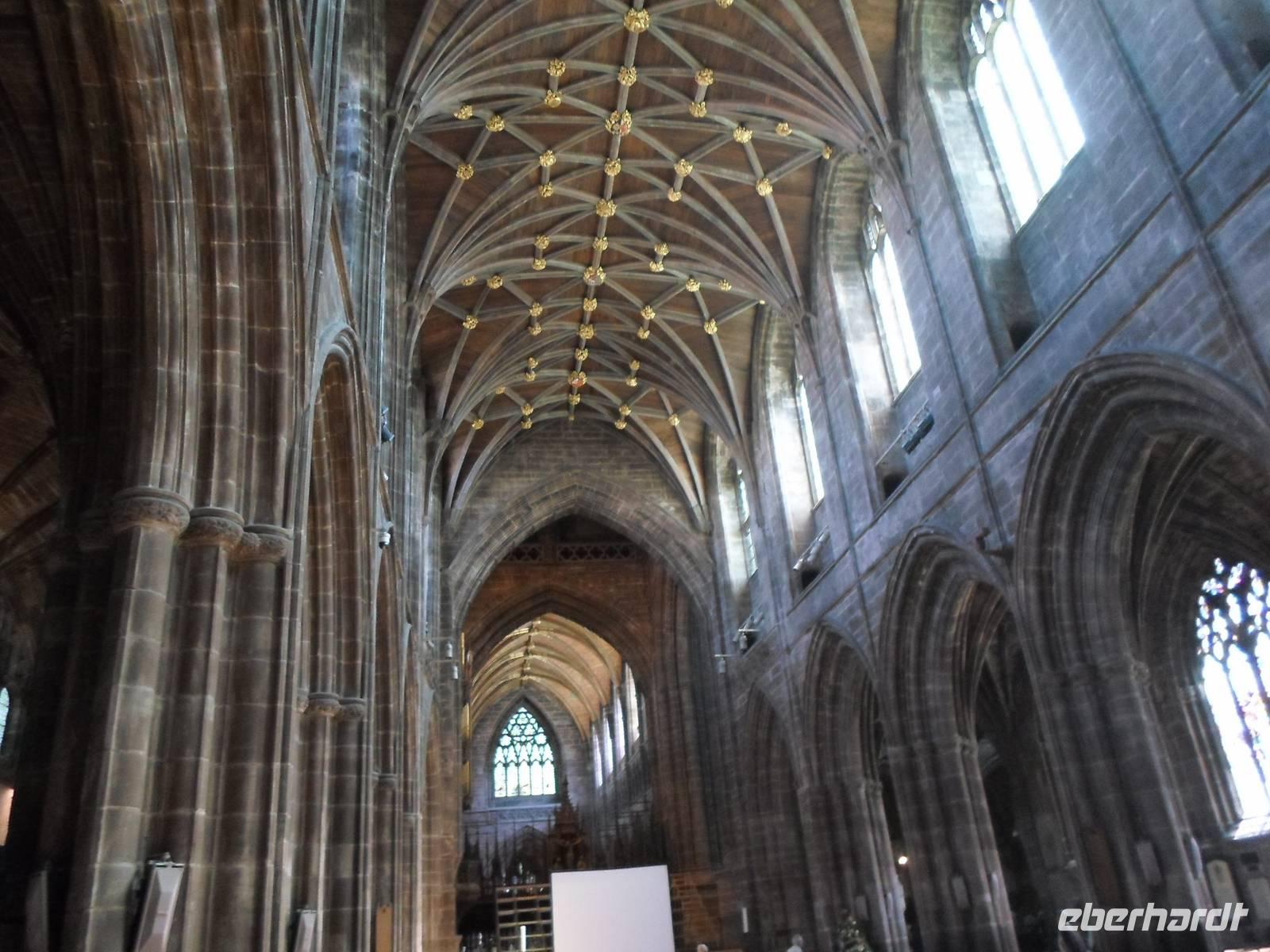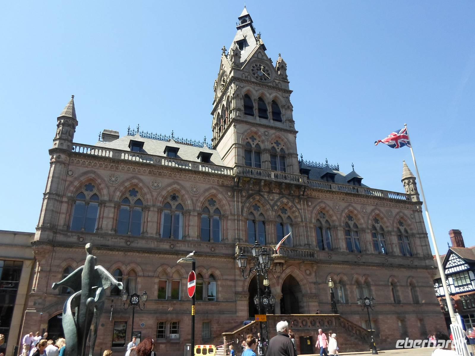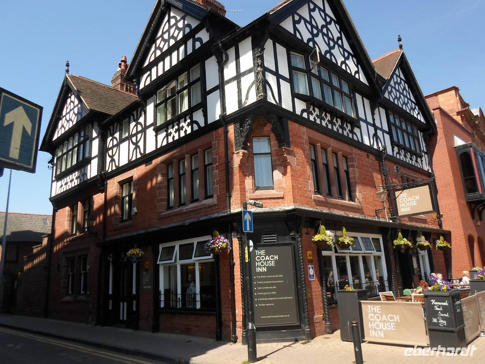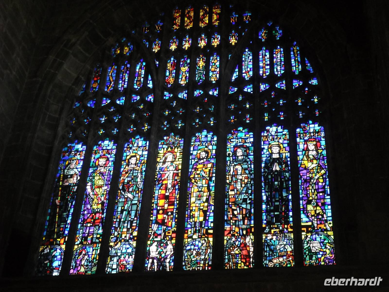 passieren. Leeds, Manchester bevor wir die historische Altstadt von Chester besuchen. Natürlich staunen wir über unseren Busfahrer, wie schnell er sich an den Linksverkehr angepasst hat und scheinbar überhaupt keine Probleme hat zu überholen. Angekommen in Chester laufen wir auf der Stadtmauer bis zur Uhr, die anlässlich des 60jährigen Thronjubiläums von Queen Victoria hier errichtet wurde. Dann machen wir einen Spaziergang durch die von wunderschönen Fachwerkhäusern gesäumten Straßen, werden vom Stadtschreier in seinem historischen Kostüm persönlich begrüßt und laufen dann weiter zur Kathedrale und dem historischen Rathaus, wo wir uns als Eberhardt -Gruppe im Gästebuch verewigen. Viele Straßenmusiker erfreuen uns auf unserem Spaziergang durch das wunderbare Chester. Wir wollen aber nach Irland. So setzen wir unsere Reise durch Nordwales fort, um die Fähre von Holyhead nach Dublin zu bekommen. Mit der Schnellfähre erreichen wir schon kurze Zeit später die irische Hauptstadt und unser Hotel, das nicht weit vom Hafen und dem Stadtzentrum gelegen ist. Zuerst begrüßen wir unsere anderen Gäste, die mit dem Flugzeug anreisten. Nun sind wir vollzählig und es kann morgen richtig losgehen. Alle freuen sich über einen gelungenen Start unserer Reise über die grüne Insel.