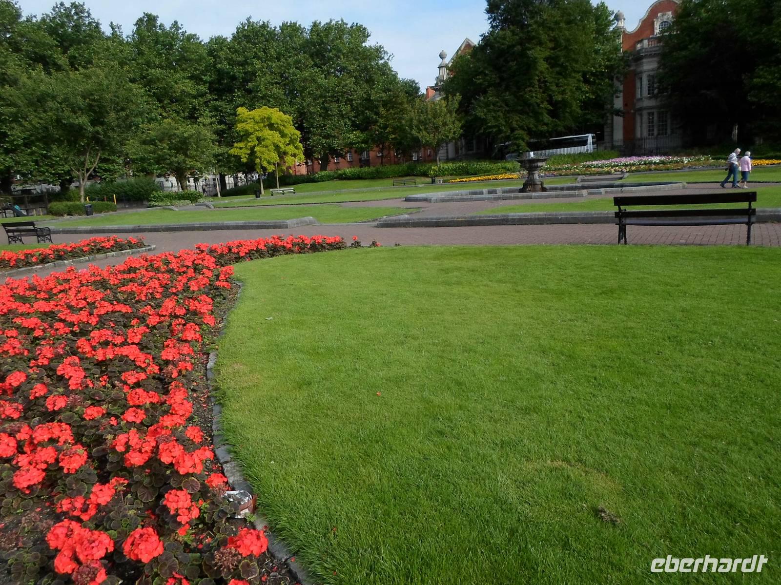 Nun gilt es Abschied zu nehmen. Abschied von unseren Fluggästen, von Dublin und insgesamt von einer wunderschönen Reise über die grüne Insel. Natürlich ist unsere Reise noch nicht beendet. Wir müssen noch mit der Fähre nach England übersetzen, Mittelengland mit dem Bus durchqueren, bevor wir wiederum mit einer Fähre nach Rotterdam fahren. Es ist gewiss eine lange Anfahrt und Rückfahrt, jedoch lohnen sich die Anstrengungen. Wir werden noch lange von dieser herrlichen Reise schwärmen und uns sehr gern an die nette Reisegruppe erinnern. Aber jetzt sind wir auf der Fähre, die Sonne begleitet uns schon seit dem ersten Tag unserer Reise. Die Überfahrt nach Holyhead ist ganz ruhig. Viele Passagiere schlafen in ihren Sesseln, von unserer Gruppe gönnen sich auch einige Gäste ein Schläfchen. Ausgeruht geht es dann an Land und wir fahren entlang der Küste, an Chester vorbei, das wir schon auf der Hinreise besuchten, vorbei an Manchester und Leeds. Beim Kaffeestopp probieren wir mal einen selbstgemachten Irish Coffee, serviert mit Schokolade und Keksen. Wir sind von unserem Kaffee ganz begeistert und werden ihn bestimmt zuhause auch mal probieren. Angekommen in Hull werden wir nicht gleich auf die Fähre fahren, sondern besuchen vorher das Old Town Centre von Hull. Hier sehen wir das historische Rathaus mit dem Denkmal der Queen Victoria davor und gleich daneben das supermoderne Quay Shopping Centre. Nun ist es aber Zeit, zur Fähre zu fahren und einzuchecken. Der Ablauf ist uns ja schon vertraut und so genießt jeder den Abend auf dem Schiff nach seinen Vorstellungen.