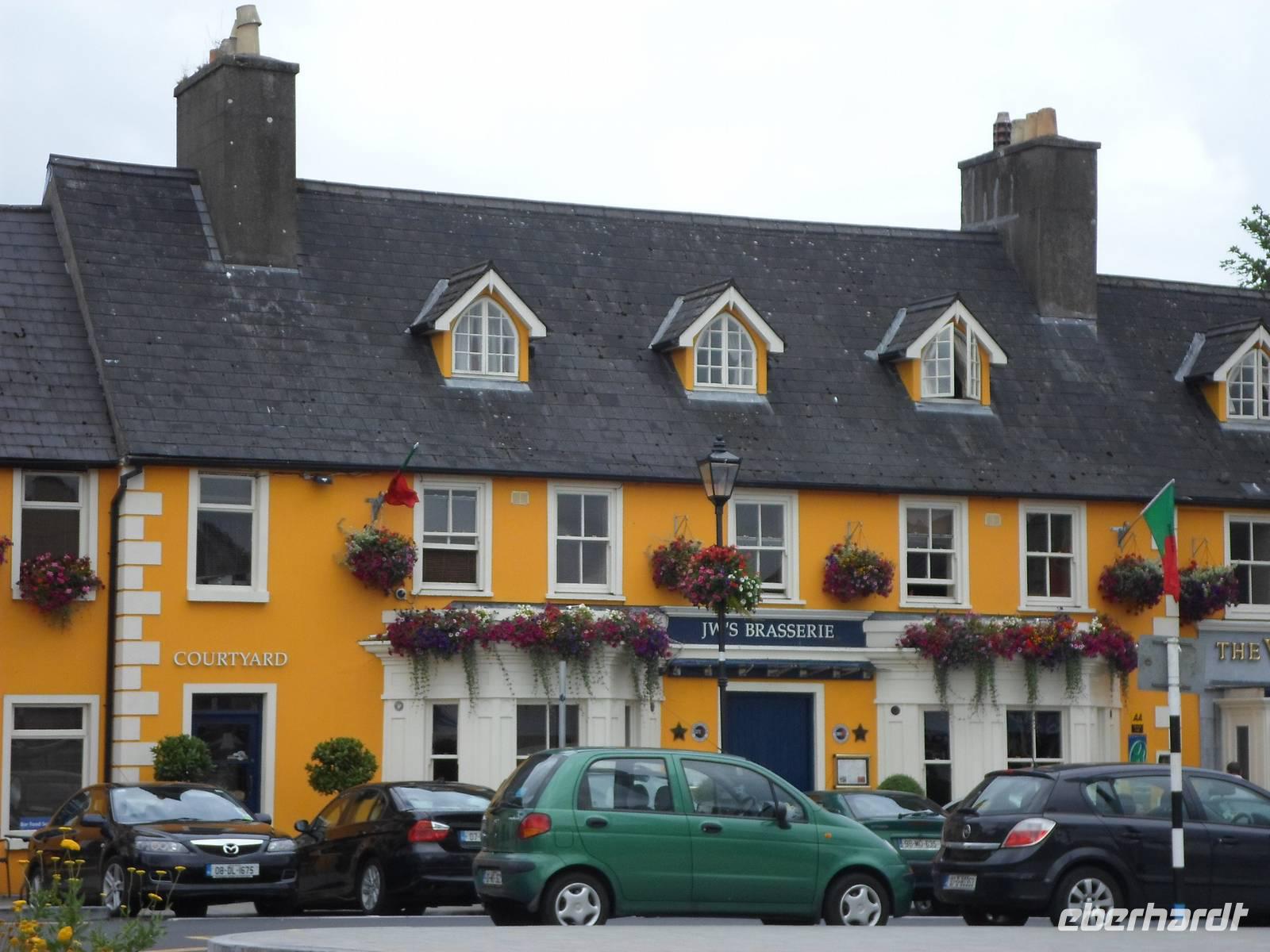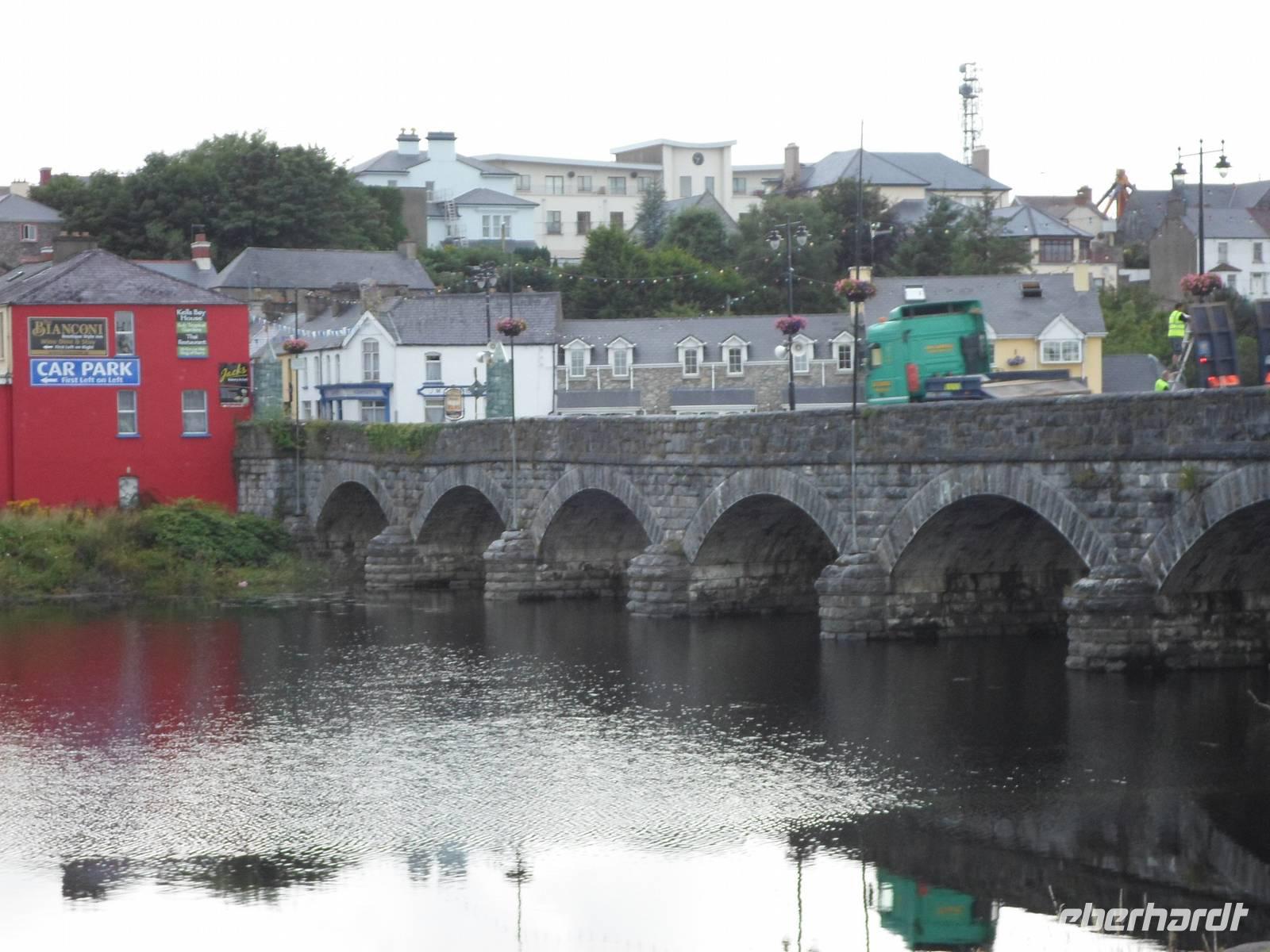 Der Morgen erwartet uns im Sonnenschein. Wir freuen uns auf unsere Stadtrundfahrt, auf der wir die irische Hauptstadt näher kennenlernen werden. Zuerst geht es entlang der Prachtstraße am Fluss Liffey, wir sehen die schönen georgianischen Häuser mit den bunten Haustüren, die als „Doors of Dublin" bezeichnet werden. Unweit von Temple Bar, dem Viertel mit einer Vielzahl von Pubs mit Livemusik befindet sich das ehrwürdige Trinity College, dessen Bibliothek das berühmte Books of Kelts beherbergt. Wir spazieren um die berühmte St. Patick's Kathedrale und machen einen kurzen Besuch im Phönix Park. Zwar ist Dublin berühmt für die Guinness Brauerei, aber wir werden heute die „Locke's Distillerie aufsuchen, um etwas über die Geheimnisse des Whiskeys des „Wasser des Lebens" zu erfahren. Natürlich bleibt es nicht bei einem Rundgang und einer Kostprobe. Einige Gäste lassen sich zum Kauf einer Flasche Irischen Whiskeys verführen. Ungewollt werden wir sogar zu „Filmstars". Das irische Fernsehen dreht einen Film in der Distillerie und wir sind mitten drin. Gespannt warten wir auf die versprochene DVD. Auf unserem weiteren Weg nach Ballina am Fluss Moy, gelegen im Nordosten der irischen Republik, machen wir noch Halt in Roscommon. Dort machen wir Fotos vom ehemaligen Gefängnis, wo die letzte „Hangwoman" ihr grausames Handwerk ausführen musste. Angekommen in Ballina werden wir in von einem großen Empfang anlässlich des Gathering von Mayo und Manchester überrascht. So haben wir sogar die Gelegenheit, die ehemalige Präsidentin der Republik Irland, Mary Robinson, zu sehen. Ein erlebnisreicher Tag liegt hinter uns und wir sind auf die nächsten gespannt.
