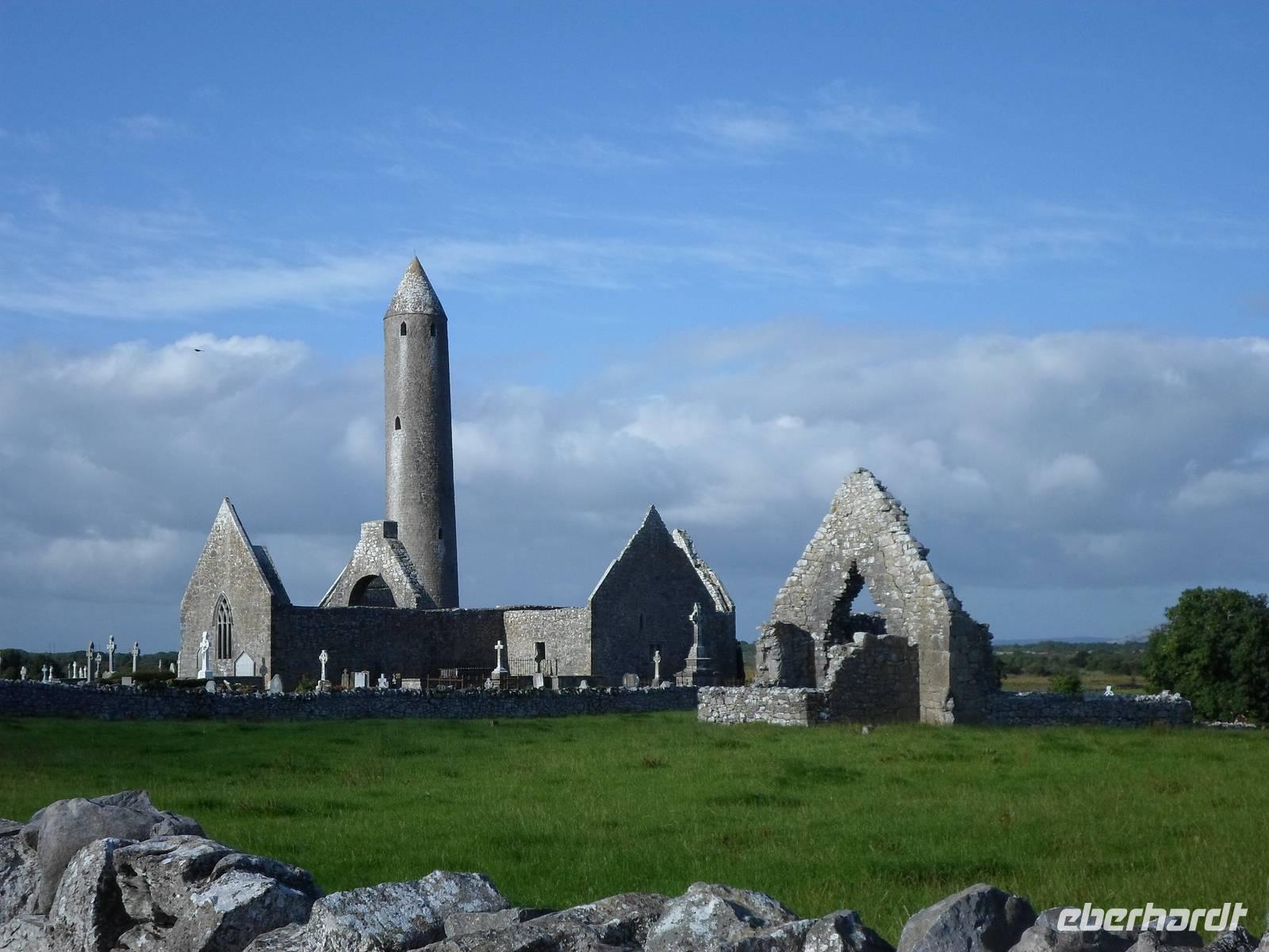Heute führt uns die Route nach Dublin vorbei an Cashel. Dort besuchen wir den Rock of Cashel, berühmt als ehemaliger Krönungsort und Sitz der Hochkönige von Munster, als Sitz von Bischöfen u.a. des Heiligen Patrick und Erzbischöfen. Wir laufen um die Ruine Kathedrale, die romanische Kapelle und machen viele Fotos von der herrlichen Landschaft, die den Rock of Cashel umgibt. Der deutschsprachige Film über die Geschichte und Bedeutung des Gebietes ist für jeden Besucher von Cashel nur zu empfehlen. Nach dem Besuch dieser historischen Stätte machen wir noch einen kleinen Spaziergang in dem Städtchen Cashel, besuchen einen typischen irischen Pub bevor wir unsere Reise nach Kilkenny fortsetzen. Hier angekommen, sehen wir schon von weitem die Kathedrale mit ihrem Rundturm, das Schloss und das hübsche Stadtzentrum. Wir besuchen die Stadt. Wir laufen zuerst zum Rathaus mit seinem achteckigen Turm, biegen in die kleine Kieran´s Street ein und trinken ein Kilkenny im „Kyteler's Inn". Etwas komisch ist das schon, in dem Haus Bier zu trinken, wo einst die Wirtin ihre vier Ehemänner ermordet hat. Auf der Fahrt nach Dublin und hören wir irische Volksmusik. Manch einer wird ein bisschen wehmütig, wenn er an den bevorstehenden Abschied von den anderen Gästen und Irland denkt. Vielleicht haben wir in der Zukunft nochmal die Möglichkeit, eine Eberhardt Reise zu unternehmen. In Dublin kennen wir uns nun schon aus. Nach dem Abendessen gehen einige Gäste noch zur Temple Bar, um den letzten Abend auf typisch irische Weise zu begehen - bei Guinness, Live Musik und Stepp Dance.