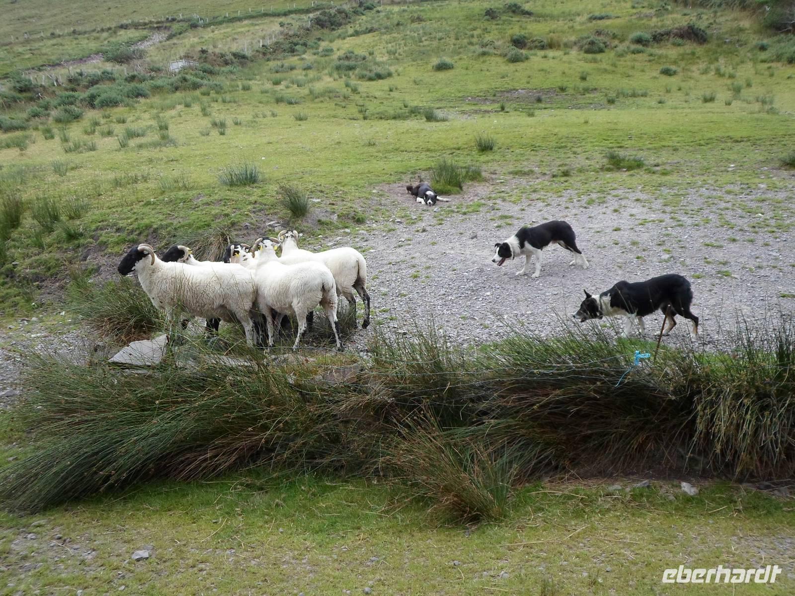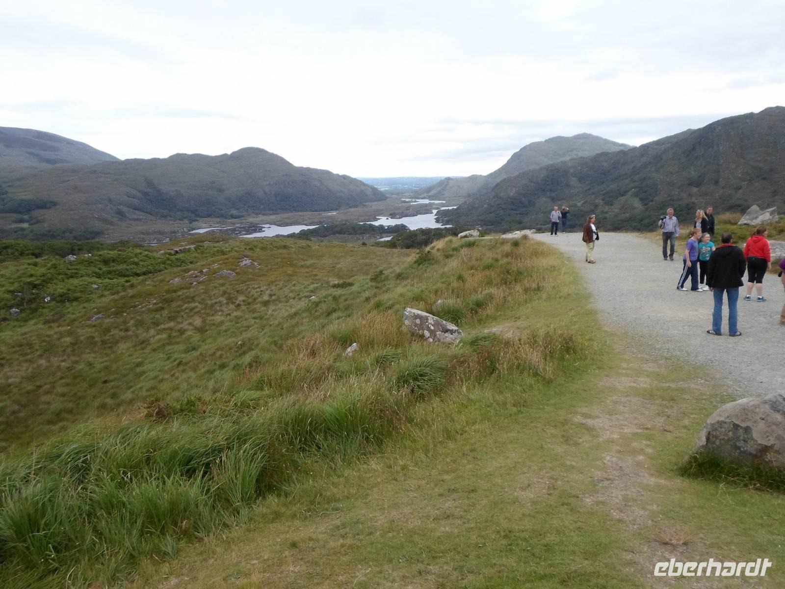Wieder begrüßt uns der Sonnenschein, schon glauben wir an das Sprichwort: „Wenn Engel reisen, scheint die Sonne." Heute wollen wir auf den Ring of Kerry - die berühmte Panoramastraße auf der Halbinsel Iveragh. Hier dürfen Busse nur entgegen des Uhrzeigerverlaufs befahren. Wir genießen die Fahrt durch eine der schönsten Landschaften Irlands. Immer wieder machen wir Fotostopps, um die herrliche Gegend festzuhalten. Wir halten in Killorglin an, in Glenbeigh mit Blick auf die Dingle Bay, beim Red Fox, wo wir schon am Vormittag einen Irish Coffee genießen. Dann besuchen wir die Kells Schaffarm und sind von der Präsentation der trainierten Hütehunde begeistert. Der nächste Halt ist in Cahergall, wo wir zum alten Stone Fort laufen. Mutige Gäste erklimmen sogar die äußeren Mauern. Weitere Fotostopps folgen - so in Waterville, wo wir uns neben Charly Chaplin stellen, in Caherdaniel mit einem phantastischen Blick auf den Kenmare River und den Atlantik. Der vor uns liegende White Beach und die strahlende Sonne locken uns zu einem kurzen Bad im kühlen Wasser. Erfrischt und stolz über unseren Mut geht es weiter auf dem Ring von Kerry nach Seem, mehrfach ausgezeichnet im Wettbewerb „Tidy Towns". Wir spazieren durch das kleine Ortszentrum, genießen ein Eis oder einen Kaffee oder kaufen ein Souvenir für die Freunde und Familie zuhause. Nun geht es weiter und der nächste Stopp ist kurz bei Moll's Gap und bei Lady's View mit einem herrlichen Blick auf drei Seen und die sie umgebenden Berge. Wir sind voller schöner Eindrücke. Nach dem Abendessen besuchen noch viele Gäste eine Show mit Irish Steppdancern und Sängern und kehren begeistert in das Hotel zurück. Wieder neigt sich ein sehr schöner Tag dem Ende zu.