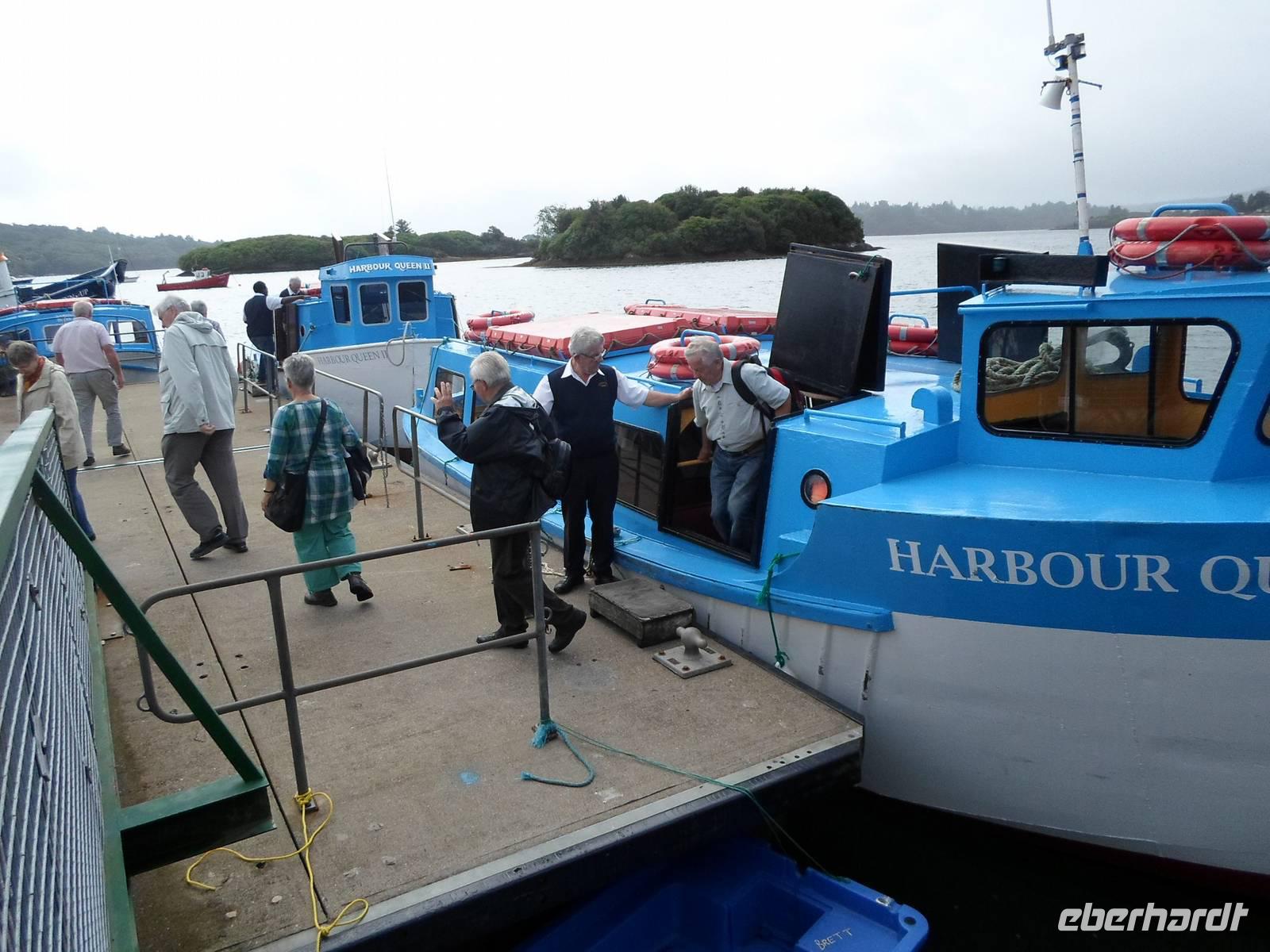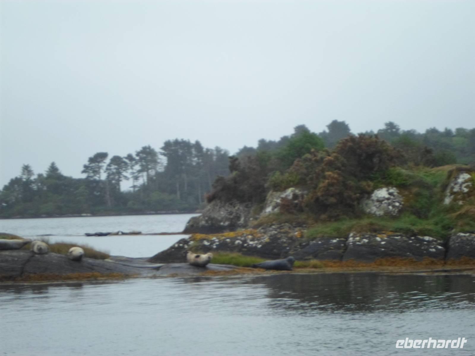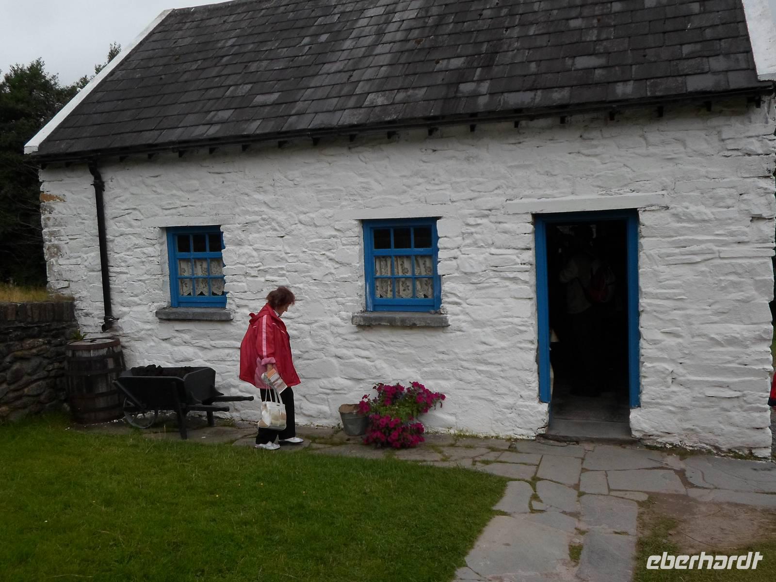 Die meisten Gäste wollen heute an dem fakultativen Ausflug zu der Garnish Island teilnehmen. Wir fahren gleich nach dem Frühstück los. Über Kenmare geht es direkt nach Glengarriff an der Mündung des Flusses an die Bay of Bantry. Von hier aus nehmen wir ein kleines Boot zum Übersetzen zur Garinish Isle. Überglücklich sind wir als wir Seerobben entdecken, die sich auf kleinen Inseln entlang unserer Fahrstrecke sonnen. Dann gelangen wir zu den berühmten Gärten Garinish Island. Sie sind eine Ansammlung herrlicher blühender Gewächse aus vielen Gebieten der Welt, die hier - zwischen römischer Villa und griechischem Tempel- aufgrund des nahen Golfstromes hervorragend gedeihen. Wir lassen uns Zeit beim Betrachten der vielen unterschiedlichen Arten von Pflanzen und Blumen. Im Sonnenschein spazieren wir durch den herrlichen Park und können uns auch auf den Parkbänken ausruhen. Heute nehmen wir uns viel Zeit für die Natur. Zurück geht es wieder mit dem Boot. Die Seerobben haben sich inzwischen kaum bewegt, sie liegen immer noch auf ihren kleinen Felsen und aalen sich in der Mittagssonne. Natürlich zücken wir wieder die Fotoapparate und knipsen wiederholt das gleiche Motiv. Nach unserer Mittagsverpflegung aus der Bordküche fahren wir weiter über die Halbinsel, dann geht es eine Serpentinenstraße hinauf über den Healy Pass, der 1931 nach langer Bauzeit eröffnet wurde. Er ist gar nicht so hoch - nur 320 m. Aber er erscheint uns wie ein Pass in den Alpen. Von hier oben eröffnet sich ein wundervoller Blick über das weite Land. Der Healy Pass ist die Verbindung zwischen dem County Cork und dem County Kerry. Weiter geht es wieder nach Kenmare, das Städtchen haben wir ja am Morgen schon passiert. Dieses Mal machen wir jedoch einen kleinen Halt, um Kaffee und Kuchen in einem der vielen kleinen Straßencafès einzunehmen. Jetzt erwartet uns noch ein weiterer Höhepunkt der Reise. Wir besuchen die Traditional Farm von Muckross. Wir freuen uns darüber, dass wir in den einzelnen Farmhäusern von Frauen und Männern herzlich begrüßt werden, die uns Brot und Butter anbieten. Sie erzählen uns, wie die Menschen einst lebten und ihren Hof bewirtschafteten. Die Zeit reicht heute gar nicht, um alles näher kennenzulernen. Wir laufen noch hinüber zu Muckross House und Gardens. Nun ist es aber an der Zeit, ins Hotel zurückzukehren. Nach dem Abendessen sitzt unsere Gruppe wieder bei einem Glas Guinness zusammen. Wie bisher war dieser Tag auch ein ganz besonderer Urlaubstag.