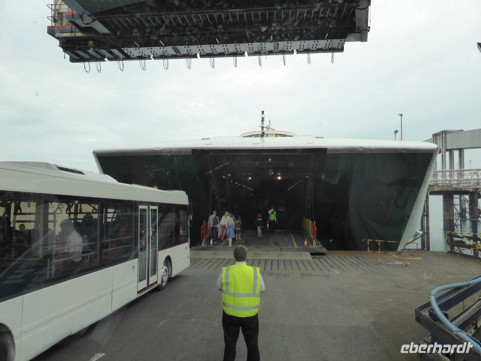 Der heutige Tag begann sehr früh, da unsere Fähre bereits um 08.05 Uhr ablegen sollte. Unsere Fluggäste konnten etwas länger schlafen. Die Überfahrt mit der Fähre verlief ruhig und in Wales hielten wir für einen Fotostopp am Menai-Stream, der Wasserstraße, welche die Insel Anglesey vom Festland trennt. Anschließend fuhren wir in die walisische Stadt Conwy. Vom dortigen Aufenthalt waren alle begeistert! Aufgrund der vielen mittelalterlichen Fachwerkhäuser, des kleinen Hafens am River Conwy und der gewaltigen Burganlage ist der Besuch dieser Kleinstadt ein einmaliges Erlebnis! Das letzte Stück unserer Fahrt führte uns durch den Ballungsraum Greater Manchester und vorbei an Leeds zu unserem Fährhafen Kingston up Hull. Nachdem die letzten Fahrzeuge auf unser Fährschiff verladen waren, legte es bereits um 19.30 Uhr in Richtung Rotterdam ab.