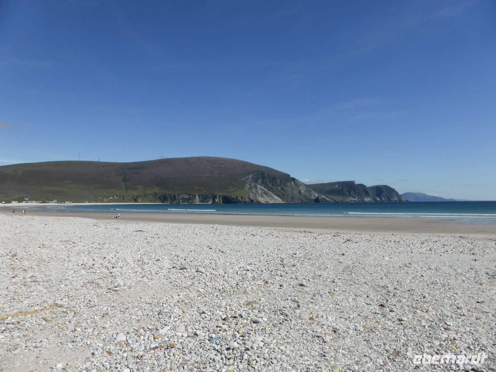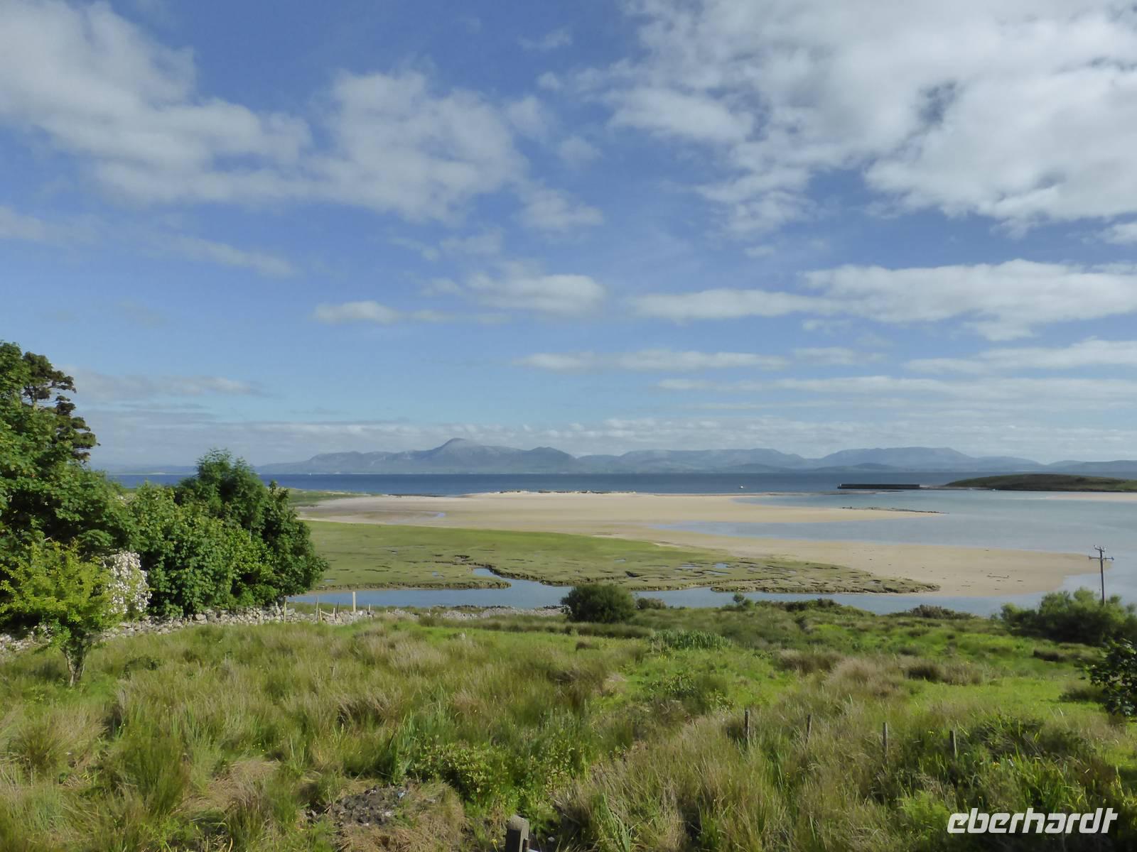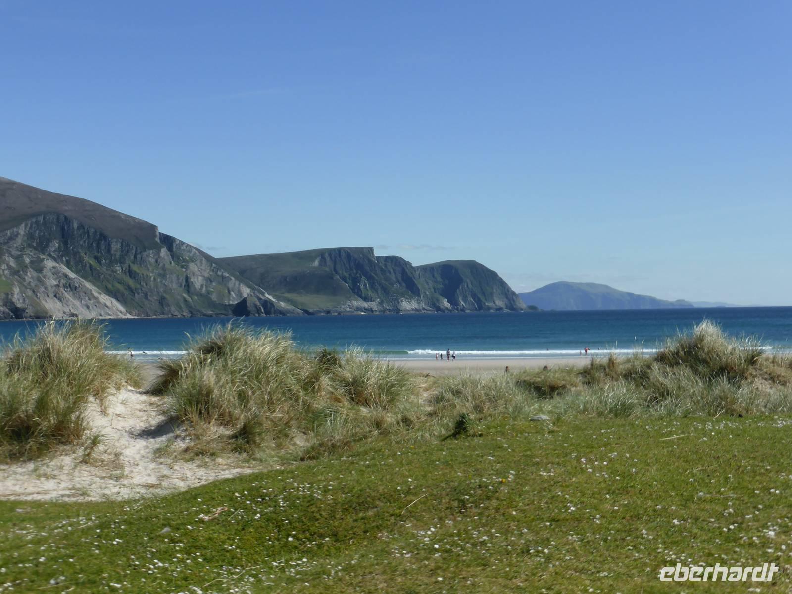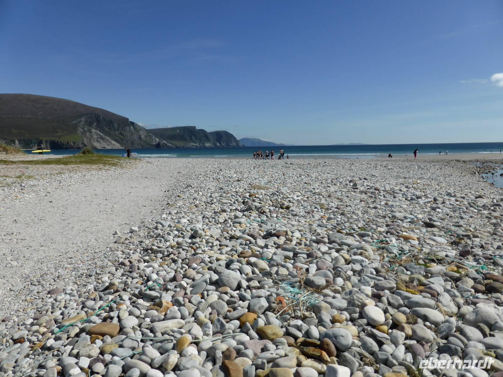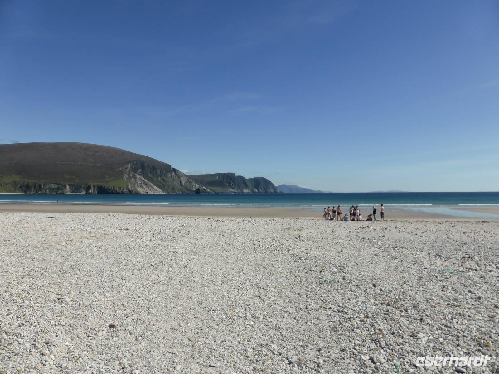 die Insel Insel Achill Island, auf der Heinrich Böll in den 50er Jahren mit seiner Familie lebte, auf dem Programm. Am Atlantic Drive, einer berühmten Panoramastraße, legten wir zwei längere Fotostopps ein. Anschließend ging es nach Keel, dem wohl schönsten Ort der Insel mit einem kilometerlangen weißen Sandstrand. Das Wetter war fantastisch und der Spaziergang am Strand bleibt ein unvergessliches Erlebnis! Auf unserer Rückfahrt zum Festland wählten wir die nördliche Strecke über Doogort, dem Aufenthaltsort Heinrich Bölls. Über den Achill Sound ging es dann wieder auf das Festland zurück und weiter entlang der Clew Bay und über Newport zu unserem Hotel in Ballina.