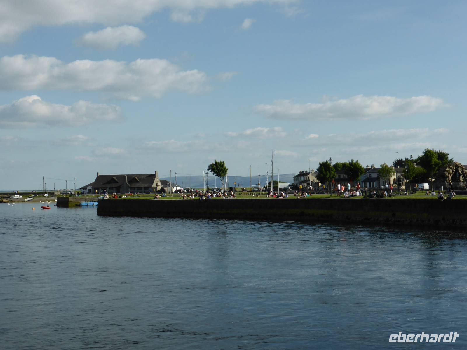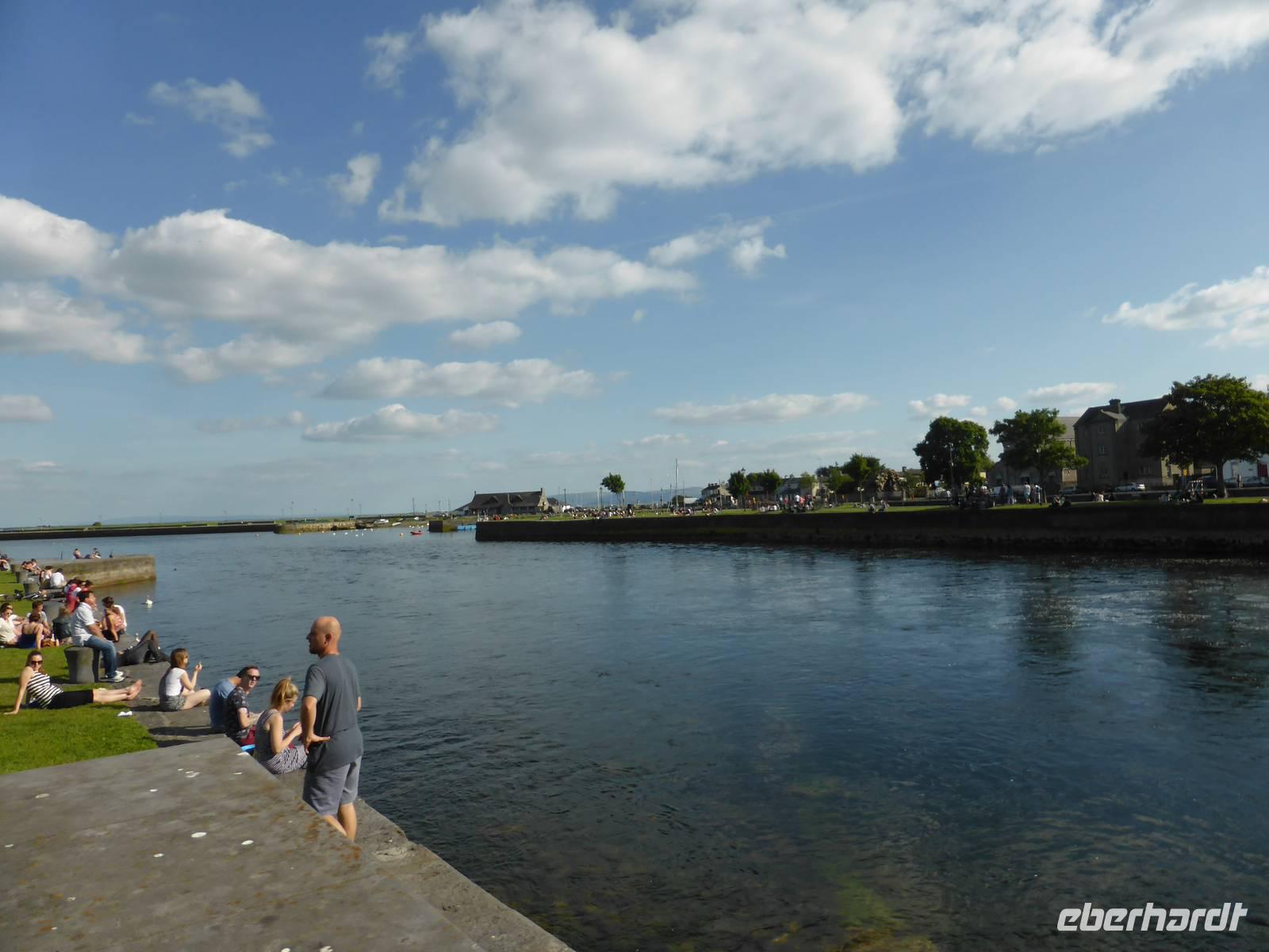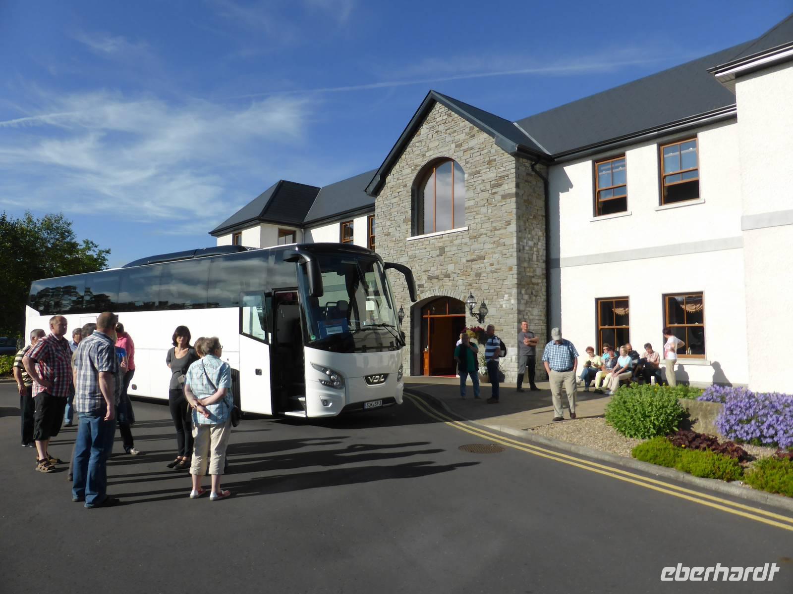 Nach unserer Ankunft und der Passkontrolle im Fährterminal in Hull fuhren wir auf der Motorway M 62 in westliche Richtung durch Nord- und Mittelengland. Kaum merklich überquerten wir dabei den Pennines-Gebirgszug, welchem England seine großen Kohlevorkommen verdankt. Gegen Mittag machten wir einen längeren Aufenthalt in Chester. Wie an jedem Wochentag begrüßte der Town-Cryer alle Gäste der Stadt auf dem kleinen Platz vor der St. Peter Church. Anschließend war Freizeit für ein individuelles Erkunden der von schönen Fachwerkhäusern geprägten Altstadt. Von Chester aus fuhren wir dann entlang der nordwalisischen Küste auf die Insel Anglesey, wo wir in Llanfairpwllgwyngyllgoerychwyrndrob-wllllantysiliogogogoch, einem Ort mit 58 Buchstaben, Station machten. Da keiner von uns diesen langen Ortsnamen aussprechen konnte, baten wir eine örtliche Verkäuferin, uns den vollständigen Namen vorzusprechen. Für sie war es anscheinend die einfachste Sache der Welt und begeistert verabschiedeten wir sie mit einem kräftigen Applaus. Anschließend fuhren wir nach Holyhead und von dort mit der Schnellfähre „Jonathan Swift" über die Irische See nach Dublin. Gegen 19.00 Uhr kamen wir an und fuhren zu unserem Hotel „Jurys Inn". Die Fluggäste unserer Gruppe waren gegen Mittag auf dem Dubliner Flughafen gelandet und saßen bei unserem Eintreffen bereits beim Abendessen. Von nun an war unsere Reisegruppe komplett.