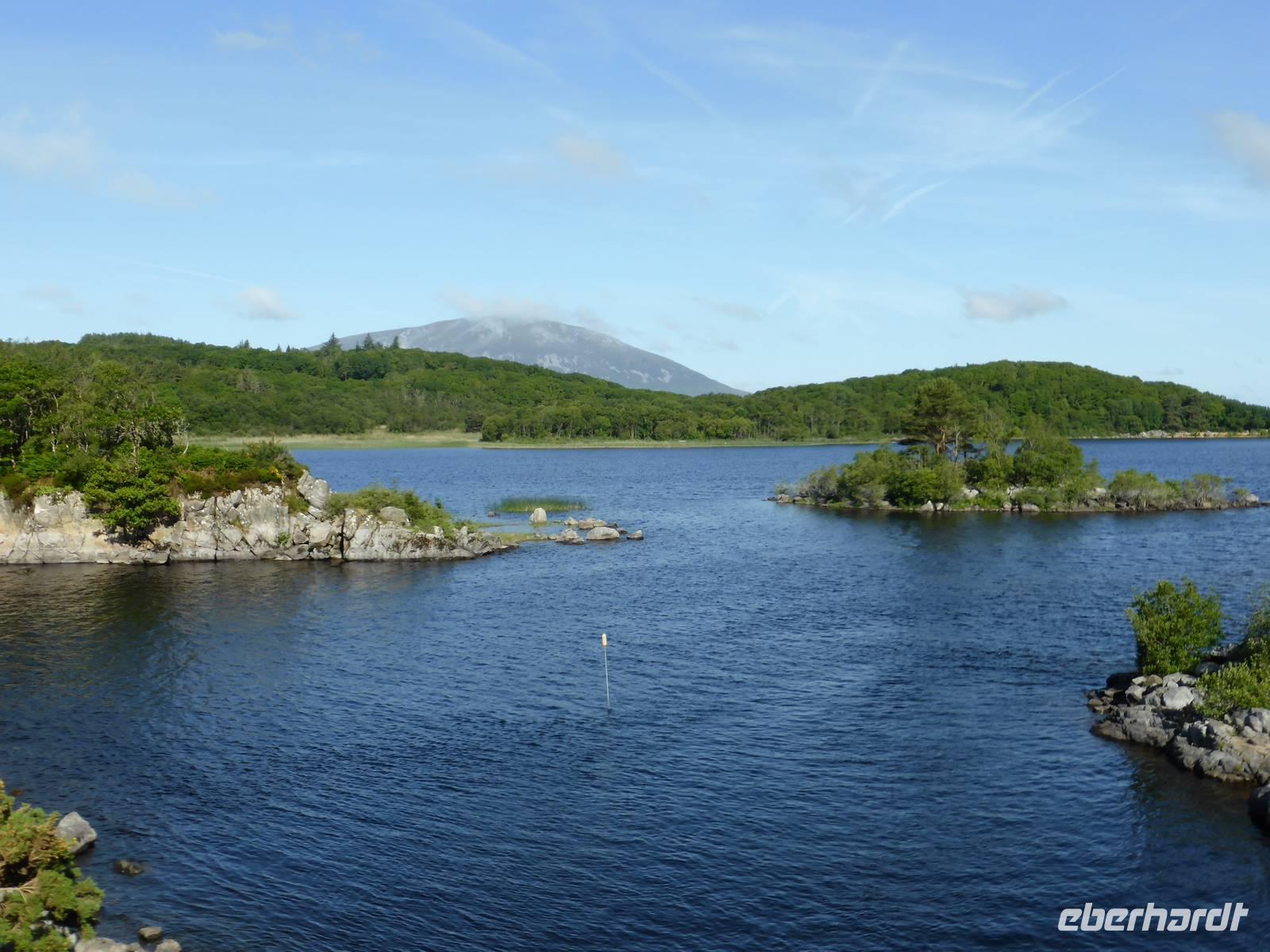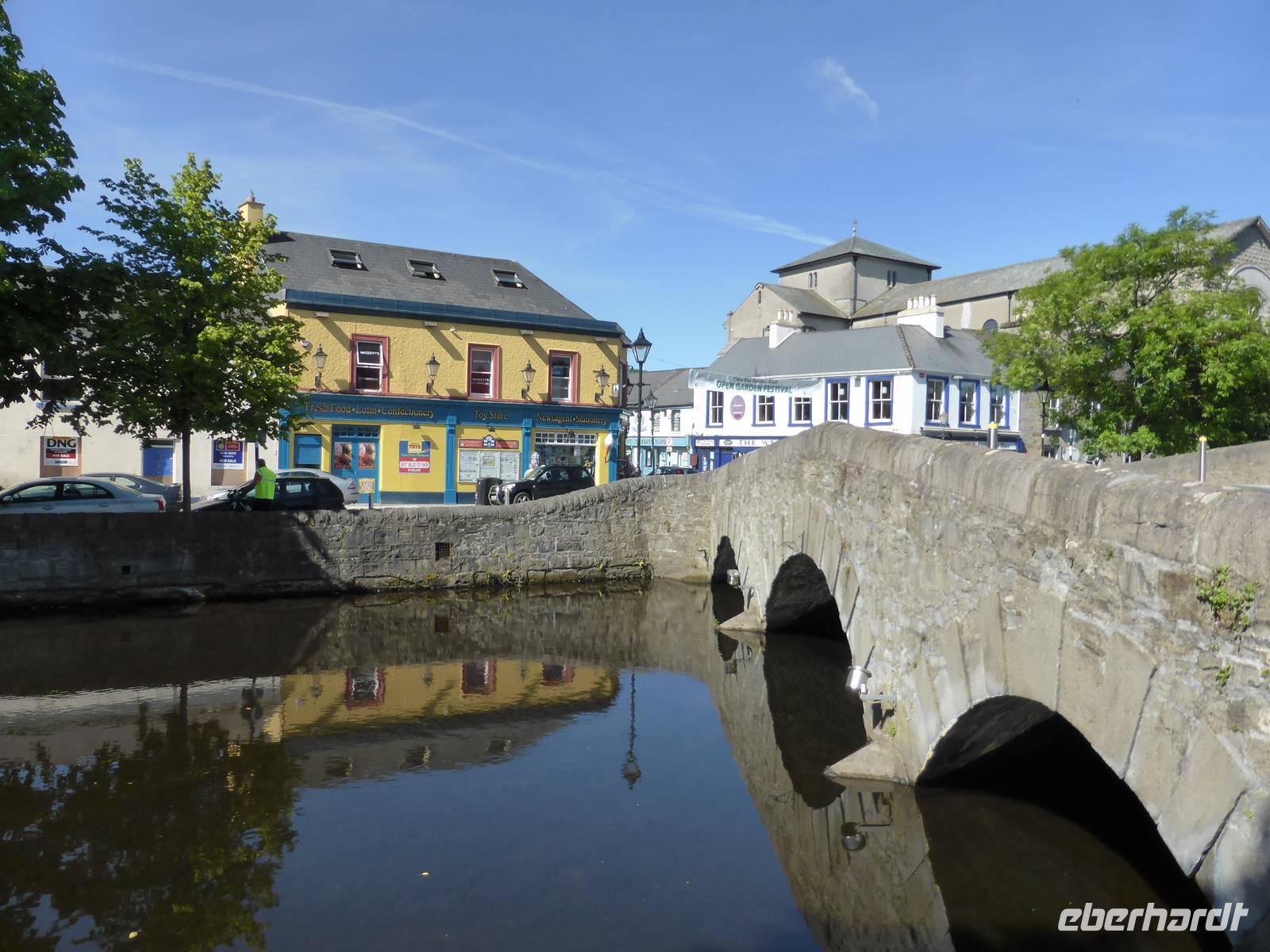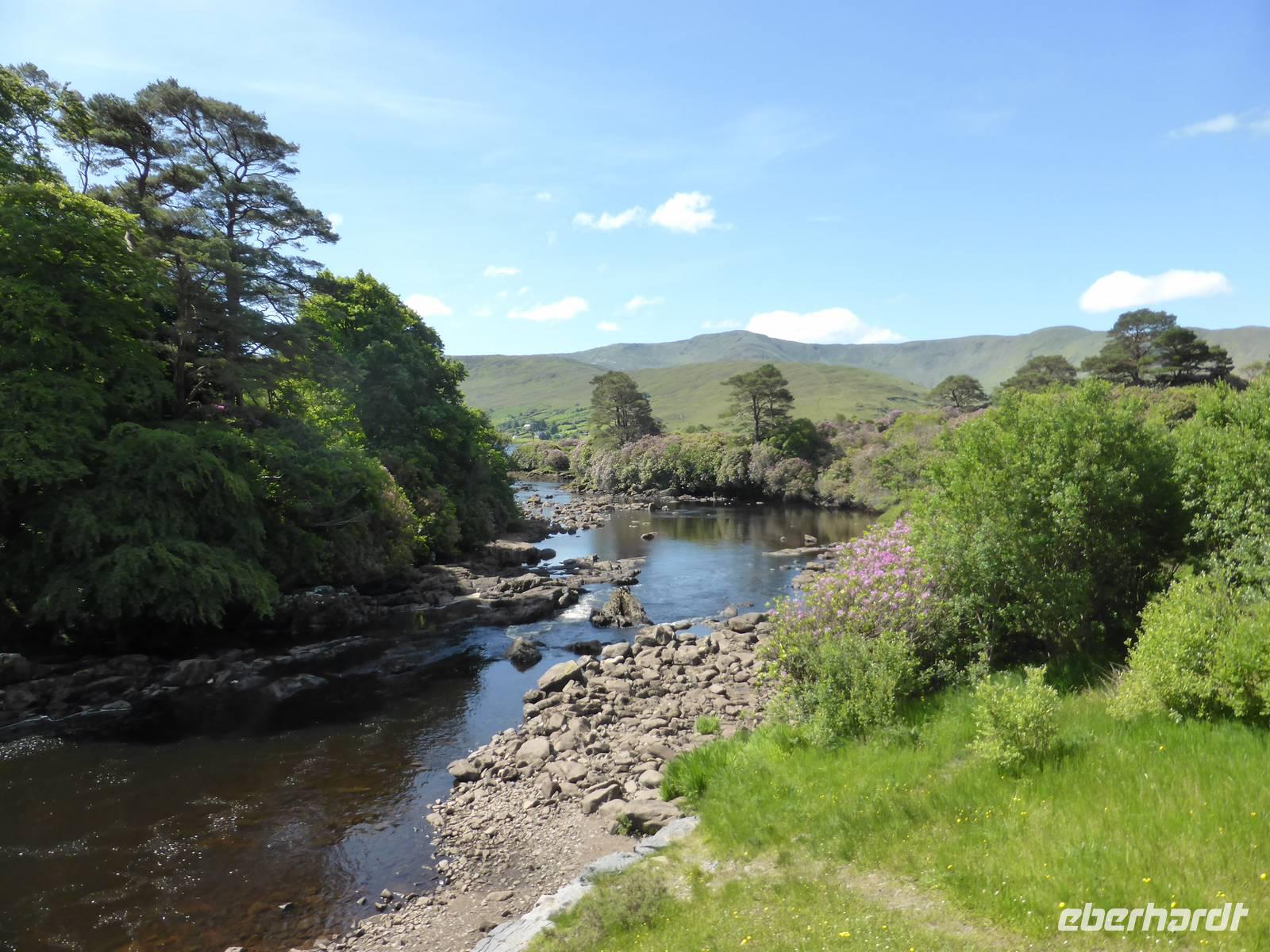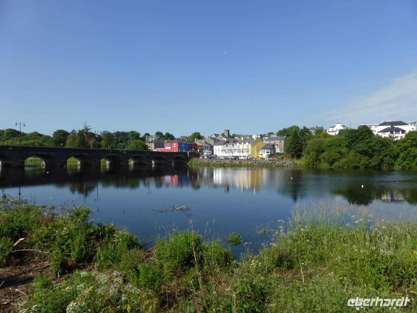 Am Morgen hieß es Abschied nehmen von unserem Hotel in Ballina und Weiterfahrt in Richtung Connemara. An der Pontoon Bridge, zwischen den beiden Seen Lough Conn und Lough Cullin, legten wir einen ersten Fotostopp ein. Anschließend fuhren wir in die schöne Stadt Westport zu Füßen des Croagh Patrick, Irlands heiligen Berg. Die Stadt Westport wurde planmäßig auf dem Reißbrett entworfen, basierend auf einem Achteck im Zentrum. Inmitten dieses Achteckes steht auf einer Säule die Statue des Heiligen St. Patrick. Von Westport aus ging es zu unserem nächsten Fotostopp zu den Aasleagh Falls am River Erriff und von dort zur Kylemore Abbey. Das Schloss wurde in der 2.Hälfte des 19. Jahrhunderts vom wohlhabenden Prominentenarzt Henry als Landsitz für seine Frau erbaut. Seit Anfang des 20. Jahrhunderts befand sich das Anwesen im Besitz eines Benediktinerordens und seit einigen Jahren wird das Anwesen staatlich verwaltet. Zur herrlichen Parkanlage mit der Abbey (ehemaliges Schloss), dem See und der Kirche gehören auch die victorianischen Gartenanlagen und Gewächshäuser.