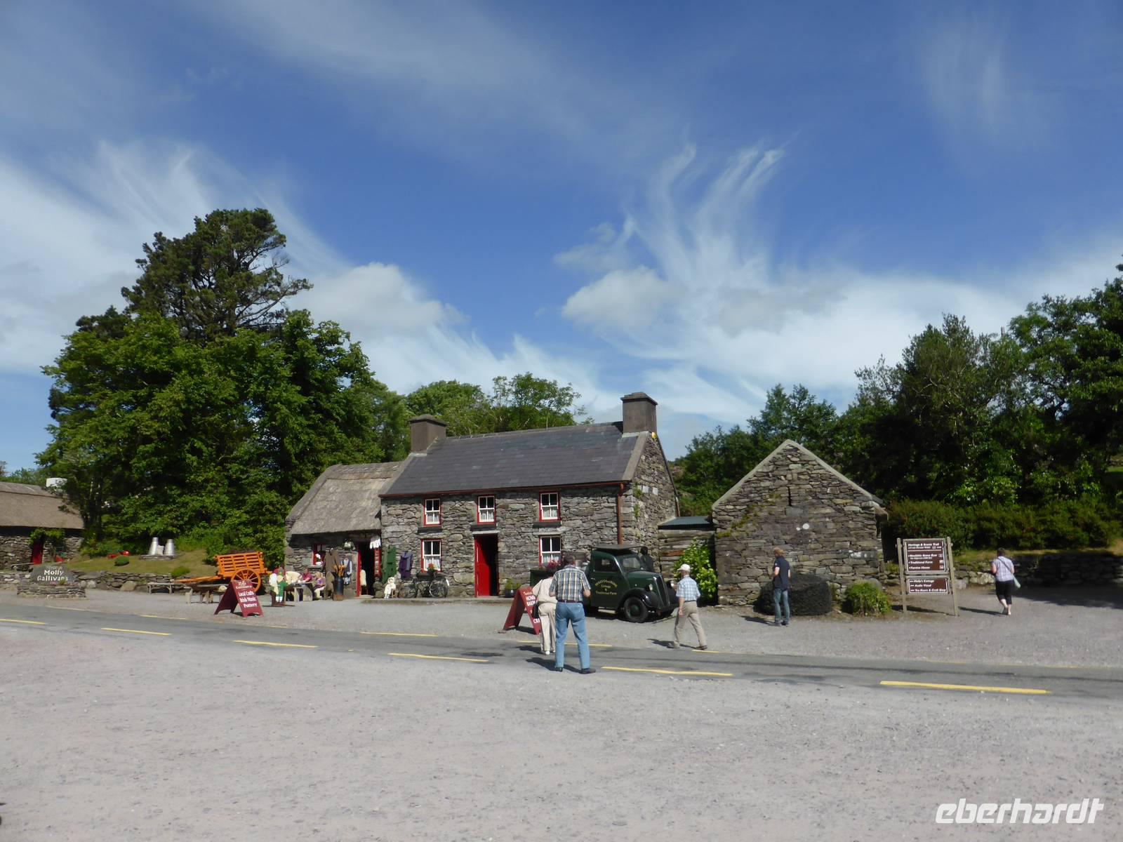 Nach dem Frühstück begann unser fakultativer Ausflug nach Garinish Island, an dem der größte Teil unserer Gruppe teilnahm. Den ersten Besichtigungsstopp legten wir bei Molly Callivan's Cottage ein. Molly war bekannt für das Brennen ihres Poitin- Whyskeys, wodurch sie sich und ihren sieben Kindern das Überleben sicherte. Anschließend ging es in den Hafen von Glengarriff zum Fährboot „Harbour Queen". Auf unserer Überfahrt zur Insel Garinish Island fuhr der Kapitän besonders langsam an den Felsbänken vorbei, damit wir die Seehunde gut sehen und fotografieren konnten. Nach unserer Ankunft spazierten wir durch den italienischen Garten mit römischer Villa, hinauf zum griechischem Tempel und durch ein tropisches Pflanzenparadies, welches „Glückliches Tal" genannt wird. Zurück in Glengarriff war Freizeit für die Mittagspause und einen individuellen Bummel durch die kleine Stadt. Anschließend fuhren wir auf dem „Ring of Beara" zum Healy Pass (330 m) hinauf. Hier hielten wir gleich zweimal für Fotostopps. Die Aussicht über die spektakuläre Landschaft war einfach zu schön! Vom Pass aus fuhren wir wieder hinunter auf die Nordseite des „Ring of Beara" und von dort weiter über Kenmare zur „Muckross Traditional Farm". Auf dem Gelände gibt es mehrere Bauernhäuser verschiedenster Größe zu sehen, vollgestopft mit nostalgischem Arbeitsgerät. Für diejenigen, denen der Spaziergang zu den einzelnen Gehöften zu anstrengend war, stand ein Bus-Transfer bereit.