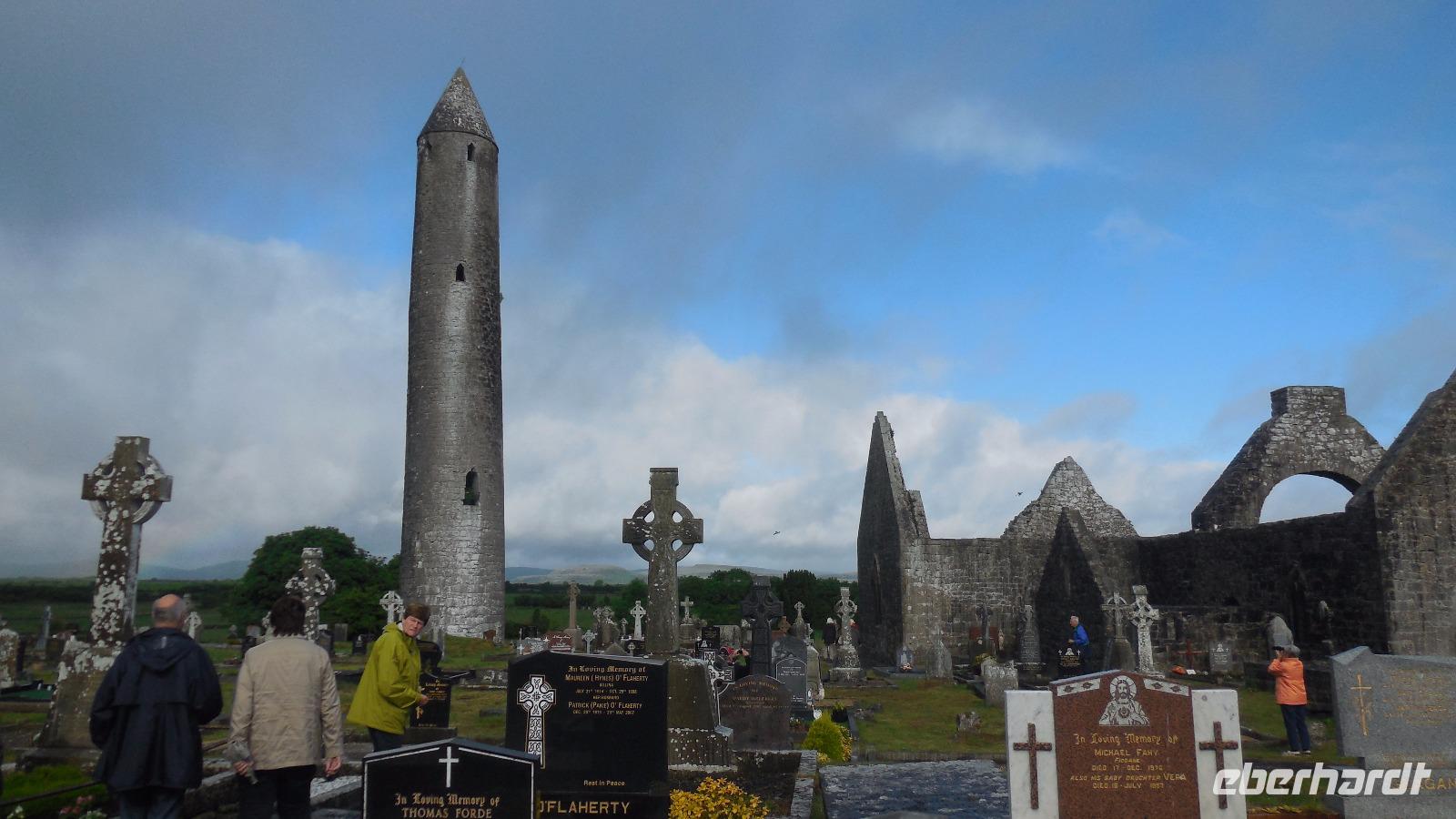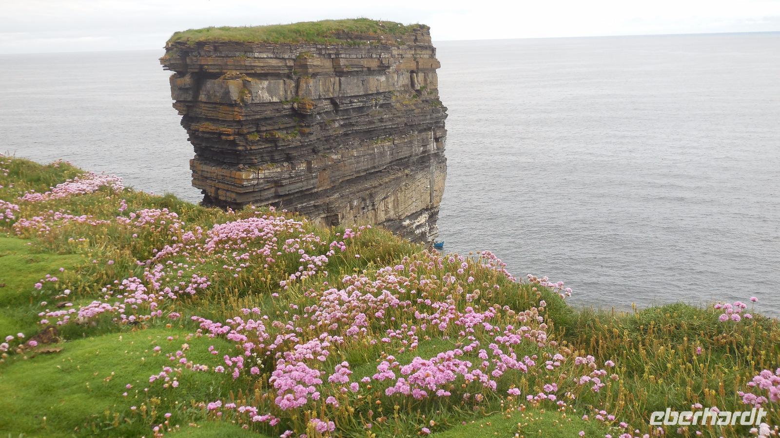 Da es nicht regnete, konnten wir unterwegs noch einen Fotostopp beim Rundturm in Killala sowie einen Abstecher bei Downpatrick's Head einlegen und das dichte weiche Moospolster unter unseren Füßen spüren. Dann ging es weiter zur abgelegenen Achill Island an den Strand. Hier lebte Heinrich Böll und schrieb sein „Irisches Tagebuch". Abends erwartete uns ein Drei-Gänge-Menü in unserem Hotel in Ballina.