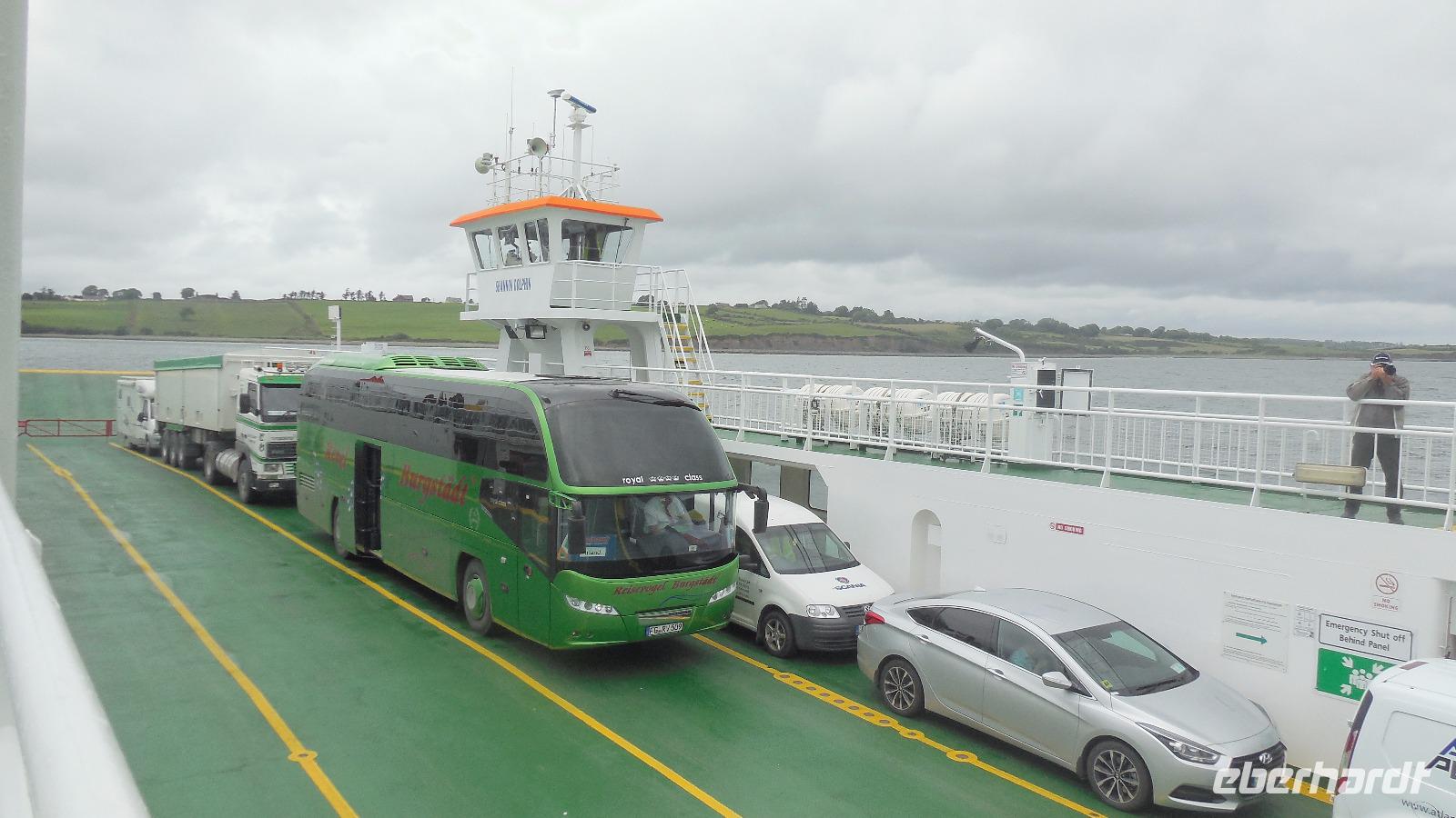 Nach einem ausgiebigen Frühstück beobachteten wir das Anlegen der Fähre im englischen Kingston-upon-Hull.Von dort ging es an der modernen Humberbridge vorbei, quer durch England. In der mittelalterlich geprägten Stadt Chester mit den typischen „Rows" - Arkaden über ganze Straßenzüge - unternahmen wir einen kleinen Stadtspaziergang. Dann ging die Fahrt weiter durch Wales, über die Insel Anglesey nach Holyhead. Dort brachte die Schnellfähre „Dublin Swift" uns nach Dublin. Im Hotel trafen wir dann die Fluggäste unserer Gruppe.