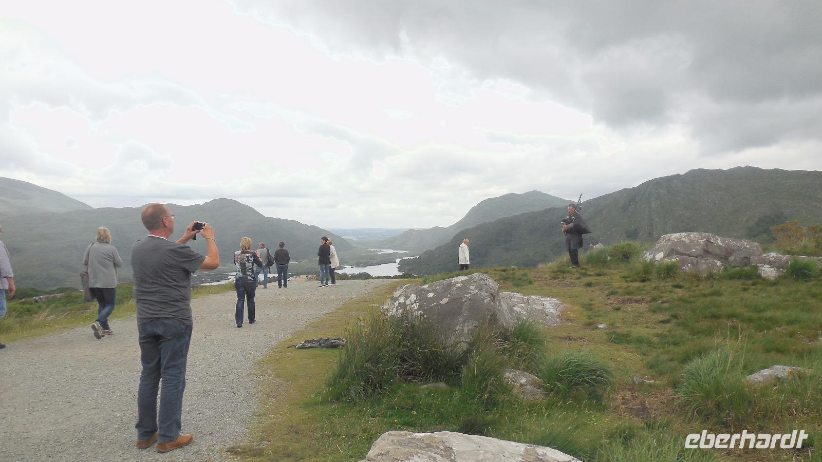 Heute zeigte unser örtlicher Reiseleiter Jan uns den Ring of Kerry. Wir" erklommen" ein Ringfort, fotografierten uns mit Charlie Chaplins Statue, stoppten im hübschen Ort Sneem und besuchten zusätzlich noch eine Schaffarm. Es war interessant zu sehen, mit welcher Freude die Hütehunde ihre Arbeit versehen und wie Schafe geschoren werden. Am „Ladies View" war überraschenderweise ein Dudelsackspieler zu hören. Auf dem Heimweg hatten wir noch Zeit für einen Spaziergang in Killarney, ehe es ins Hotel zum Abendessen ging.