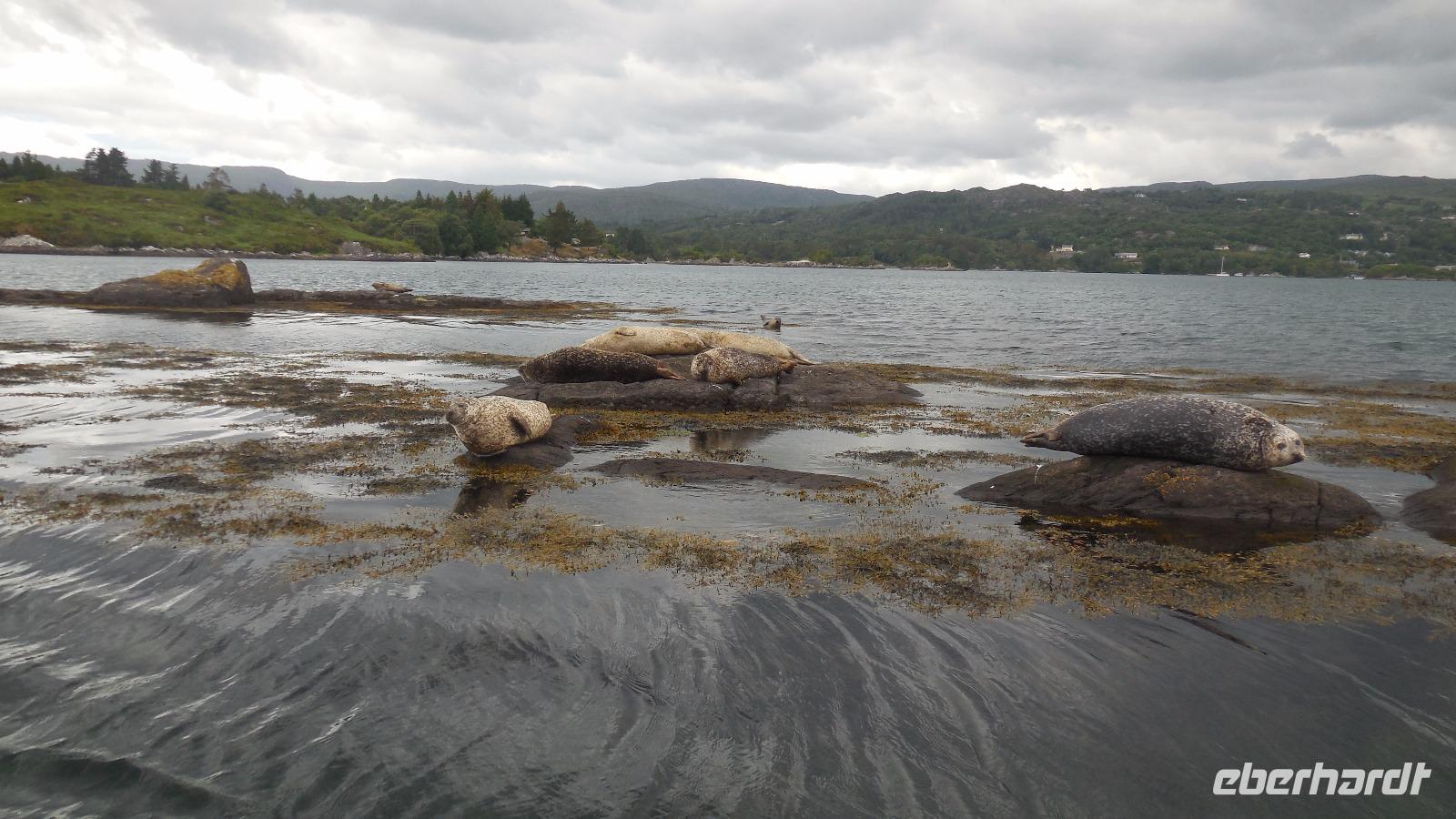 Zunächst fuhren wir mit unserem Bus über den „wilden" Healy-Pass auf dem Ring of Beara. Wie gut, dass wir einen so versierten Fahrer hatten! Von Glengariff ging es mit der Fähre zur Insel. Alle waren gespannt, ob wir auf dem Weg dorthin Robben sehen würden. Sie lagen faul auf den Felsen und ließen sich überhaupt nicht von uns beeindrucken. Ein Spaziergang auf der Insel führte uns zu vielen schönen Ausblicken, in verschiedene Gartenarten mit Pavillions, Wasserbecken und fremdartigen Pflanzen. Man konnte sich kaum vorstellen, das dieses Naturparadies einmal künstlich angelegt wurde. Zum Abschied winkte uns auf der Rückfahrt tatsächlich eine Robbe zu. Der Nachmittag gehörte der Farm des Muckross-House und dessen Garten.
