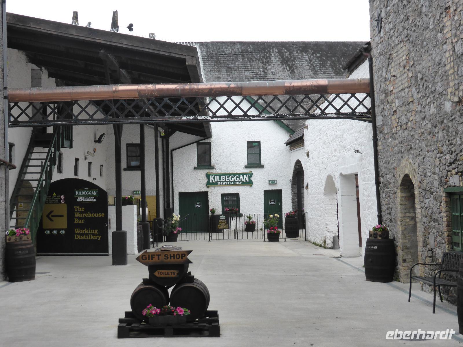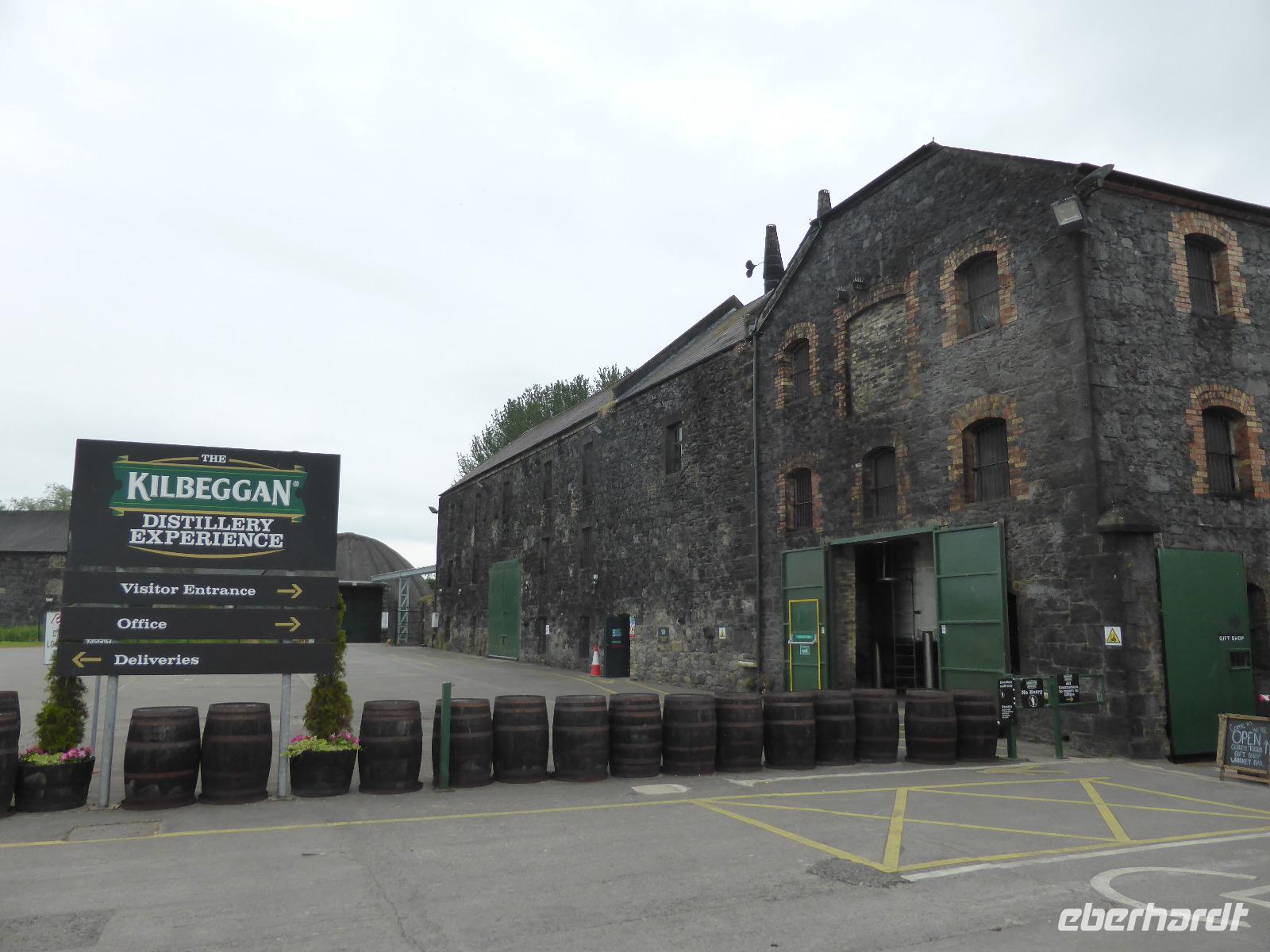 Gestärkt durch das irische Frühstück starteten wir Richtung Westirland. In der Locke´s Distillery in Kilbeggan legten wir unseren ersten Stopp ein. Diese Brennerei ist die älteste lizenzierte Whiskeybrennerei in Irland. Sie wurde 1757 am Fluss Brosna im Co. Westmeath, der geografischen Mitte Irland gegründet. Nach gut 200 Jahren erloschen die Feuer in der Brennerei. Zwei Jahrzehnte später sanierte man das Industriedenkmal und machte es als Museumsbrennerei der Öffentlichkeit zugänglich. Da es sich zum Touristenmagnet entwickelte, begann man wieder Whiskey herzustellen. 2007 sprudelte der erste Kilbeggan New Make Spirit. Bei einer interessanten Führung konnten wir den Museumsteil besichtigen mit der alten Dampfmaschine. Im ehemaligen Lagerhaus wurde die neue Brennerei eingerichtet. Hier ist immer noch die älteste Brennblase in Gebrauch. Natürlich durfte am Ende auch eine Kostprobe nicht fehlen. Als kleines Präsent konnte jeder sein Probierglas mitnehmen. Mit diesem ersten schönen Erlebnis setzten wir unsere Reise fort.