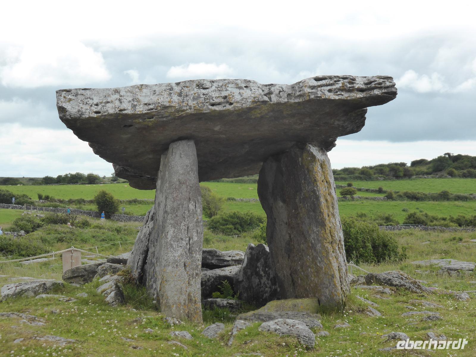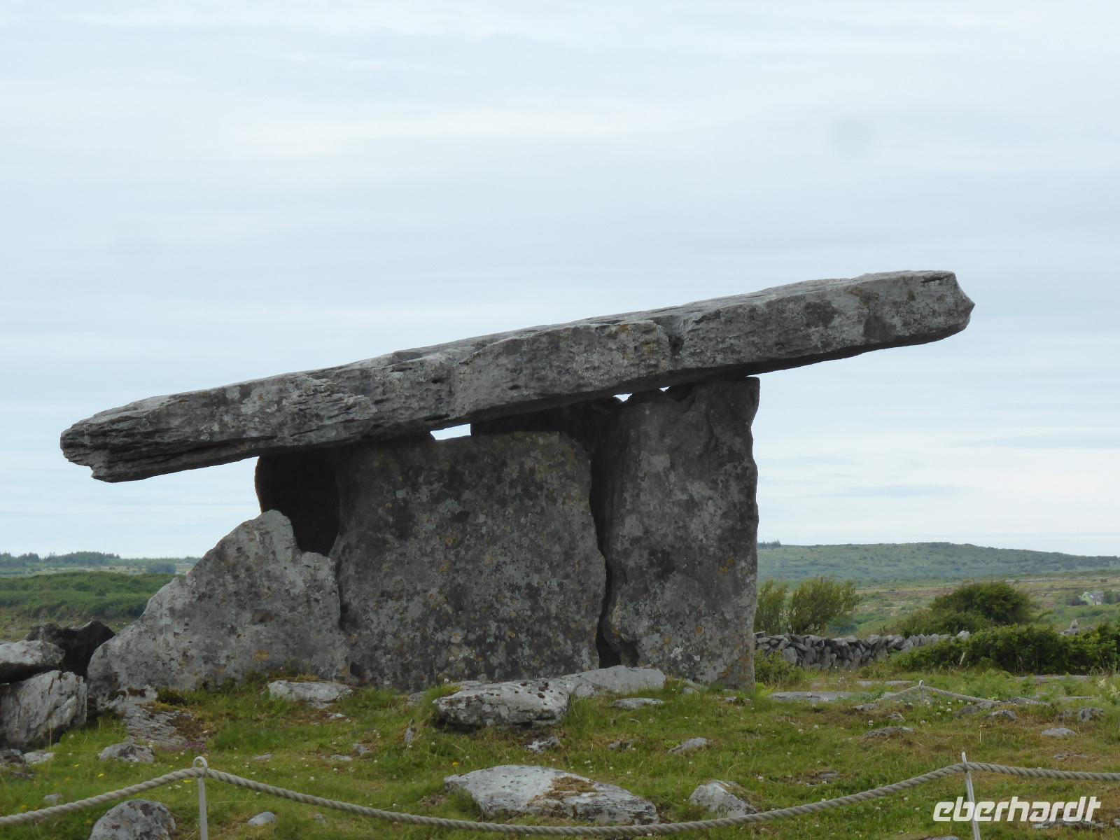 Einer der landschaftlichen Höhepunkte der Reise stand heute auf dem Programm. Zuerst durchquerten wir das Gebiet The Burren. Der Burren erinnert an einen riesigen Steingarten und gehört zu den schönsten natürlichen Felslandschaften Irland. Der Name ist aus dem irischen Wort bhoireann abgeleitet und bedeutet „steinig" - also eine treffende Bezeichnung. Obwohl vorchristliche Siedler die Erosion der Hügel und Kalksteinplateaus förderten, indem sie dort Vieh weiden ließen, konnten in den Felsspalten seltene Pflanzen die ökologischen Schäden überleben. Eine einzigartige Lebensgemeinschaft aus arktischen und mediterranen Pflanzen entwickelte sich nebeneinander. Das Gebiet ist übersät mit zahlreichen prähistorischen Zeugnissen, darunter befestigte Anwesen wie Ring Forts und Dolmen. Der Dolmen von Poulnabrone ist 5000 Jahre alt und diente als Begräbnisstätte. Über Lisdoonvarna bekannt durch den alljährlichen Heiratsmarkt erreichten wir die berühmten Klippen von Moher.