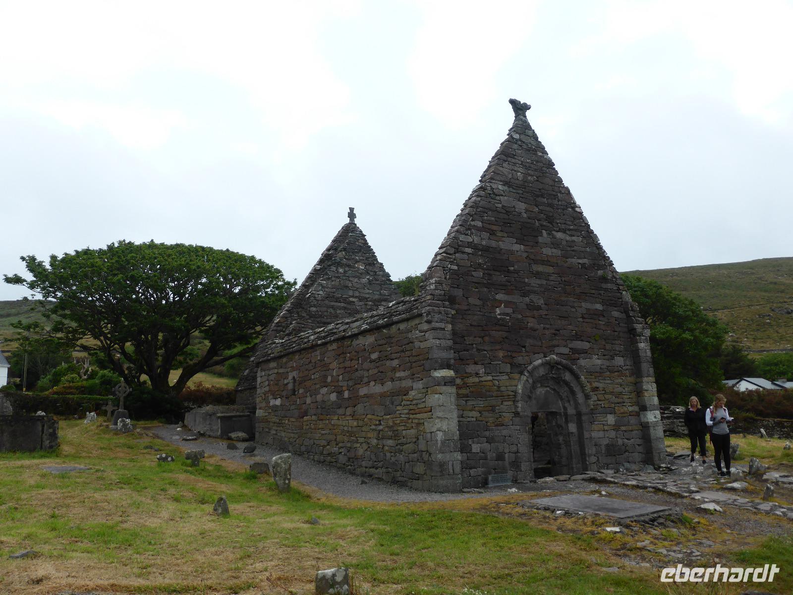 Entlang des Slea Head Drives erkundeten wir die Westküste der Dingle Halbinsel. Die vorgelagerten Blasket Islands wurden 1953 zwangsentsiedelt, da sie als nicht bewohnbar eingestuft wurden. Die Dingle Halbinsel ist bekannt für die zahlreichen frühchristlichen Bienenkorbhüten, das Gallarus Oratory sowie die romanische Kirche von Kilmakedar. An dieser Kirche aus dem 12. Jahrhundert legten wir einen Stopp ein, um den Sonnenuhr-, Ogham- sowie Alphabetstein und das große Steinkreuz zu besichtigen. Nach einen kurzen Komfortstopp in Dingle setzten wir unsere Weiterreise vorbei am langen Strand von Inch nach Muckross House fort.