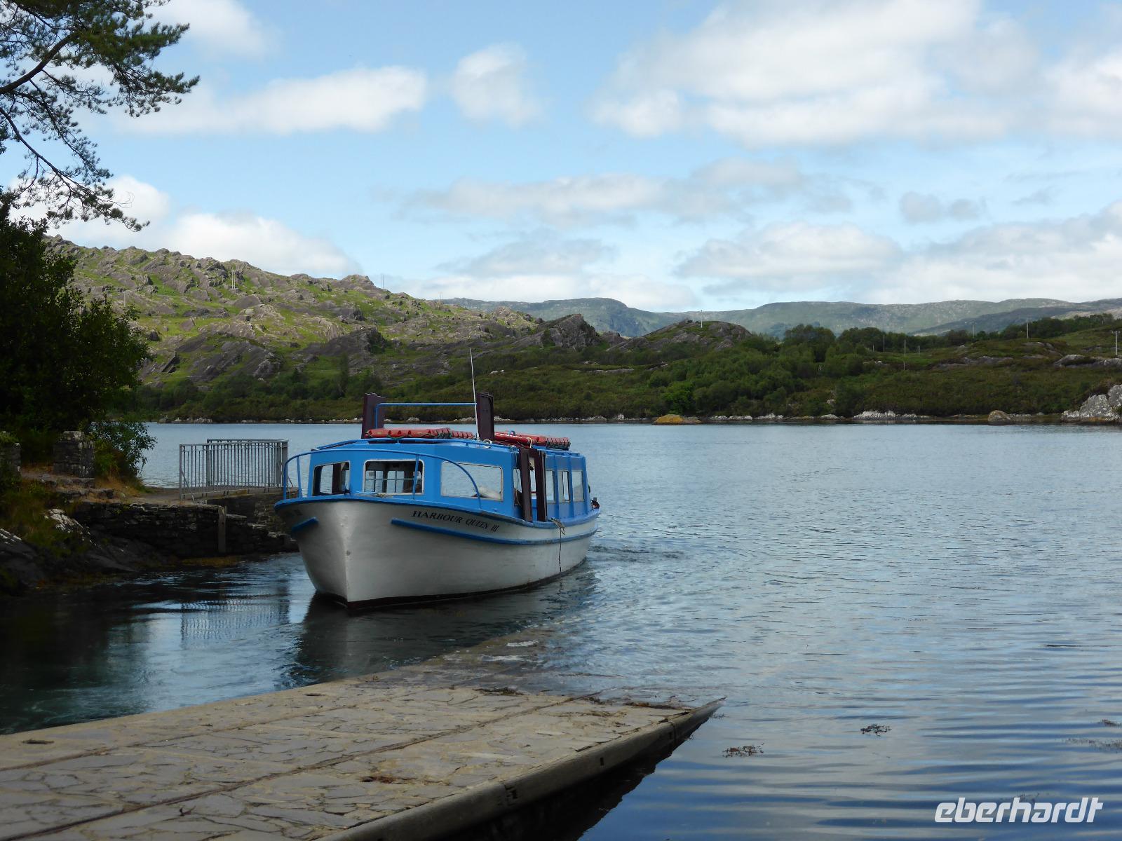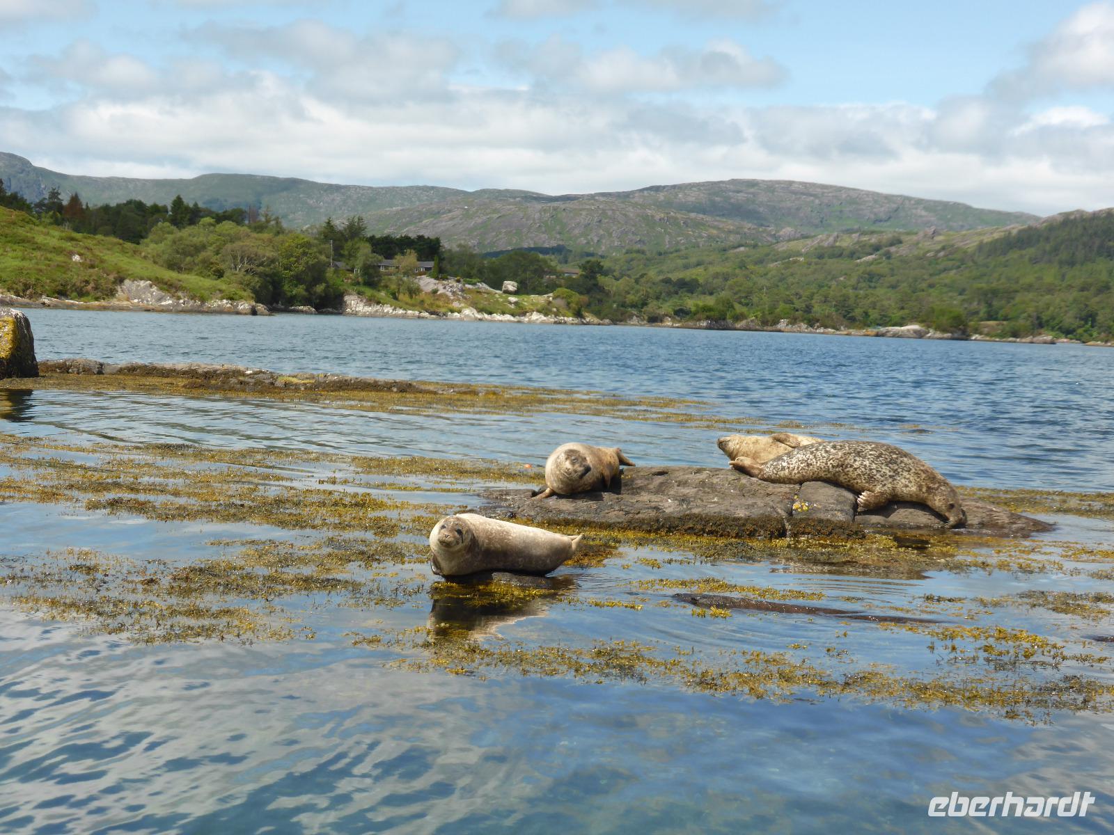 Bei strahlendem Sonnenschein sowie mit unserer örtlichen Reiseleiterin Eileen starteten wir zu unserer Rundfahrt entlang der Beara Halbinsel. Über den Cahapass gelangten wir nach Kenmare. Diese kleine Stadt ist berühmt für Ihre Spitzenarbeiten. Entlang der Nordküste mit Blicken zum Ring of Kerry erreichten wir Eyeries, ein kleines Dorf mit zahlreichen bunten Häusern. In Castletownbere legten wir einen kurzen Stopp am Hafen mit dem berühmten McCarthy´s Pub ein. Anschließend wurden wir im Ocean Wild Restaurant zum Mittagessen erwartet. In diesem kleinen, von zwei Schwestern geführten, Restaurant genossen wir Seafood Chowder oder Gemüsesuppe sowie köstliches Brown Bread. Entlang der Südküste gelangten wir nach Glengariff zum Pier. Wir wurden bereits vom Boot erwartet, welches und nach Garnish Island bringt. Während der Überfahrt konnten wir Robben beim Sonnenbaden beobachten. Garnish Island wurde 1910 zu einer wunderschönen Parkanlage umgewandelt. Wir bummelten über den italienischen Garten, dem griechischen Tempel sowie dem Martello Tower zum Garten und der Bootsanlegestelle zurück. Ein wunderschöner Abschluss des Tages. Mit dem Schiff kehrten wir an das Festland zurück.