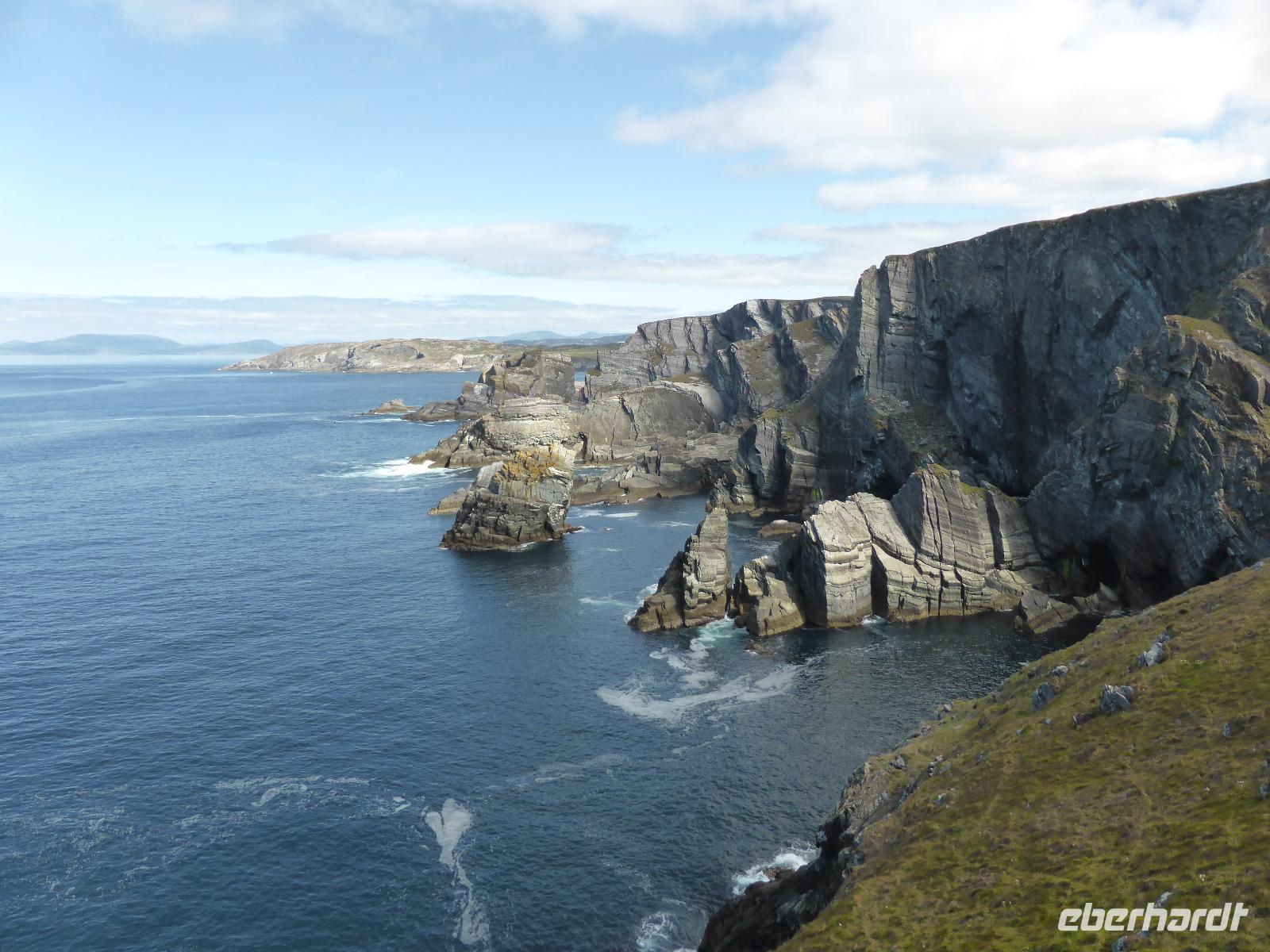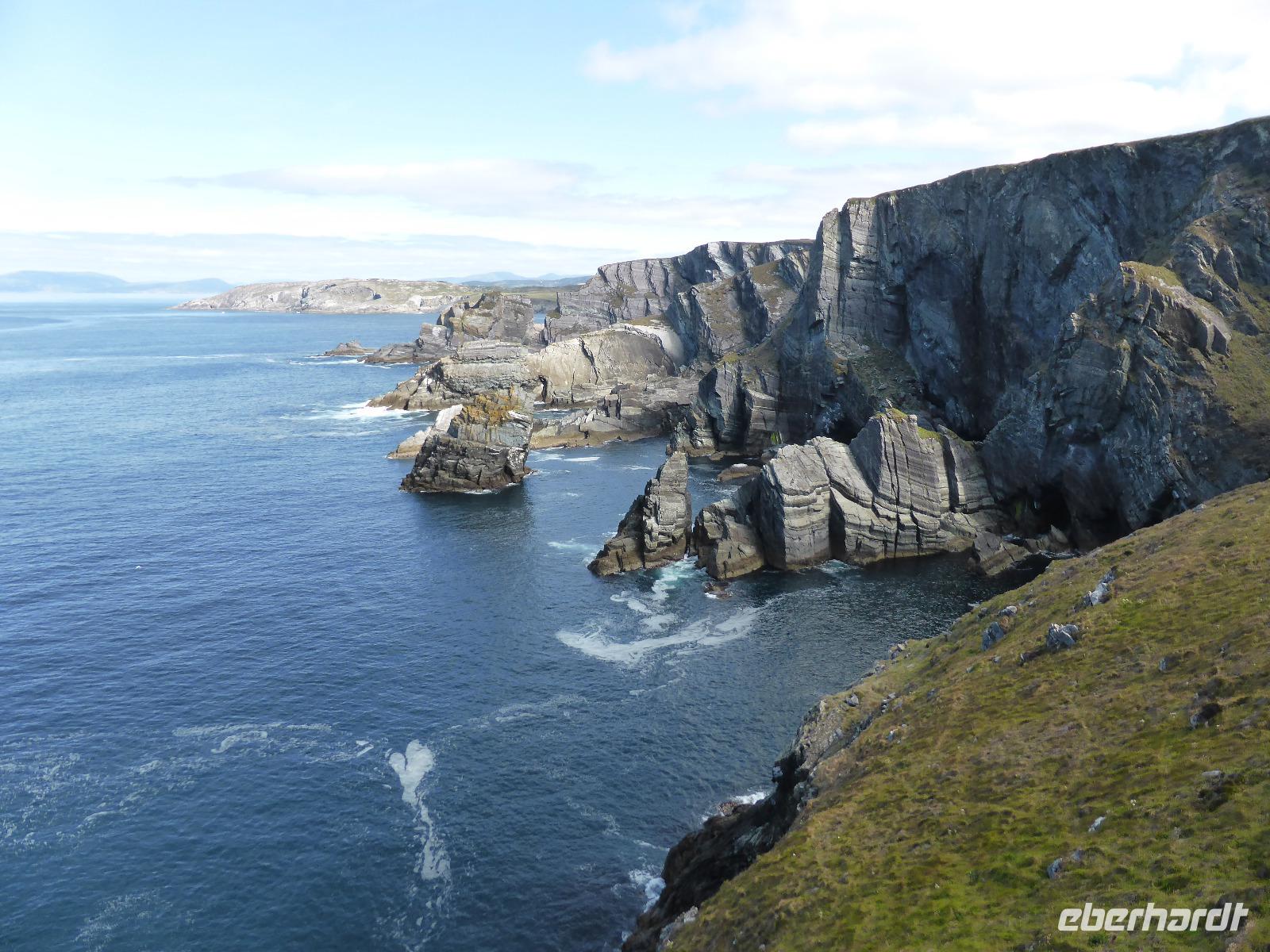 Diese Klippen fallen zwischen Hag´s Head und dem 215 m hohen Aussichtsturm von Cornelius O´Brien auf einer Länge von 7,5 km steil in den Atlantik ab. Dieses Naturschauspiel genossen wir in vollen Zügen. Das Wetter hatte es auch gut mit uns gemeint.