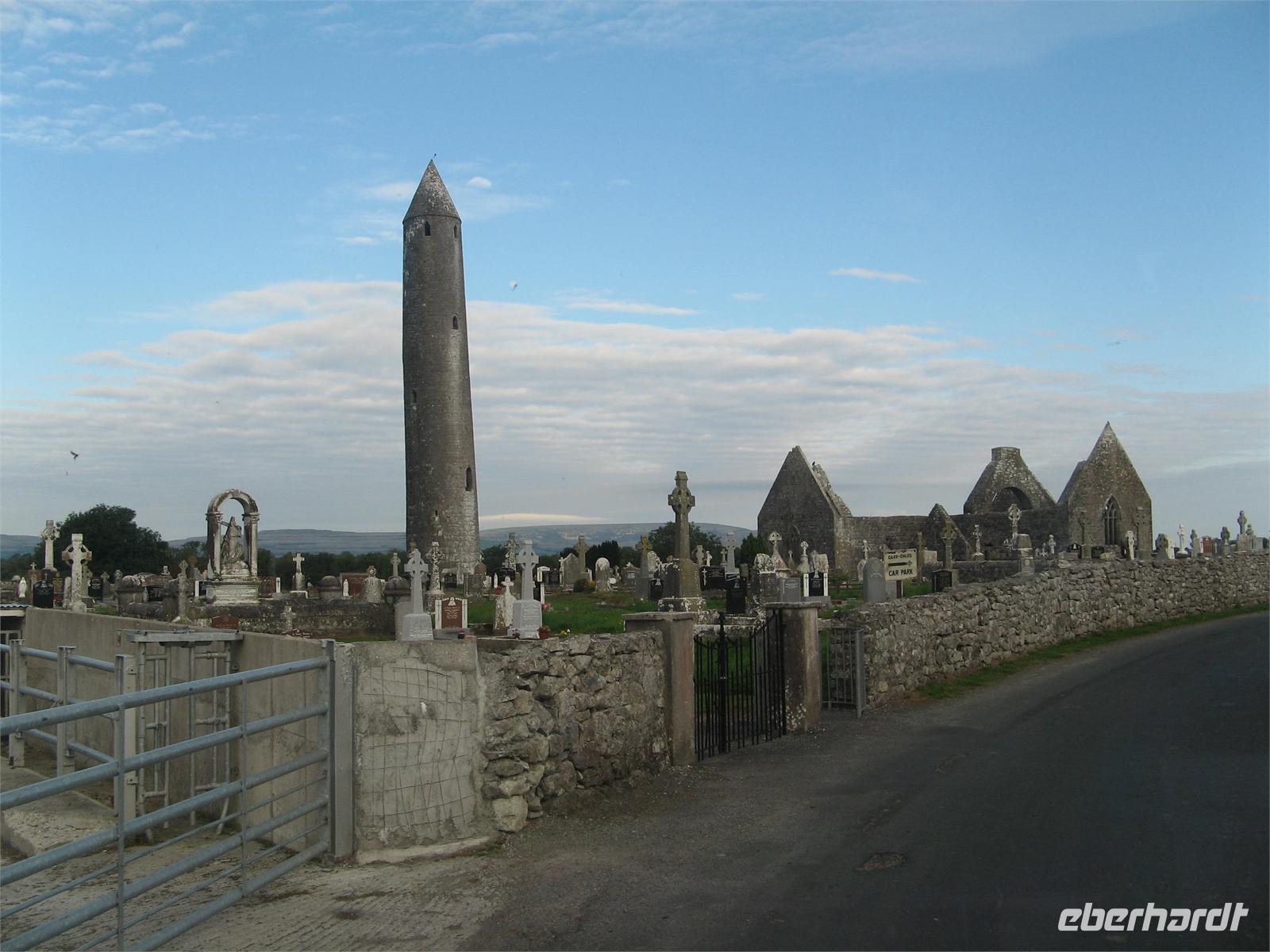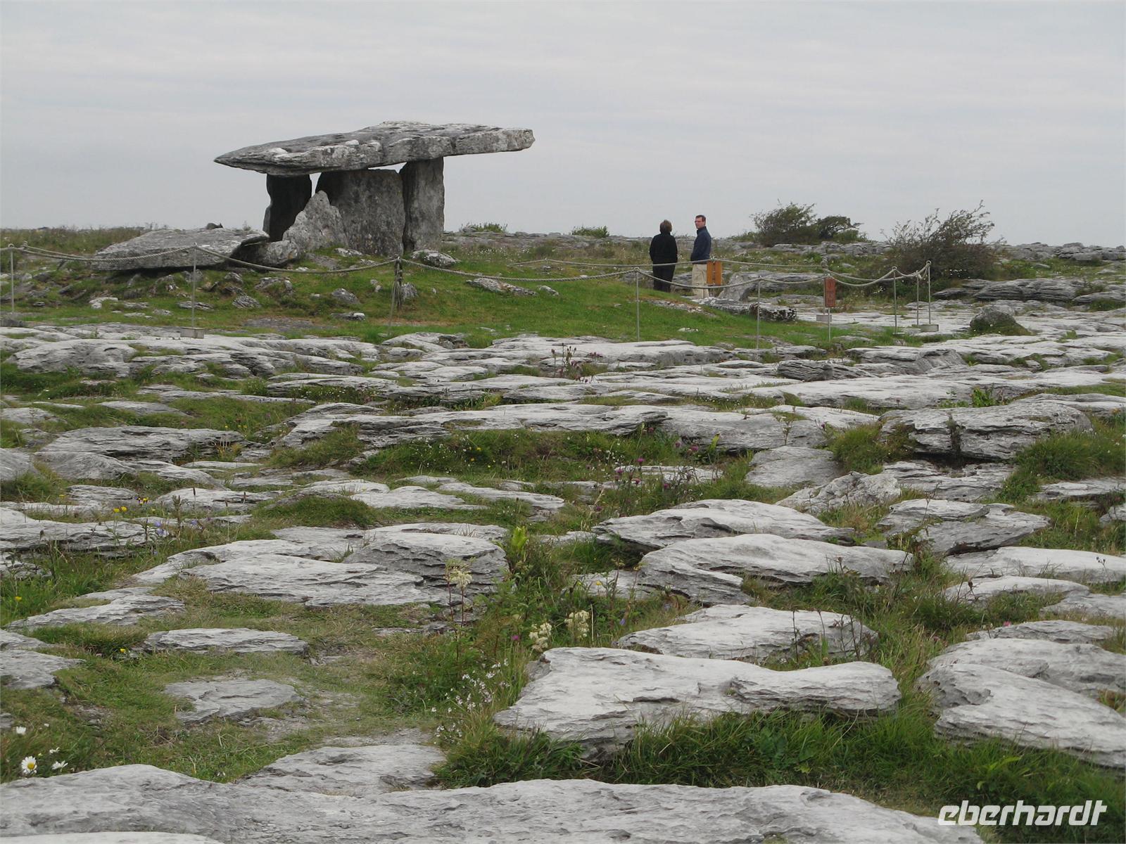 1.9.2011 Morgens ging es zuerst nach Kilmacduagh, zur Klosteranlage vom Heiligen Colman MacDuagh, wo wir den schiefen Rundturm und die Ruinen mehrerer Kirchen bestaunten. Unser Bus brachte uns weiter durch die karge eigenartige Karstlandschaft des Burren. Wir schauten uns Irlands schönstes Megalithgrab, den Poulnabrone Dolmen an. Sein Foto darf in keinem Reisebericht über Irland fehlen.
