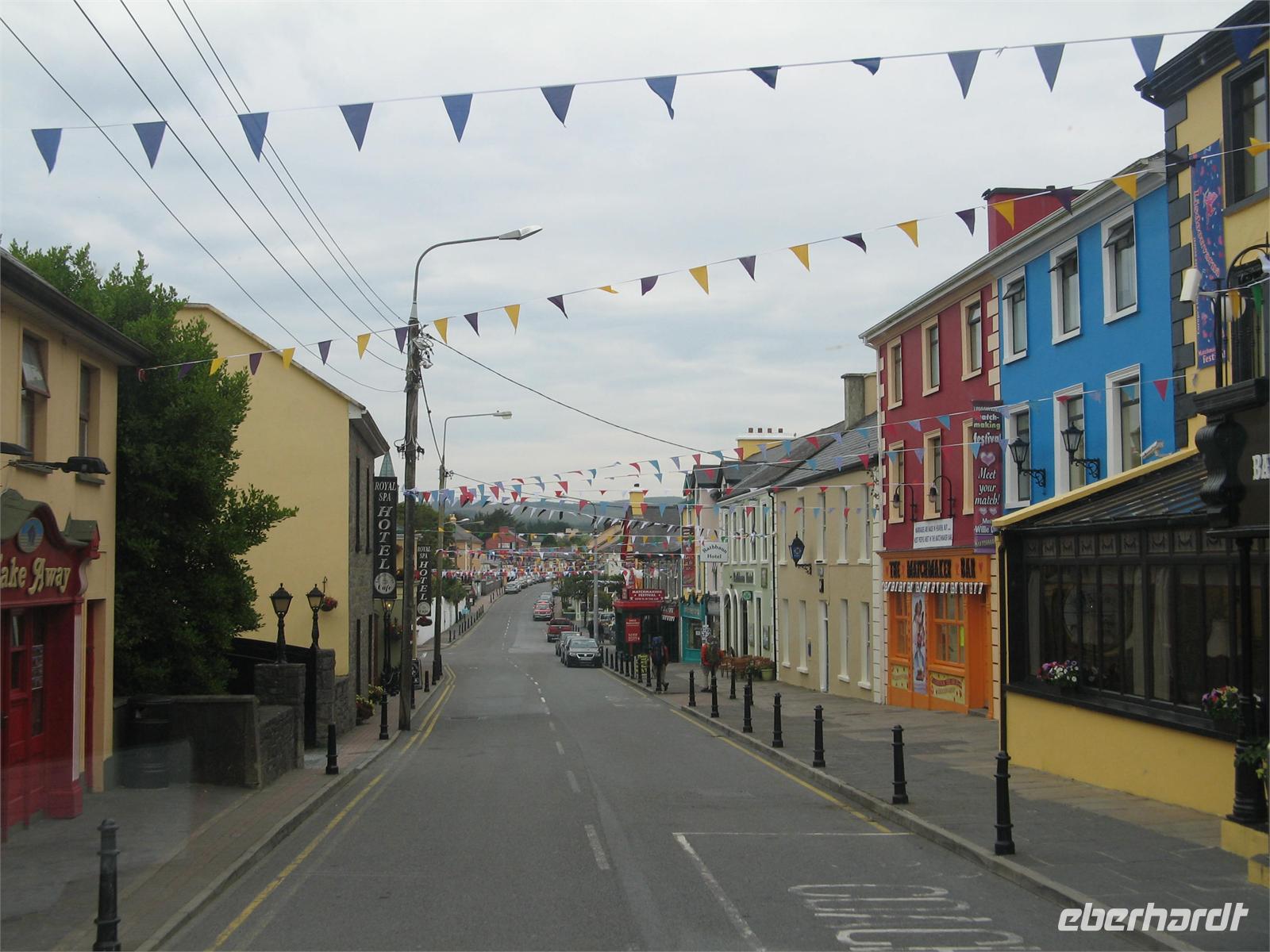 Zurück fuhren wir eine romantische enge Straße durch die Berge der Beara Halbinsel. Den Haely Pass konnten wir auf einer kleinen Wanderung erobern und die herrlichen Ausblicke auf Berge, Seen und Meer genießen. Und in Kenmare mit seinen bunten Häusern konnten wir auch noch umherspazieren.