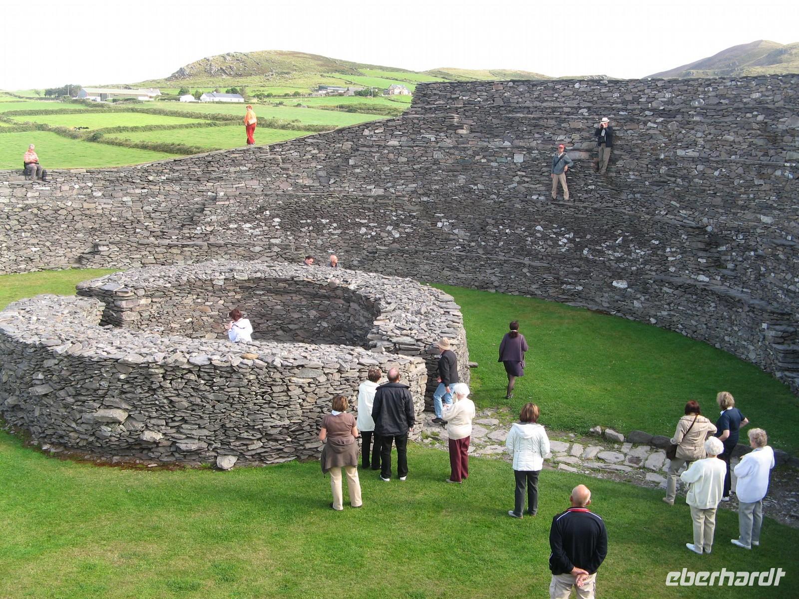 Jan erzählte uns viel über Irland. Er besuchte mit uns bei Cahirsirveen das Ringfort Cahergall. Ein Fotostopp in Waterville mit Charlie Chaplin, der hier oft seinem Urlaub verbrachte, durfte nicht fehlen. Dann ging es hinauf zum Pass und zu einem Restaurant mit traumhaften Küstenblick. Dort konnten wir Irlands Nationalgericht Irish Stew probieren.