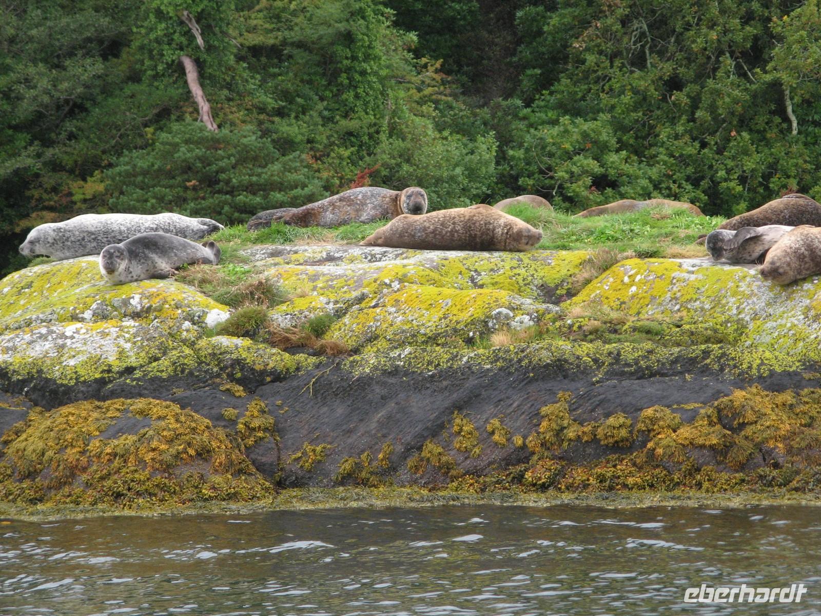 Vorher legten wir noch einige Fotostopps ein. Mit einem kleinen Boot fuhren wir zur Insel, vorbei an kleinen Felsen, auf denen sich viele putzige Robben sonnten.
