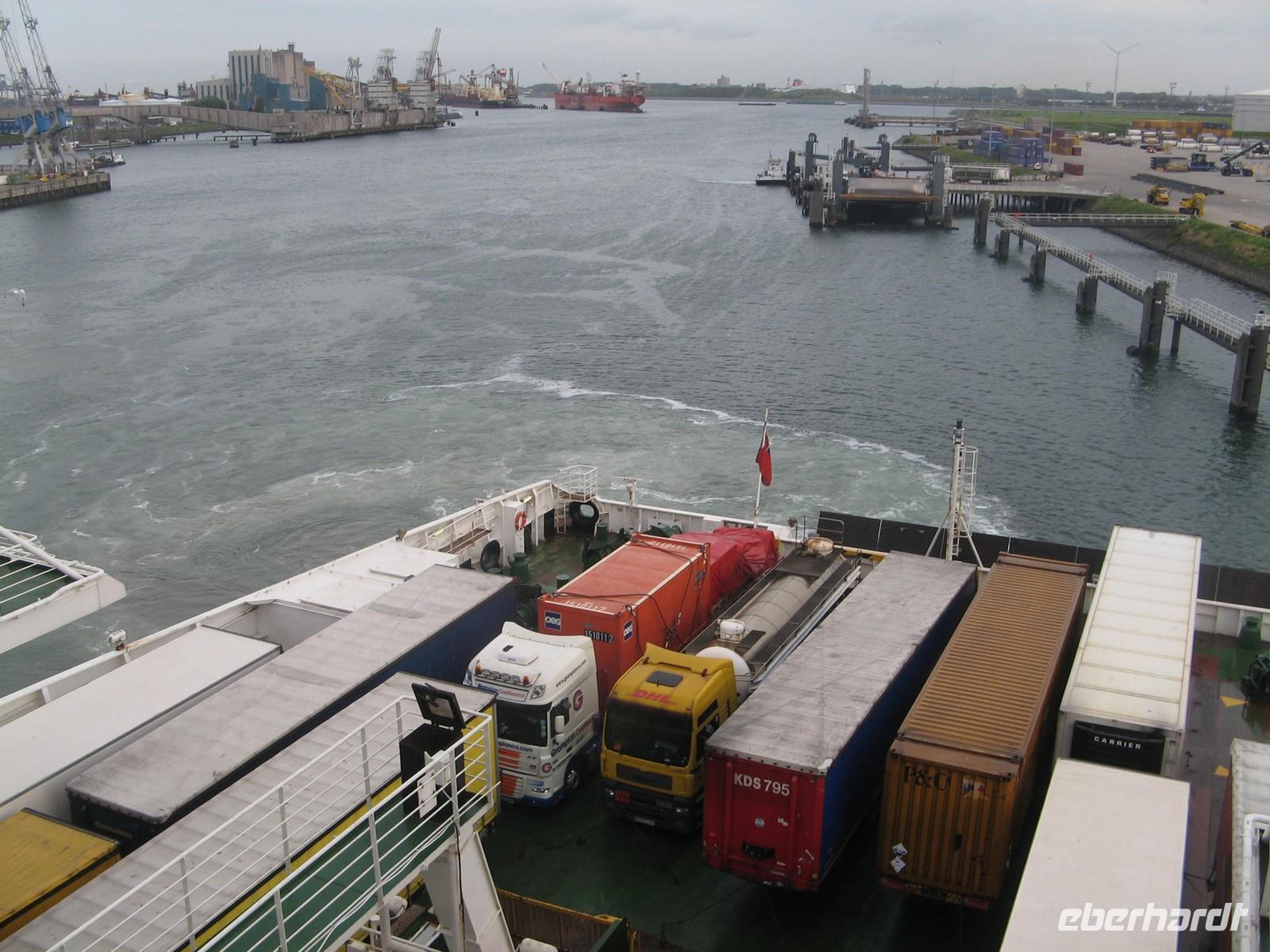 Unsere Nerven wurden etwas angespannt, da wir in Holland über 1 Stunde im Stau standen. Doch die Fähre erreichten wir rechtzeitig, obwohl sie 1 Stunde früher als geplant ablegte.