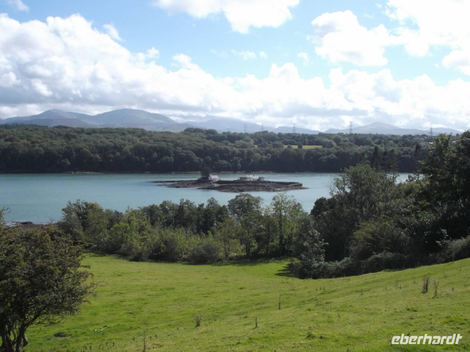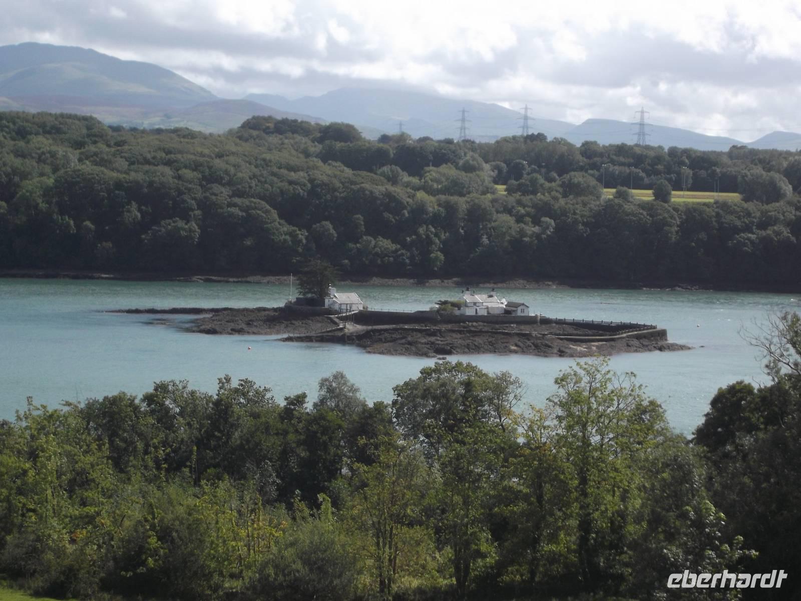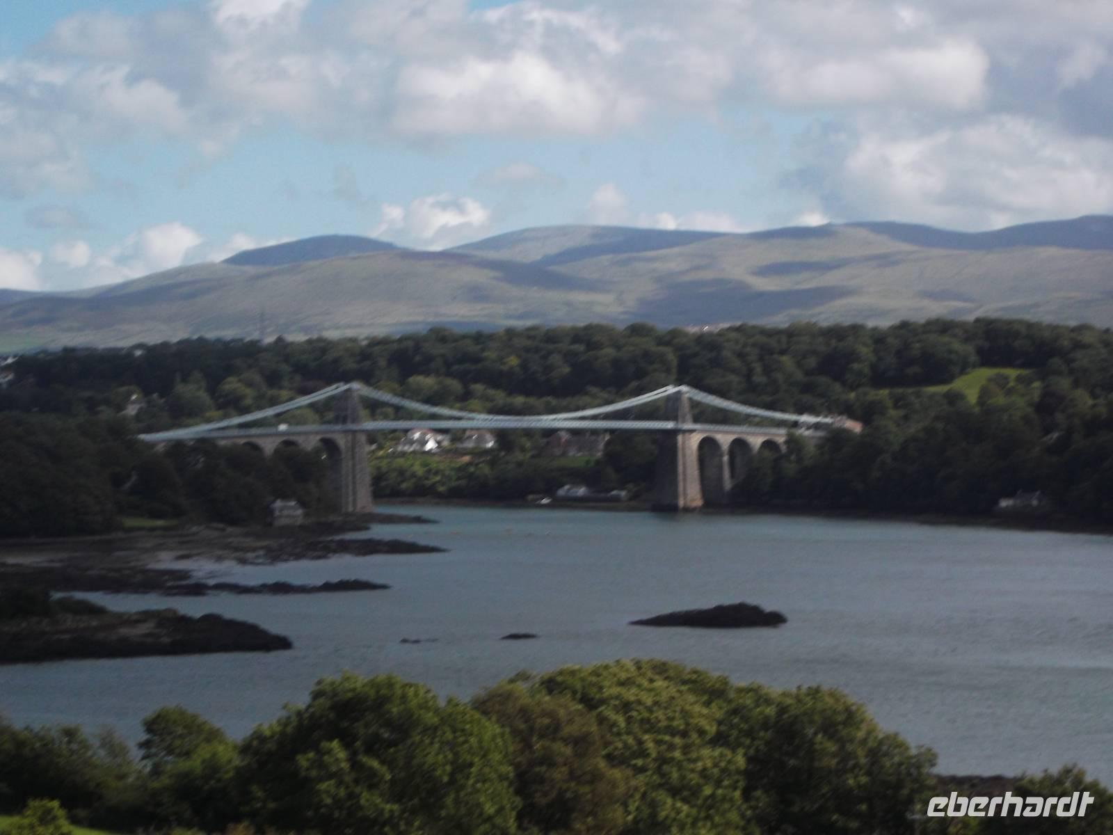 Bei unserem weiteren Weg zum Hafen nach Irland fuhren wir später auf die walisische Insel Anglesey. Ein kurzer Fotostopp zeigte uns einen Aussichtspunkt über die malerische Meerenge Menai-Strait, die Anglesey von Festland-Wales trennt. Gleich daneben liegt ein winziges, eigentlich unbedeutendes Städtchen: touristisch bekannt ist Llanfair PG für den längsten Ortsnamen Europas. Der steht sowohl am Besucherzentrum als auch an der Eisenbahnstation und lautet Llanfairpwllgwyngyllgogerychwyrndrobwllllantysiliogogogoch.