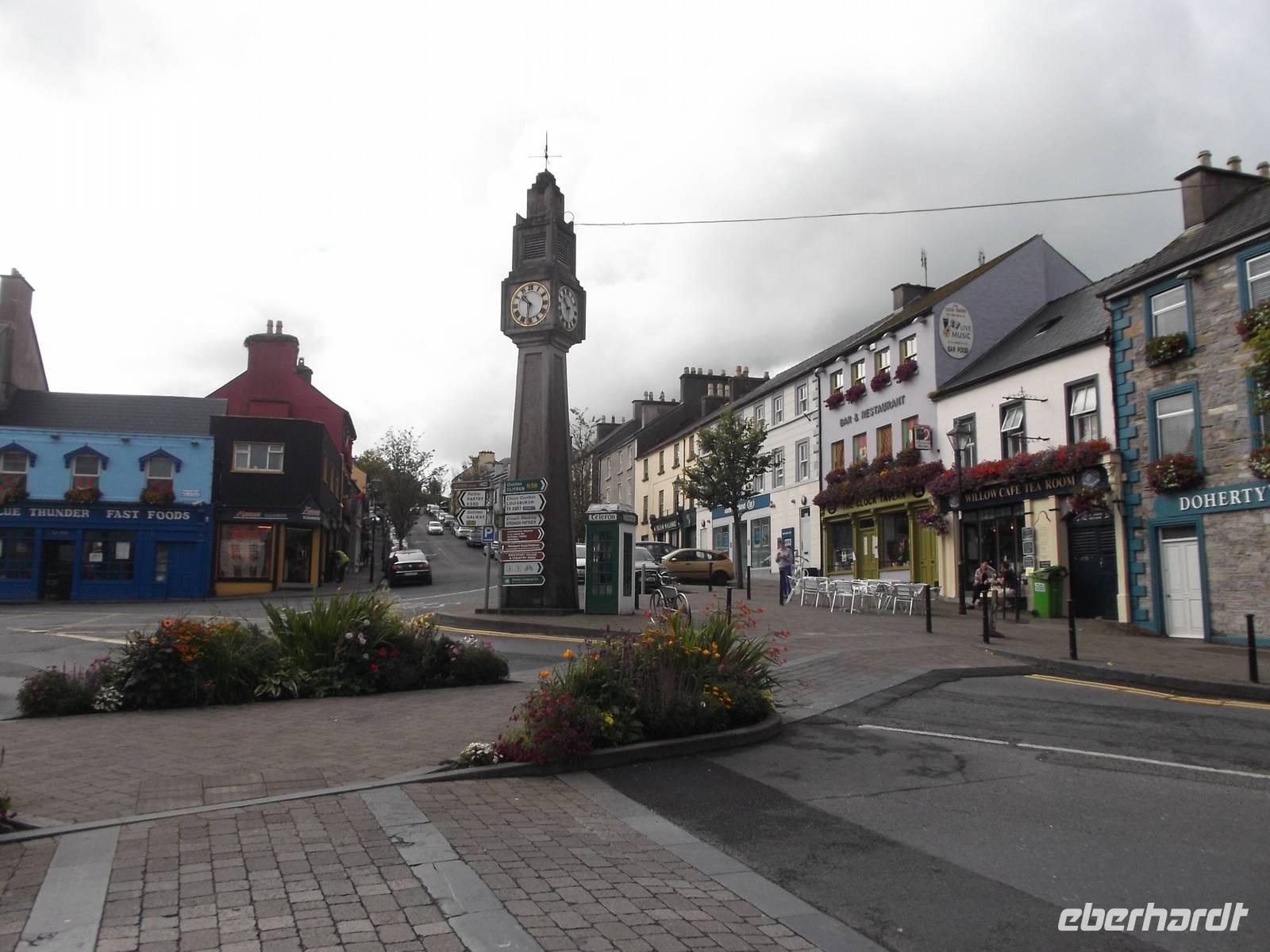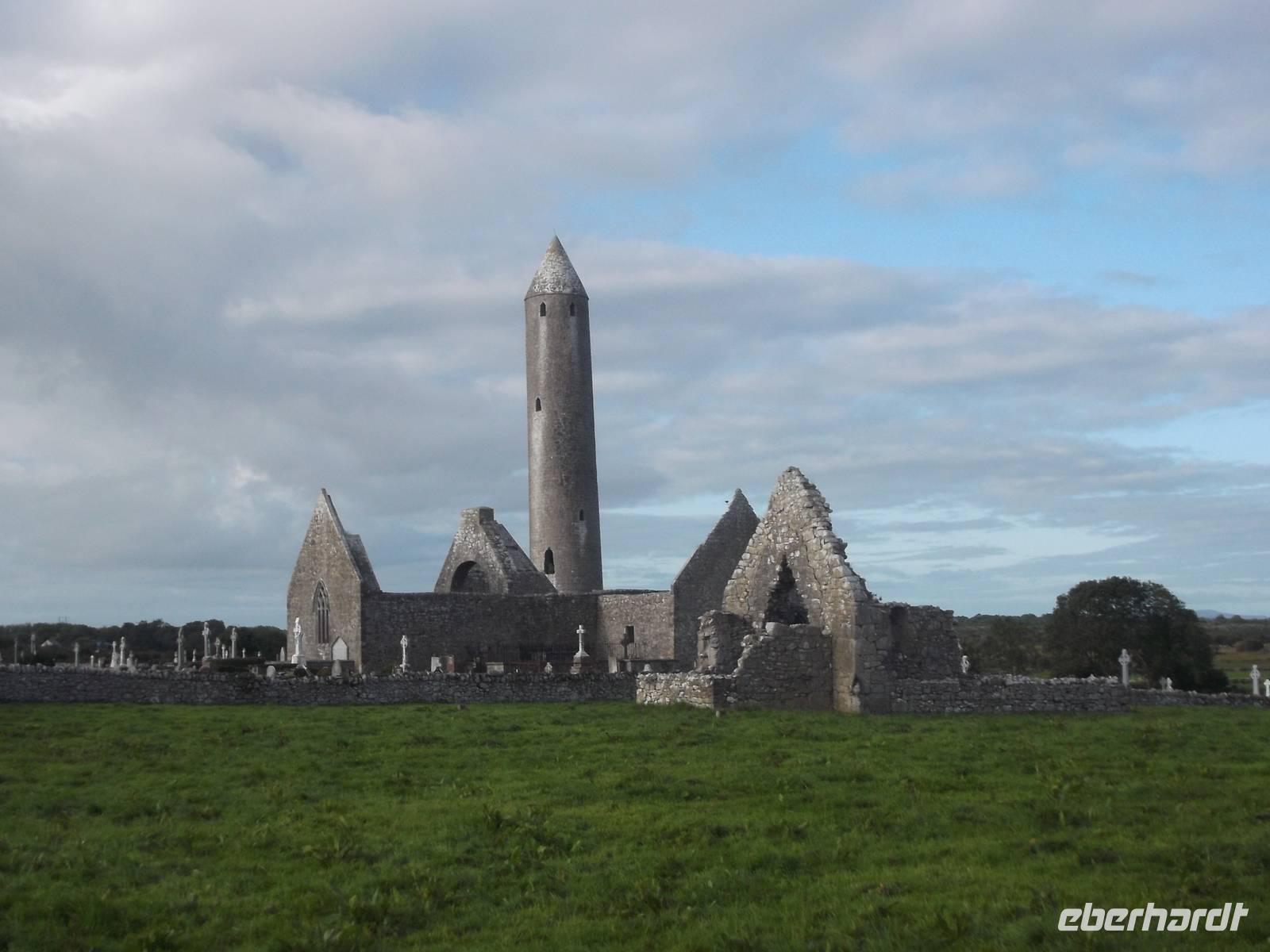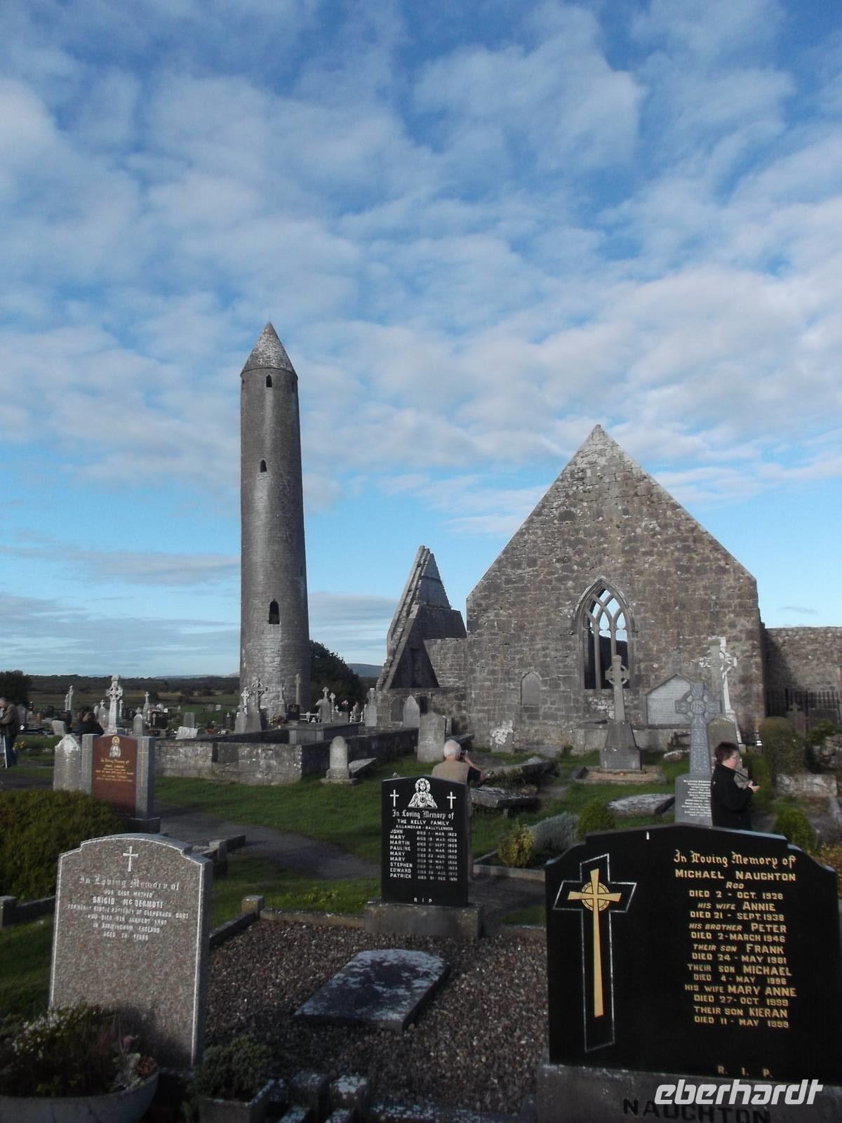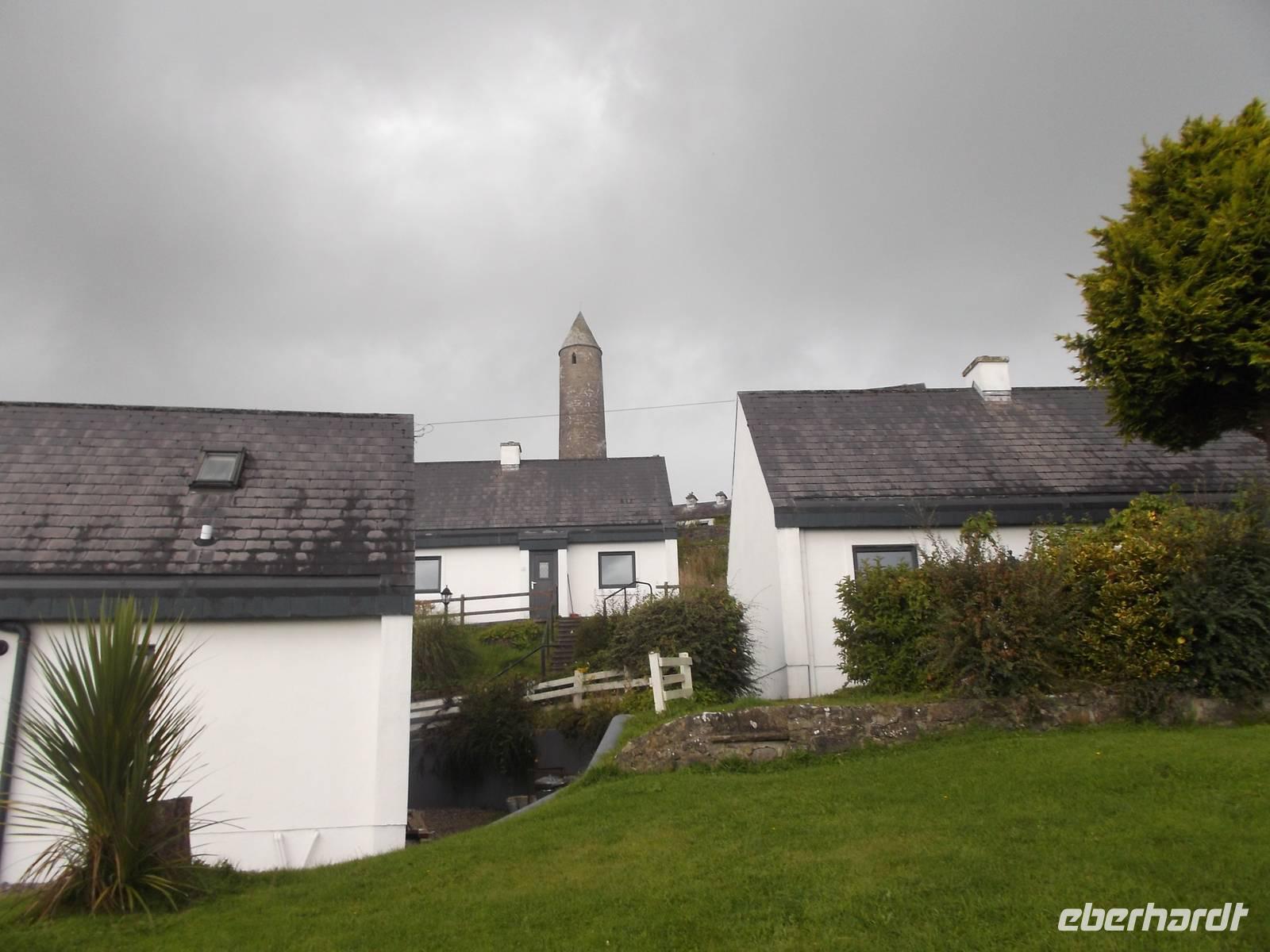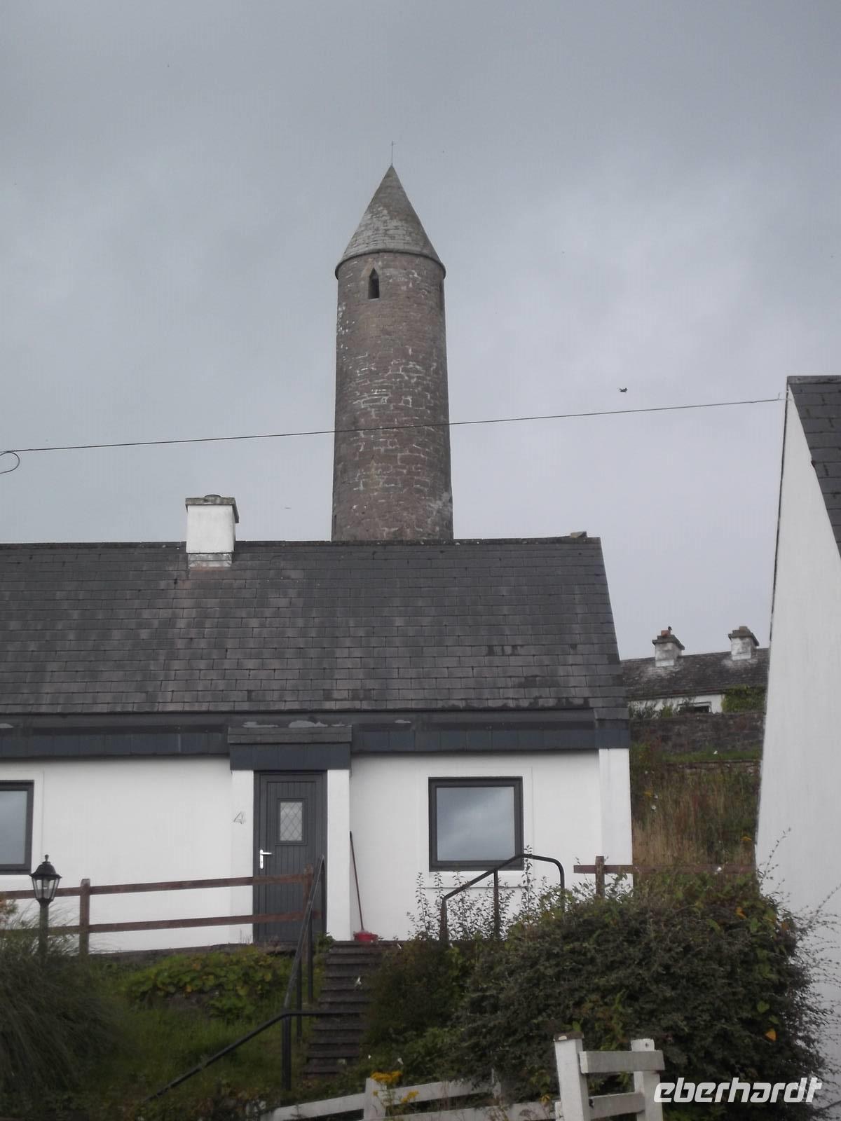 Von Ballina, dessen Pfarrkirche gleichzeitig Bischofskirche eines der ältesten Bistümer Irlands ist, ging es zunächst in dessen Bischofssitz Killala. Nur wenige Bauwerke deuten noch auf die historische Bedeutung des Ortes - unbedingt dazu gehört der Rundturm. Von diesen für das früher Christentum Irlands typischen Bauwerken gibt es auf der grünen Insel heute noch 65 wenigstens teilweise erhaltene. Mit seinen 26 m Höhe ist der „roundtower" von Killala mit seinem traditionell hochliegenden Eingang und seinem guten Erhaltungszustand eines der Prachtexemplare.
