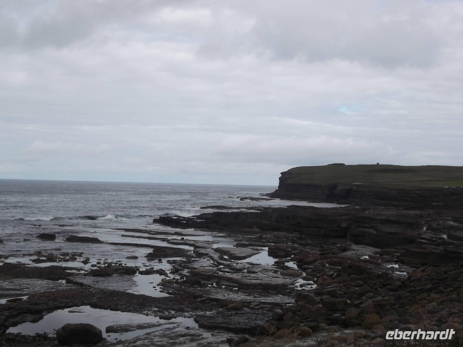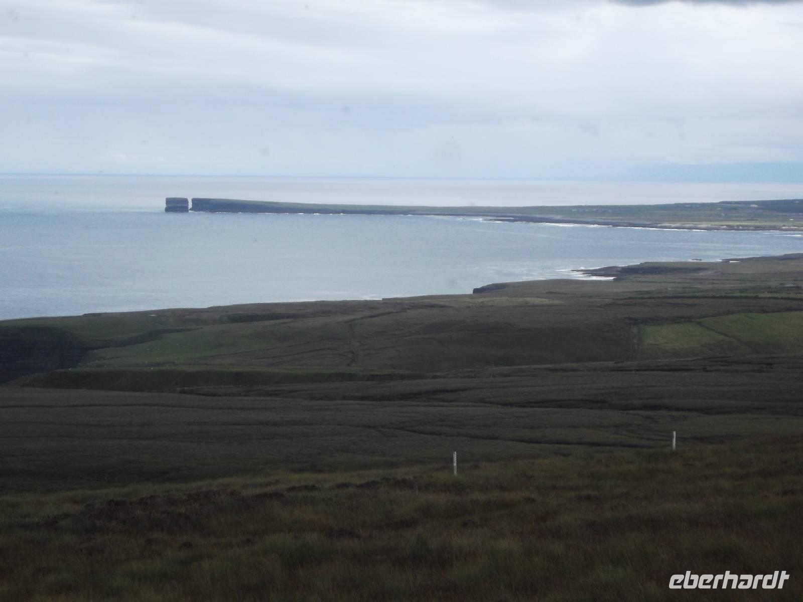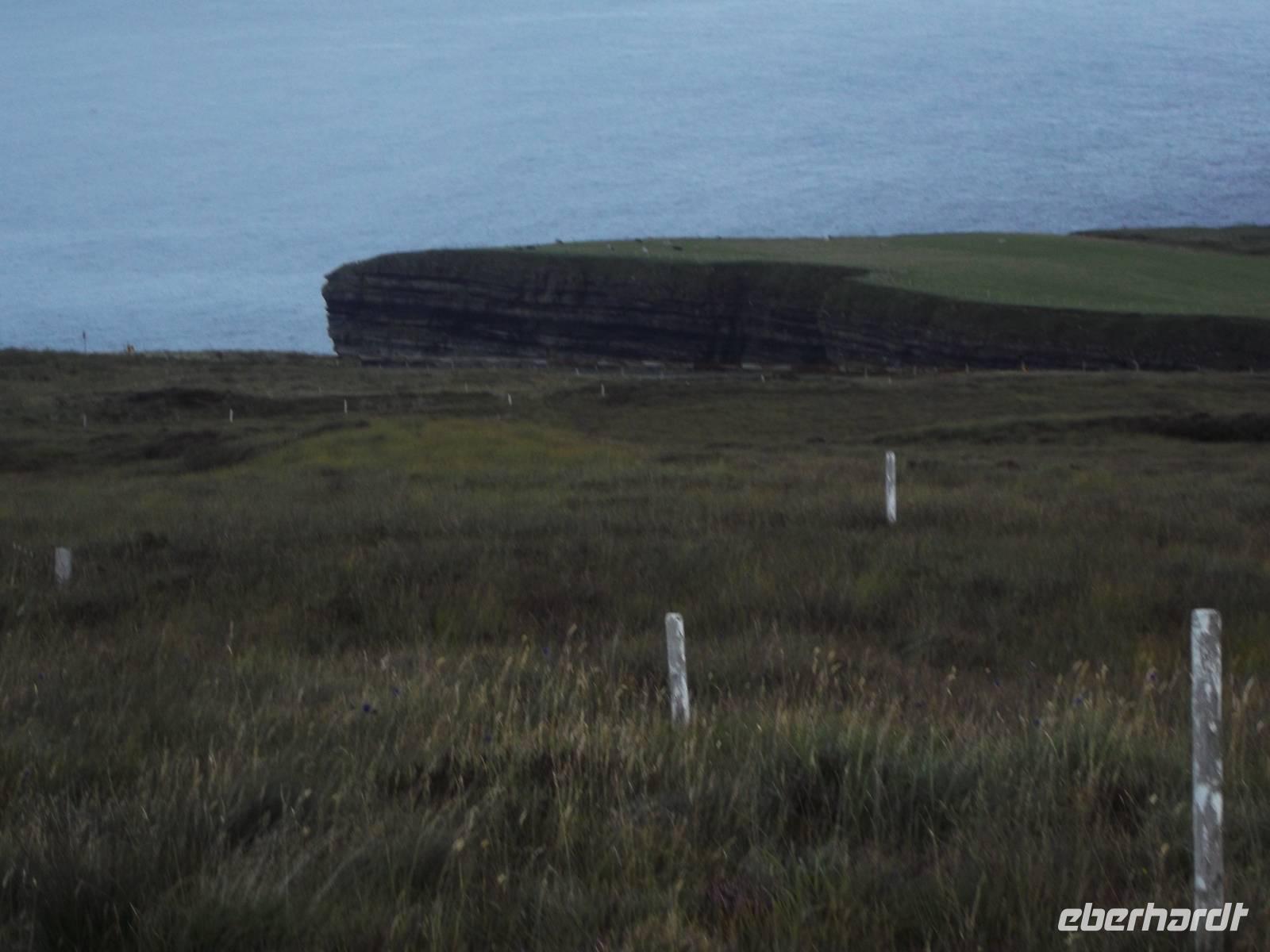 Auf unserem weiteren Weg durch Burren erreichten wir bei Ballyvaughn die Küste und umrundeten wir auf der malerischen Küstenstraße den Slieve Elva, die höchste Erhebung des Burren, um an einer der größten irischen Sehenswürdigkeiten - an den Cliffs of Moher - zu enden. Irlands bekannteste Steilklippen ragen nahezu senkrecht aus dem Atlantischen Ozean. Der Küstenabschnitt, der sich über eine Länge von über acht Kilometern erstreckt, sieht die Klippen eine Höhe von ungefähr 120 m am südlichen Ende, nördlich des O'Brien's Tower sogar 214 m erreichen.