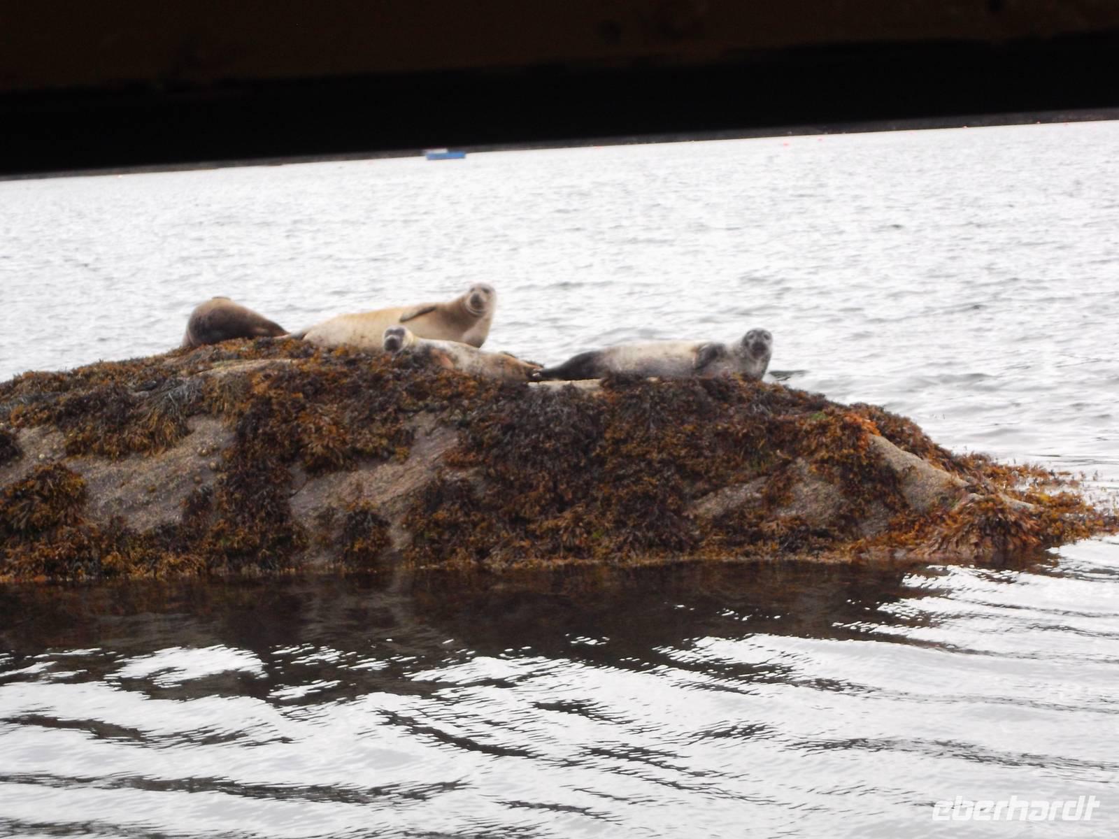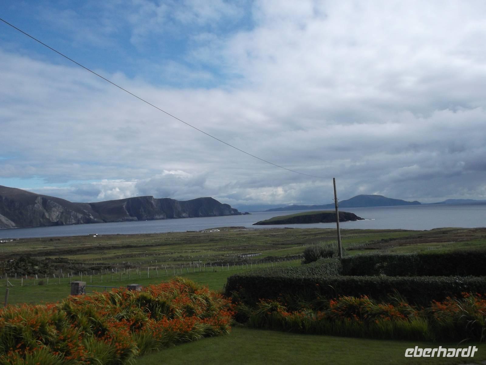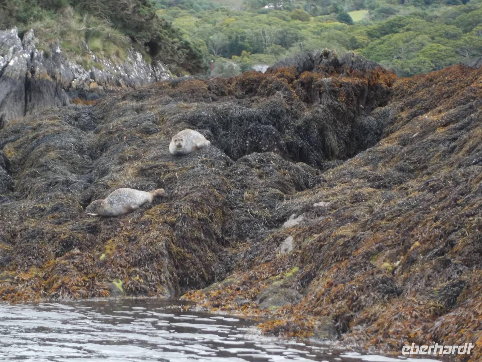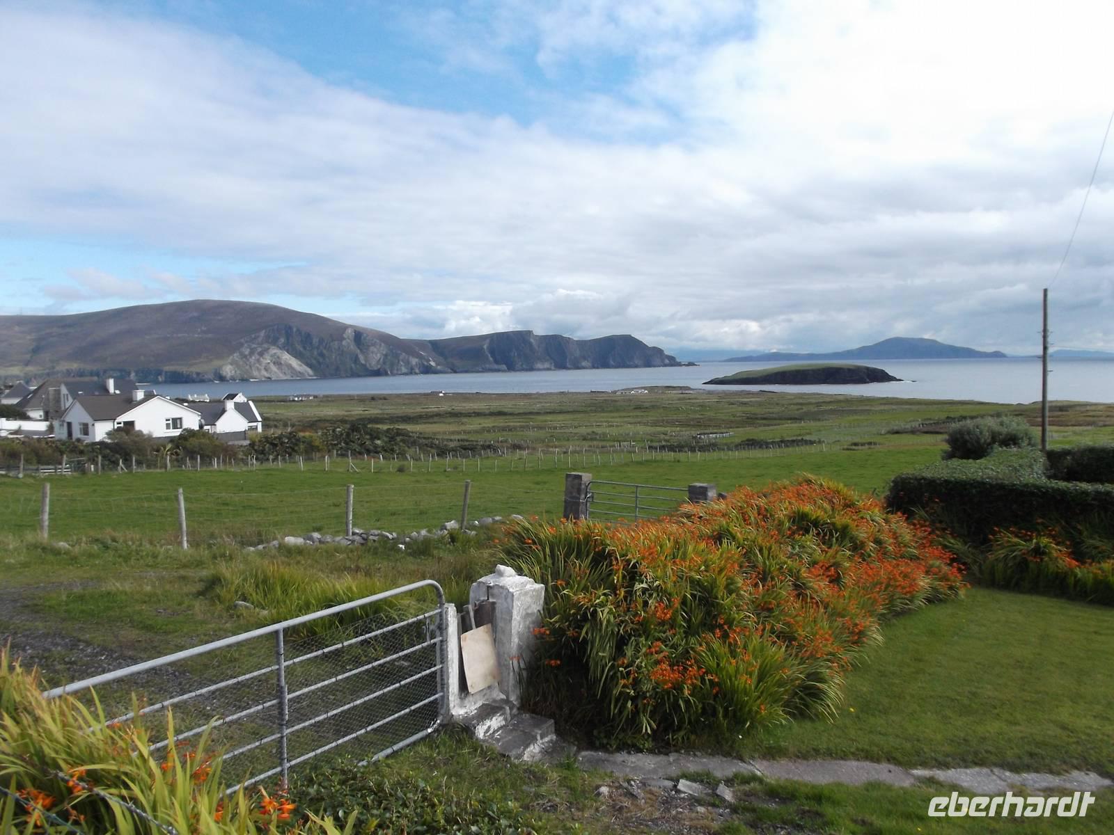 Am heutigen fakultativen Ausflug nahmen fast alle Mitreisenden teil. Das Wetter hielt sich - auch wenn es nicht übermäßig sonnig war, gab es doch zumindest keinen Regen. Zunächst war unser Ziel die Küstenstraße „Ring of Beara". Der ist weniger bekannt als sein „großer Bruder", der „Ring of Kerry" und zieht sich um Beara, die dem gestrigen Iveragh gegenüberliegende Halbinsel. Insgesamt etwa 140 km ist dieser Weg rund um die Halbinsel Beara lang und hält ebenso wie der Ring of Kerry viele schöne Ausblicke bereit. Allerdings kann man nur einen Teil der Strecke mit dem Reisebus befahren, die Straße am äußersten Zipfel der Halbinsel wird zu schmal. So war das erste heutige Ziel der hübsche Hauptort der Halbinsel, das attraktive Städtchen Castletownbere. Die Hauptstraße mit ihren vielen buntgestrichenen Häusern konnten wir bei einem kleinen Bummel vom Busparkplatz aus nahe dem Hafen kennenlernen. Später setzten wir unseren Weg rund um die Halbinsel Beara und erreichten später das Städtchen Glengarriff. Nach kurzem Aufenthalt im touristisch geprägten Ort erwartete uns am Pier das kleine Schiffchen „Harbour Queen", um uns zur Garteninsel Garinish zu bringen. Ihr irischer Name heißt „nahe Insel" und deutet schon darauf hin, dass die Überfahrt nur wenige Minuten dauert. Dennoch ist diese kurze Bootsfahrt überaus interessant - führt sie doch an Felseneilanden und Robbenbänken vorbei. Dabei konnten wir zahlreiche der Tiere beobachten, die sich träge sonnten und nur ab und zu leicht beunruhigt den Kopf wegen des Motorgeräusches unseres Schiffes hoben. Garinish erreichten wir gleich darauf - eine ca. 15 Hektar kleine Insel, bekannt für ihre Gärten. Die sind künstlich angelegt, denn das Inselchen war einst ein karger Felsen, nur mit Moos und Torf bedeckt. Dennoch hatte ihr Käufer das innewohnende Potential durch die Lage im Schutz der Bantry-Bucht und das durch den Golfstrom aufrecht erhaltene fast subtropische Klima erkannt: 1910 erwarb die Familie Bryce die Insel. Der neue Besitzer ließ Gehölze als Windschutz anpflanzen, Muttererde vom Festland heranschaffen und in seinem Auftrag errichtete der englischen Architekt und Gartengestalter Harald Petro die heutige Gartenlandschaft. Ihre üppige Pflanzenvielfalt - besonders bekannt sind der italienische Garten im klassischen Stil mit kleinem Gartenhaus und der ummauerte Garten - ziehen immer wieder Besucher an, die es lieben, in den Gärten spazieren zu ergehen und die Düfte und Farben der Blumenvielfalt und der exotischen Pflanzen zu genießen..
