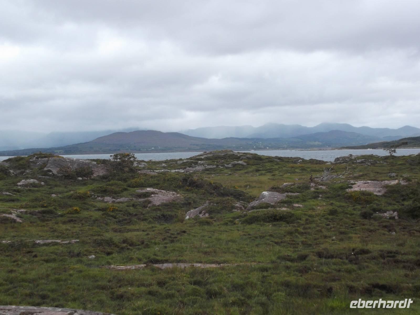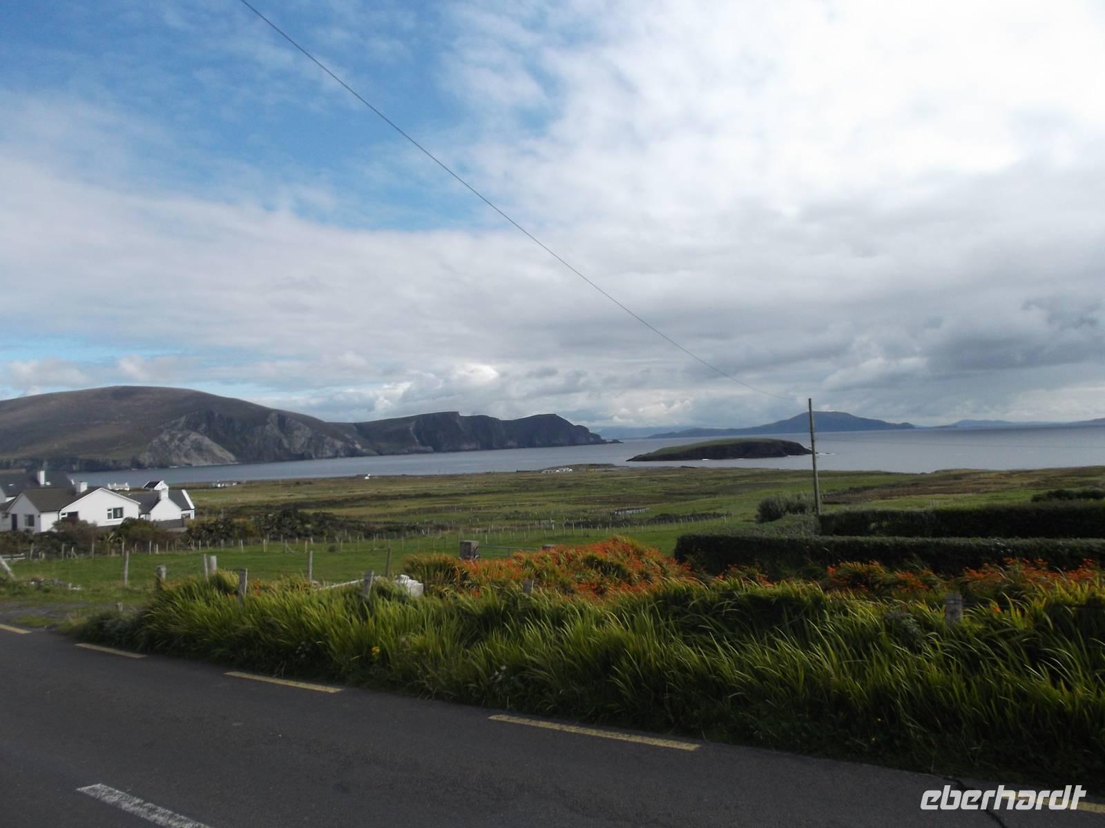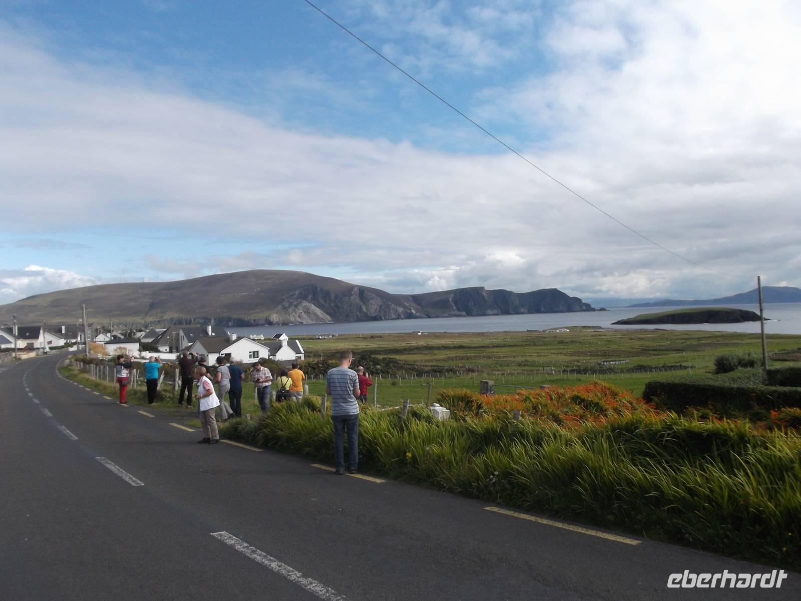 Zu den großen Höhepunkten jeder Irand-Reise gehört eine Fahrt auf der Küstenstraße rings um die Halbinsel Iveragh. Dieser berühmte „Ring of Kerry" stand heute auf unserem Programm. Bei nicht allzu gutem Wetter begannen wir den Tag mit der Durchfahrt durch den Ort Killorglin, der alljährlich durch seine „Puck Fair", einem Volksfest, bei dem ein Ziegenbock gekrönt wird, von sich reden macht. Hier beginnt der „Ring of Kerry".
