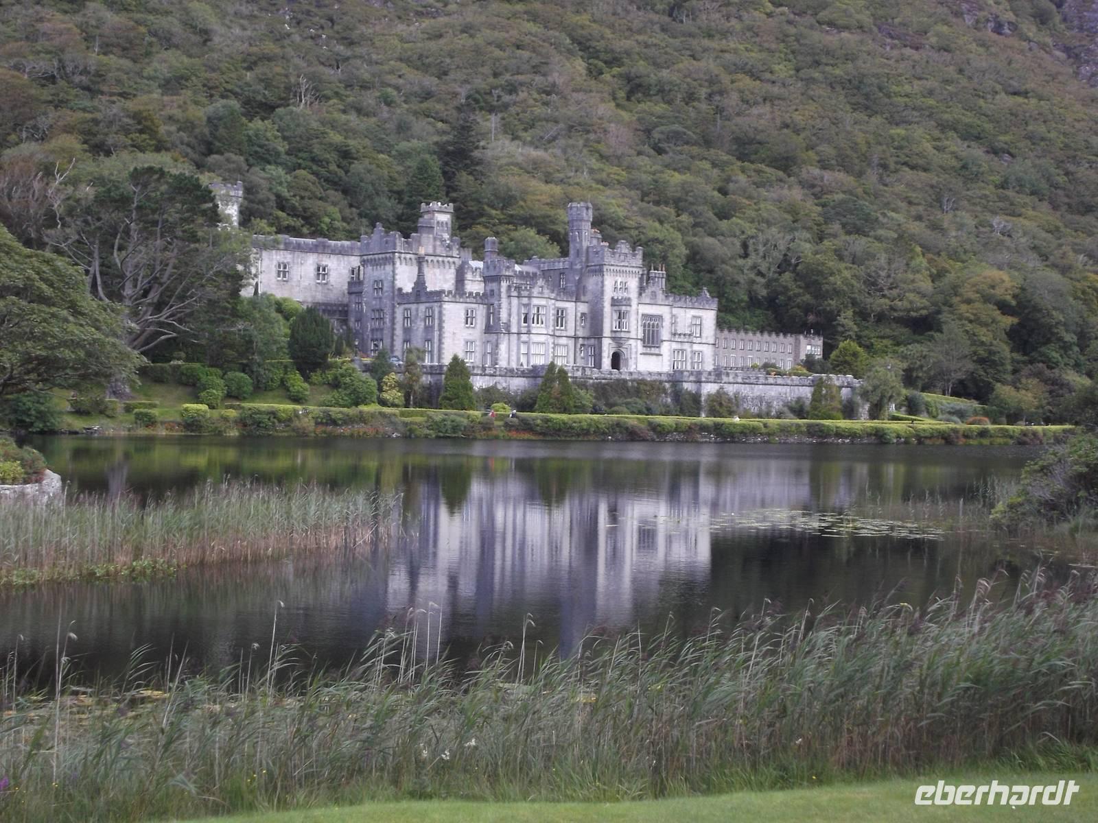 Bei schönem Wetter waren wir heute auf unserem weiteren Weg durch die Grafschaft Mayo. Das Städtchen Westport, malerisch mit seinen bunten Häusern vor der Kulisse des „heiligen Berges" Croagh Patrick, war unser erstes Ziel. Der Ort wurde planmäßig zu beiden Ufern des Flüsschens Carrowbeg angelegt und bietet mit seiner hübschen Mall Gelegenheit für einen Bummel. Zudem ist das Städtchen das „Tor" zum „grünsten Teil" von Irland, der Halbinsel Connemara. Diese zu durchqueren war unser Ziel - aber zunächst passierten wir eine der wichtigsten Landmarken und für die Religiosität der Iren sehr wichtiges Landschaftsobjekt: den Croagh Patrick: Auf der Spitze dieses 764 m hohen Berges soll Irlands Schutzpatron, der Heilige Patrick, 40 Tage und Nächte gefastet und schließlich eine Kapelle errichtet haben. Hier war es auch, wo er alles Ungeziefer von der Insel verbannt habe, so besagt die Legende. Hinter dem imposanten Croagh Patrick schwenkte bei Louisburgh die Straße ab nach Süden und führte durch das malerische Tal von Delphi in eine grandiose Landschaft, die gleichermaßen an die schottischen Highlands und an die Fjelle Norwegens erinnerte. Um im Bild Norwegens zu bleiben, erreichte die Straße nach einiger Zeit Irlands einzigen Fjord, den tief eingeschnittenen Killary Harbour. In dieser malerischen langgestreckten Meeresbucht finden sich zahlreiche Fisch- und Muschelzuchten. Ein ausgedehnter Fotostopp zeigte uns die Aasleigh Falls, bei denen der kleine Fluß Erriff ein paar Meter über die Felsen springt - eines der beliebtesten Fotomotive der Halbinsel Connemara. Etwas später ging es an den Maumturk Mountains und an den „Twelve Bens", dem nördlichen Gebirge von Connemara, das bis auf 730 m am Berg Benbaum ansteigt, vorbei weiter bis zur bekannten Kylemore Abbey. Die ältesten irische Benediktinerinnenabtei - 1665 gegründet - wurde nach mehreren Umzügen seit 1920 in dem hier 1871 fertiggestellten Schloss Kylemore untergebracht. Die Nonnen hatten das von einer Industriellenfamilie erbaute Schloss und den umliegenden Landschaftspark erworben. Obwohl das Kloster bis heute aktiv ist und noch von Nonnen bewohnt wird, kann man Teile von Schloß und Park besichtigen. Durch malerische Täler und Moorlandschaften von Connemara fahrend erreichten wir am Nachmittag die Hafenstadt Galway, die fast mediterranes Flair zu haben scheint. Bei einem kleinen Bummel vom Busparkplatz zur Innenstadt entdeckten wir die Reize von Galway, das viele für die schönste Stadt im Westen Irlands halten. Attraktionen hier sind neben den bunten Häusern und der Pfarrkirche St. Nicholas das alte „Lynchs Castle", ein historisches Herrenhaus, sowie die noch erhaltene Fassade des ehemaligen Gerichtsgebäudes mit dem berühmten Fenster, an dem Richter Lynch seinen eigenen Sohn erhängt haben soll. Übrigens soll der Begriff „Lynchjustiz" von hierher stammen . . .