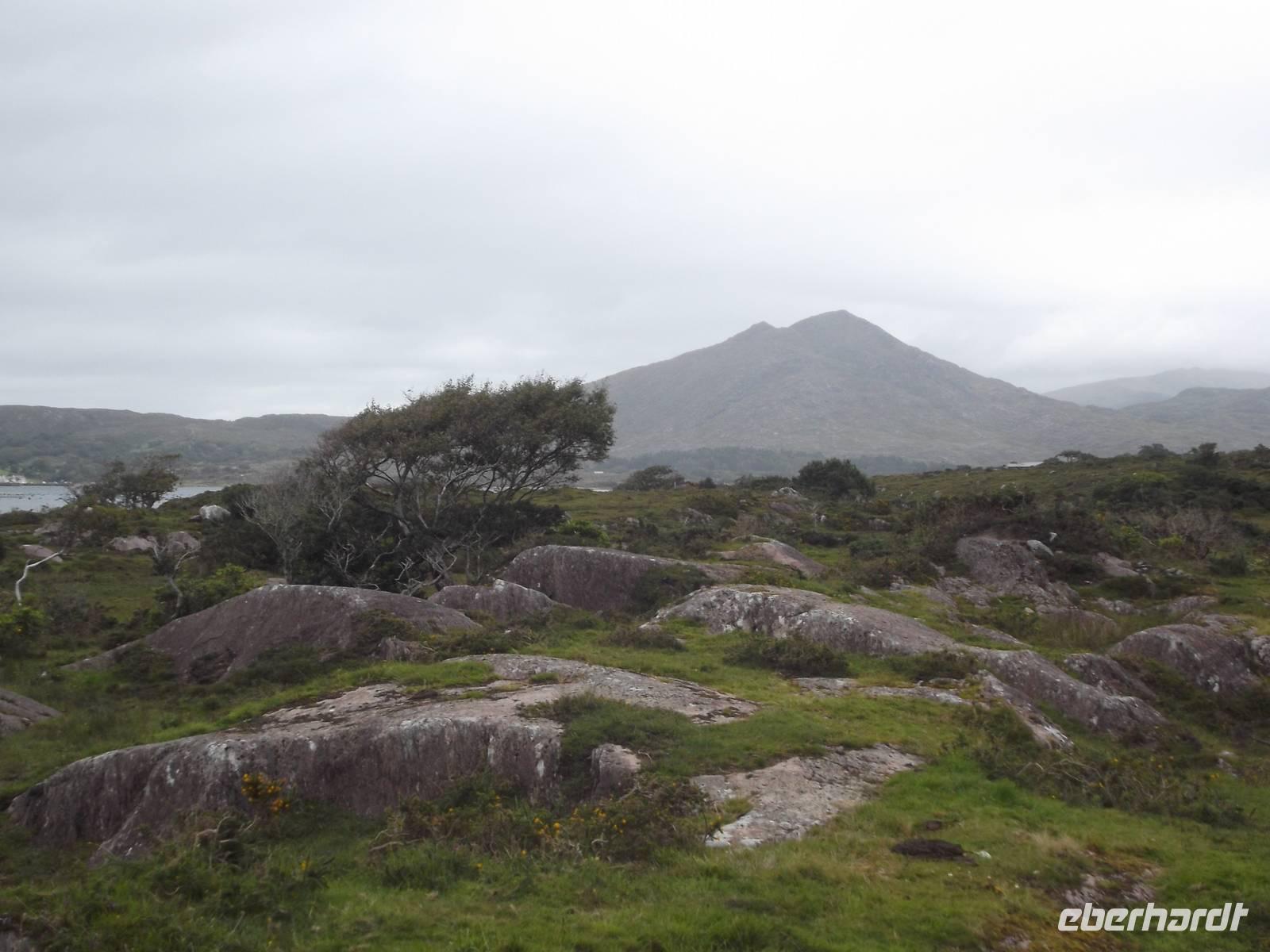 Einen weiteren Stopp gab es noch in Sneem, einem kleinen Ort vor den MacGillicuddy Reeks, den Bergen in der Mitte der Halbinsel Iveragh, zu denen der höchste Berg Irlands, der Carrantuohill, gehört und an denen wir mit einem Stoipp am Aussichtspunkt Ladies View vorbeifuhren.