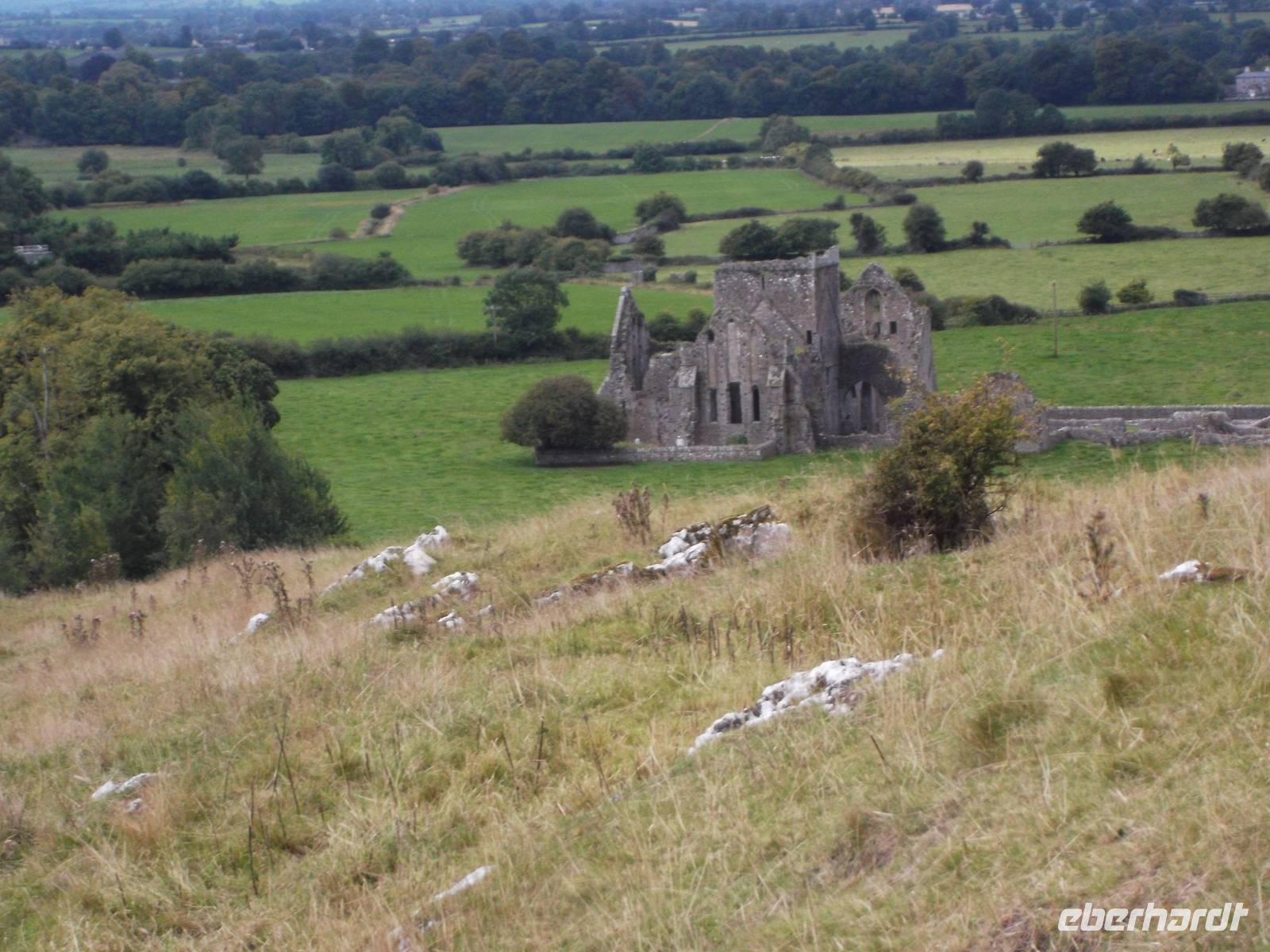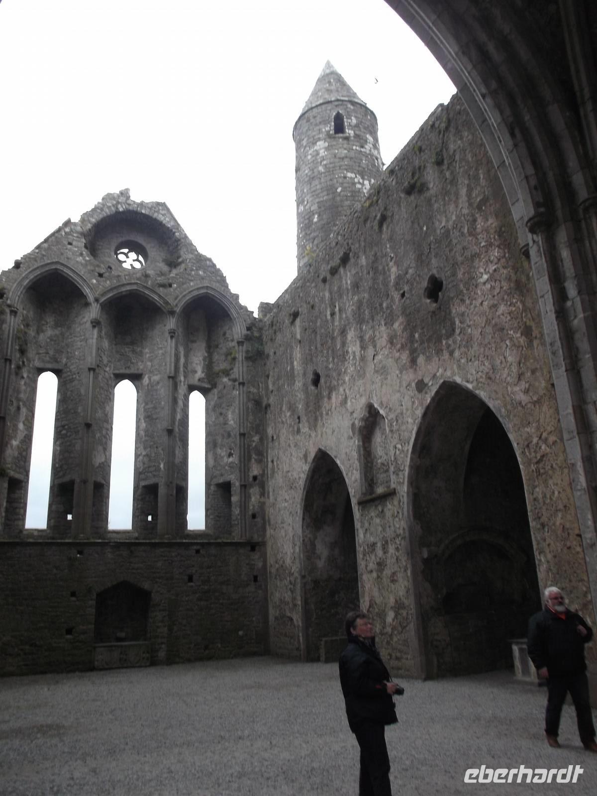 Außer den imposanten Resten der alten Residenz und des Bischofssitzes sowie dem gut erhaltenen Rundturm findet man hier ein Museum und ein Kino, in dem ein Film in die Geschichte des Berges und seiner Bauten einführt. Nach der Besichtigung und der Gelegenheit, in den alten Gemäuern der Historie und den Anfängen des christlichen Glaubens in Irland nachzuspüren, machten wir noch einen kleinen Bummel im Städtchen Chashel, bei dem wir u.a. die Ruine des Dominikanerklosters, den alten Marktplatz und den Löwenbrunnen sahen.