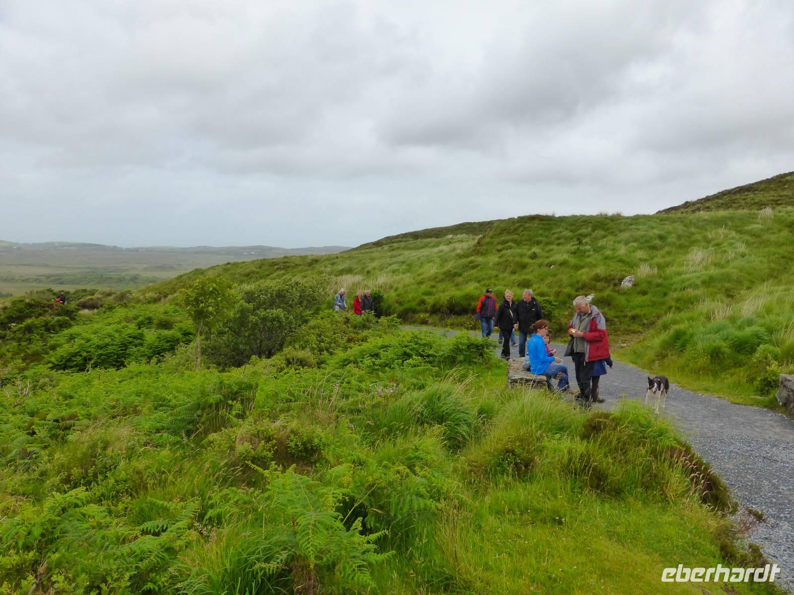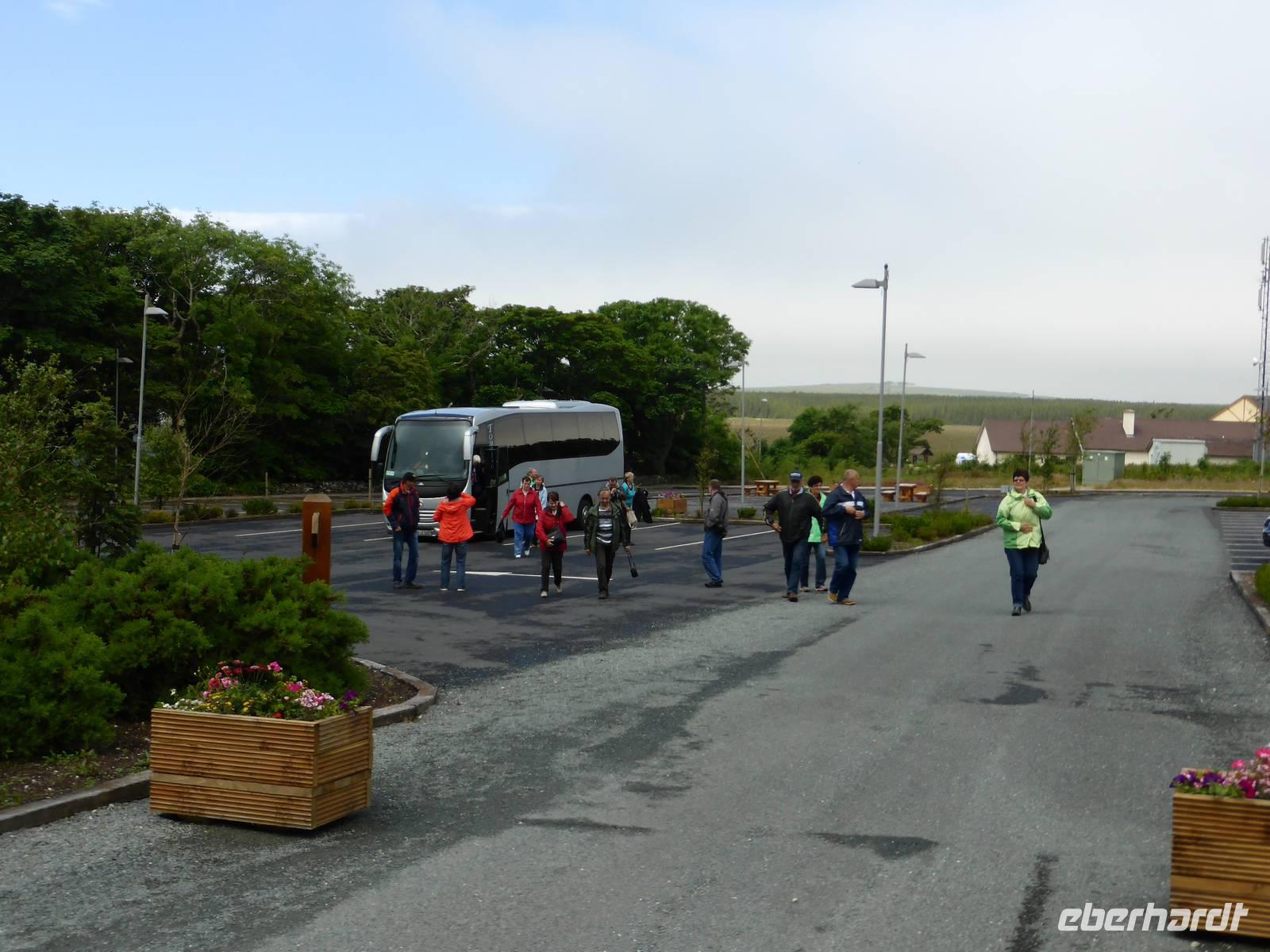 Von Killala aus fuhren wir durch eine baumlose und moorige Landschaft zu den Cèide Fields. Cèide Fields ist weltweit die flächenmäßig größte Ausgrabungsstätte der Jungsteinzeit. Bereits vor 5000 Jahren wurden hier Wälder gerodet und ummauerte Weideflächen angelegt. Zuerst sahen wir uns im Besucherzentrum einen Film an und danach erhielten wir bei einer Führung im Außenbereich Einblicke, wie die vom Moor bedeckten Steinmauern geortet und vermessen wurden. Anschließend war Freizeit für die Gäste. Von Cèide Fields fuhren wir zum Ballycroy Nationalpark. Im neuen Besucherzentrum gibt es eine sehr interessante Ausstellung über die Flora und Fauna der Gegend und es ist ein guter Ausgangspunkt für Wanderungen in den Nationalpark. Anschließend fuhren wir auf die Insel Achill Island, auf der auch Heinrich Böll mit seiner Familie in den 50er Jahren lebte. Weiter ging es auf dem „Atlantik Drive", einer Panoramastrecke bis zur Ortschaft Keel. Dort besuchten wir den wohl schönsten Ort der Insel mit seinem kilometerlangen weißen Sandstrand. Von Keel aus fuhren wir zum Cottage von Heinrich Böll nach Doogort und über den „Atlantik Drive" wieder zurück auf das Festland. Unsere Rückfahrt zum Hotel erfolgte über die Ortschaften Newport und Castelbar.