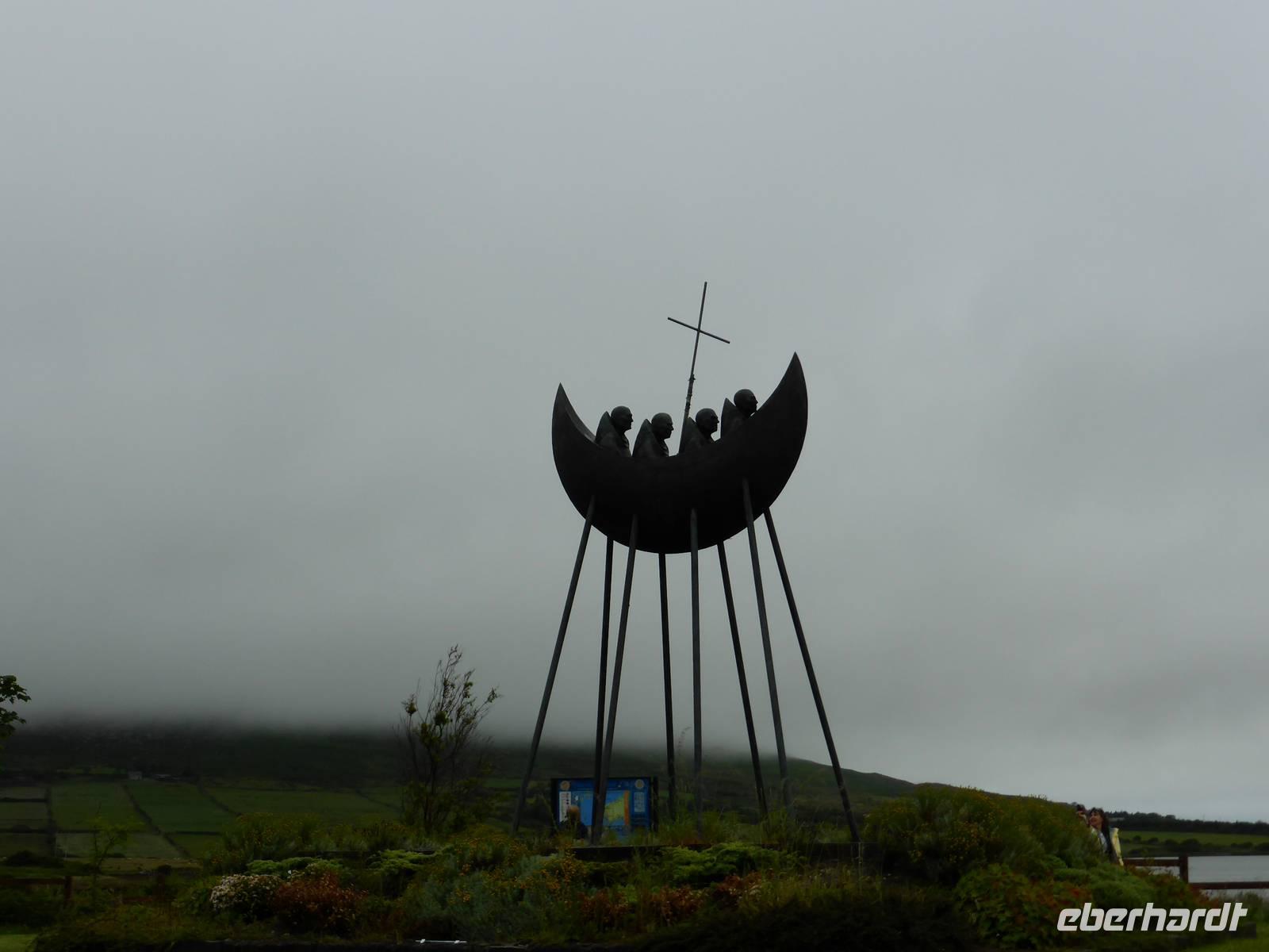 Unsere Reise begann mit der Abholung aller Fluggäste aus ihren Heimatorten und dem Zubringerflug nach Frankfurt/Main. Dort angekommen, ging es zum Abfluggate im Terminal B und von dort weiter mit einer Maschine der Lufthansa nach Dublin. Am Flughafen erwartete uns bereits unser irischer Fahrer Kevin. Nach dem Einladen der Koffer fuhren wir in Richtung Ballina und machten in der kleinen Ortschaft Kilbeggan bei Locke's Destillerie Halt. Im Rahmen einer Führung lernten wir den Herstellungsprozess des dortigen Whiskeys kennen und konnten anschließend bei einer Probe auch die Qualität testen. Anschließend gab es für zwei Gäste unserer Gruppe die Möglichkeit, an einem Vergleich von drei verschiedenen Whiskey- Sorten teilzunehmen und diese mussten dann den richtigen Marken zugeordnet werden. Die Aufgabe wurde mit Bravour gemeistert. Von Kilbeggan aus fuhren wir für einen kurzen Einkaufsstopp nach Athlone und von dort in die kleine Ortschaft Knock. Hier sahen 15 Gemeindemitglieder am 21.08. des Jahres 1879 eine Marienerscheinung. Maria erschien in Begleitung des Heiligen Josef und des Evangelisten Johannes. Heute ist Knock der wichtigste Pilgerort Irlands. Anschließend fuhren wir in das County Mayo zu unserem Hotel „Downhill House" in Ballina.